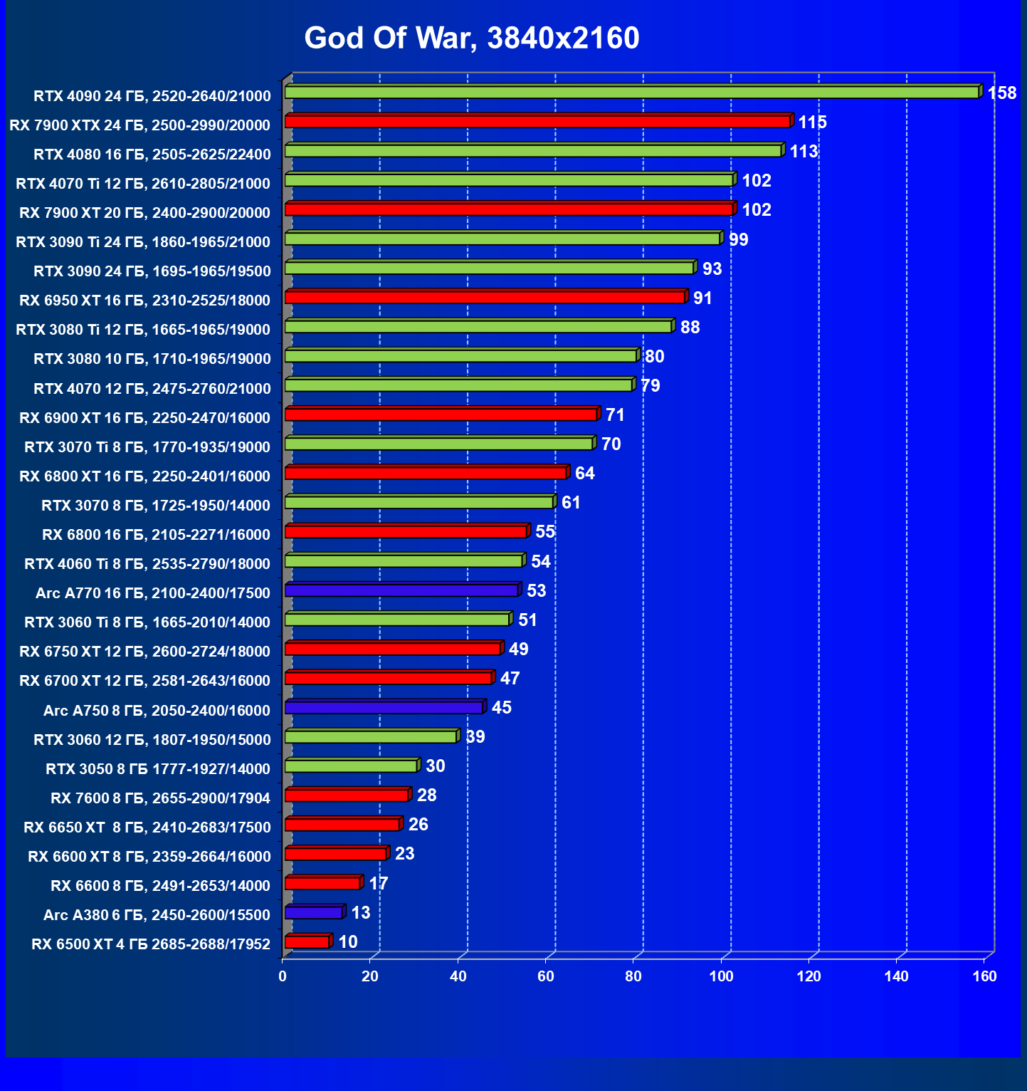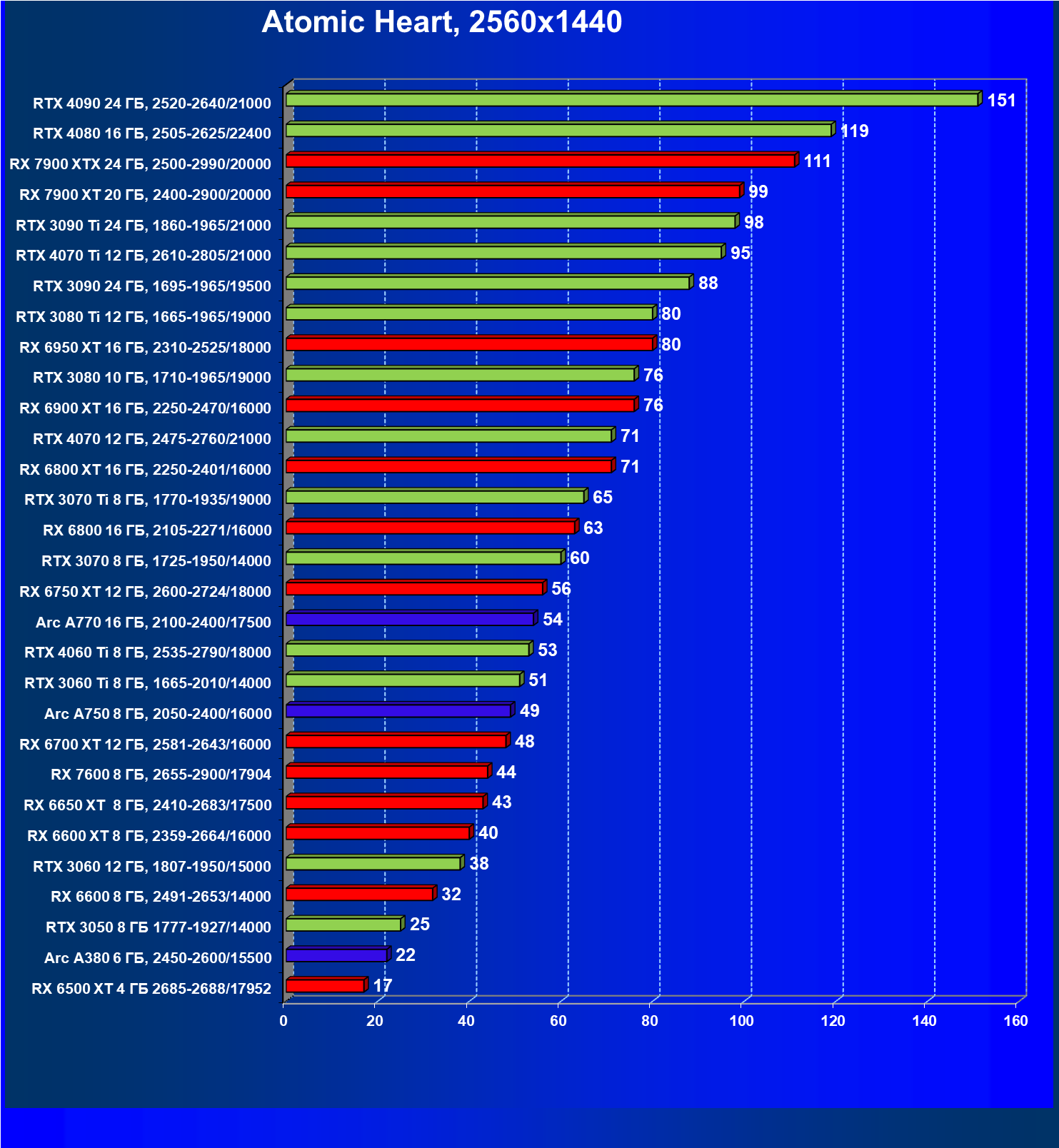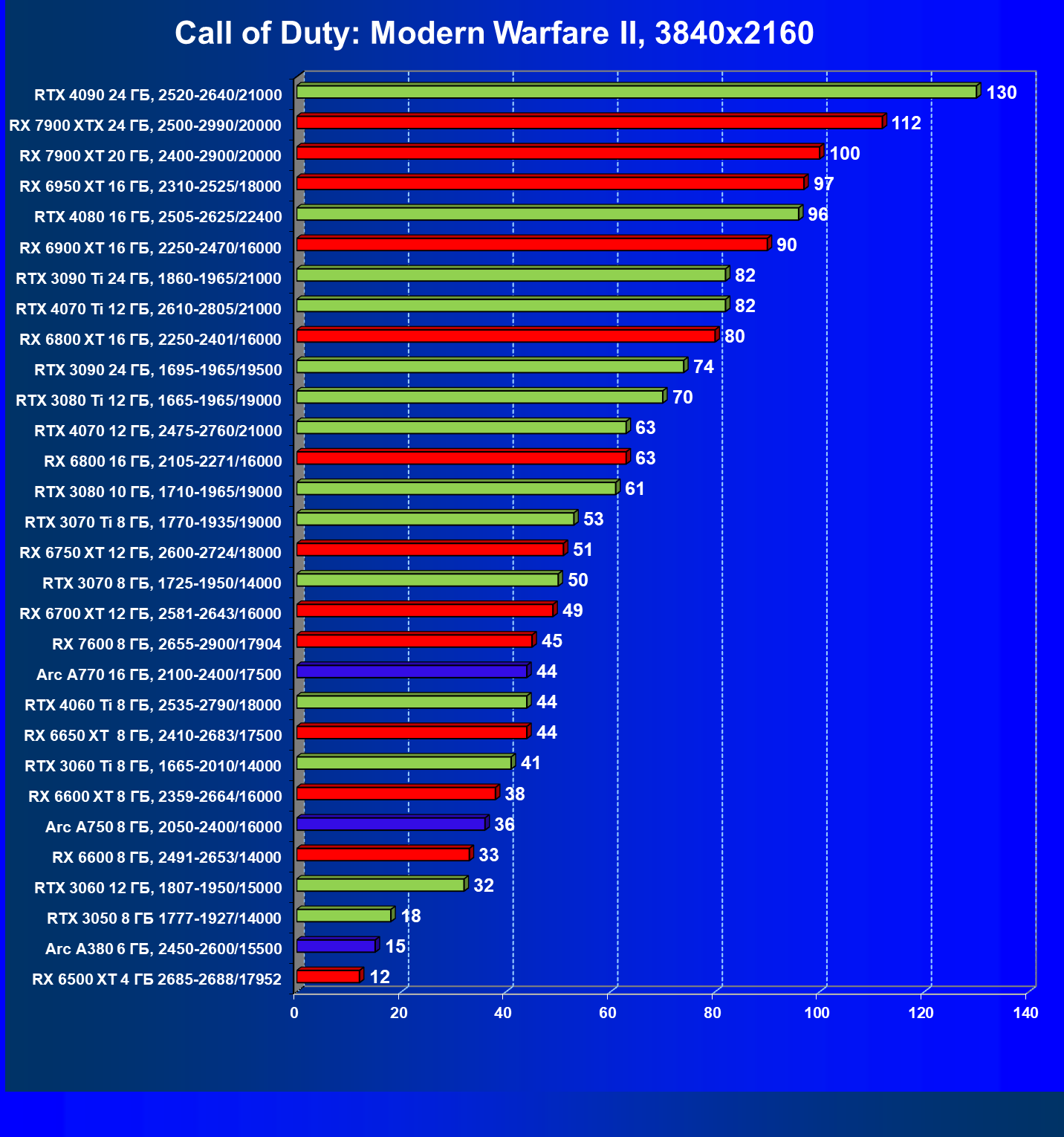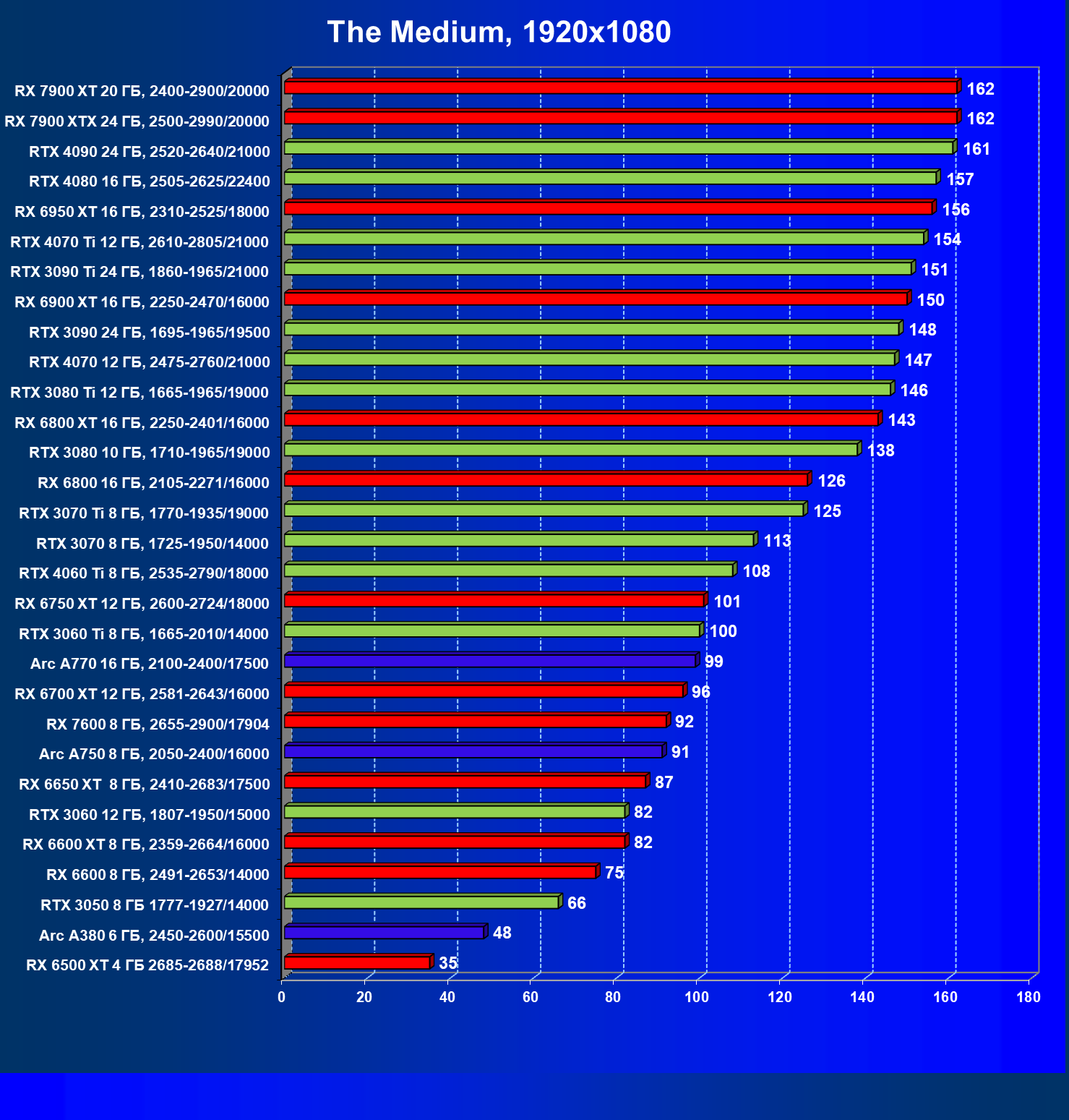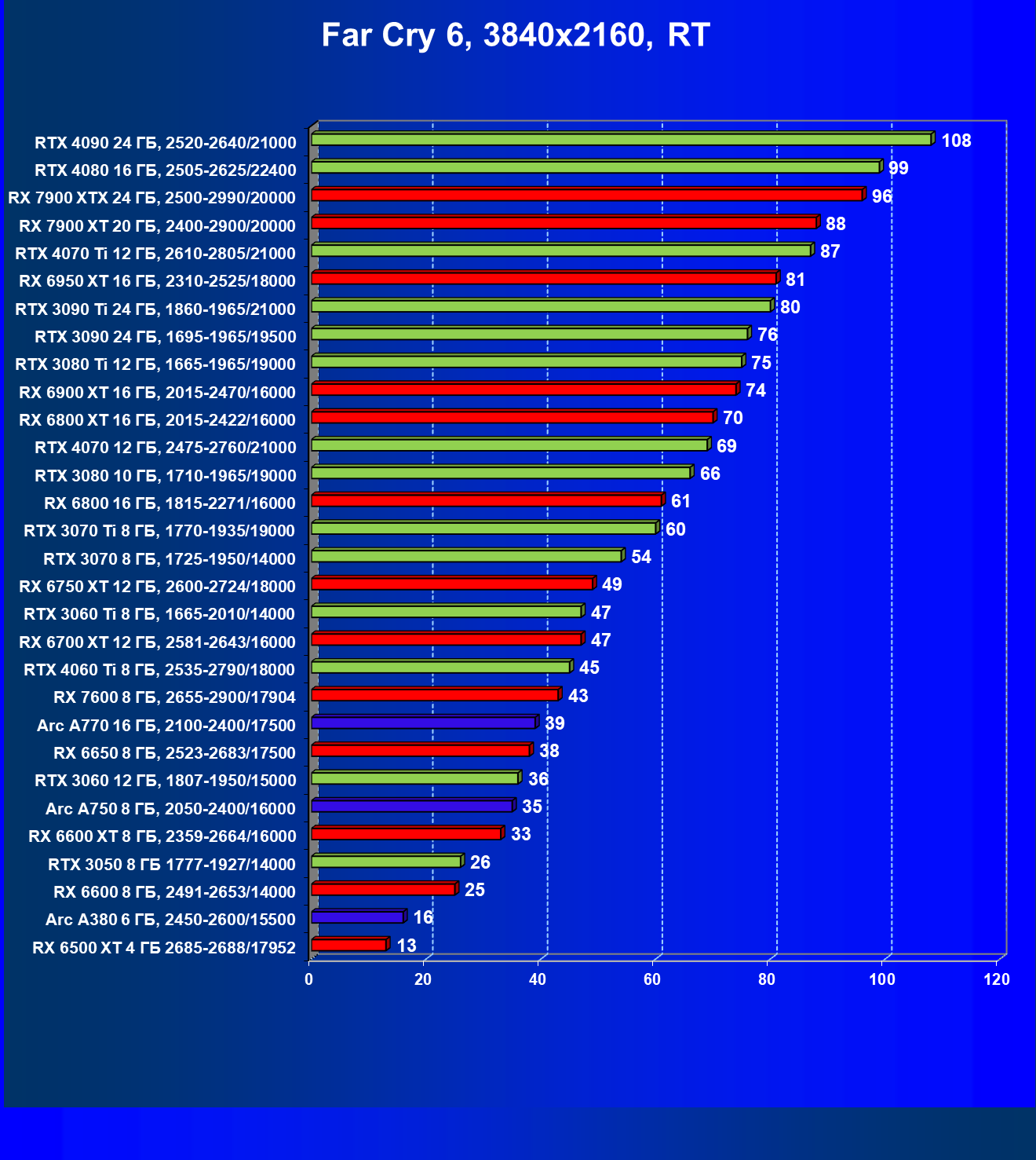 | 22 | RX 7900 XT 20 ГБ, 2400—2900/20000 | 107 | 799 | 75 000 |