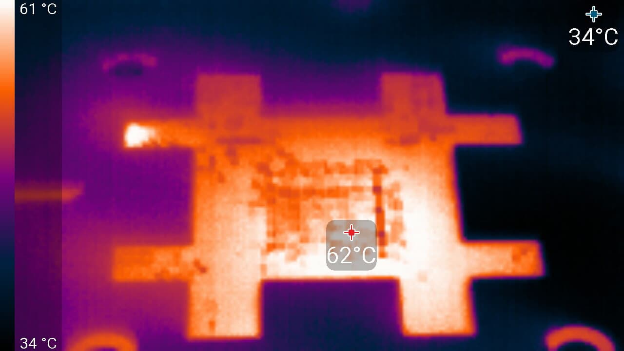 После 2-часового прогона под нагрузкой максимальная температура ядра не превысила 75 градусов, что является приемлемым результатом для видеокарт такого уровня. Максимальная мощность была зафиксирована на уровне 131 Вт, а максимальный нагрев наблюдался в центре PCB.