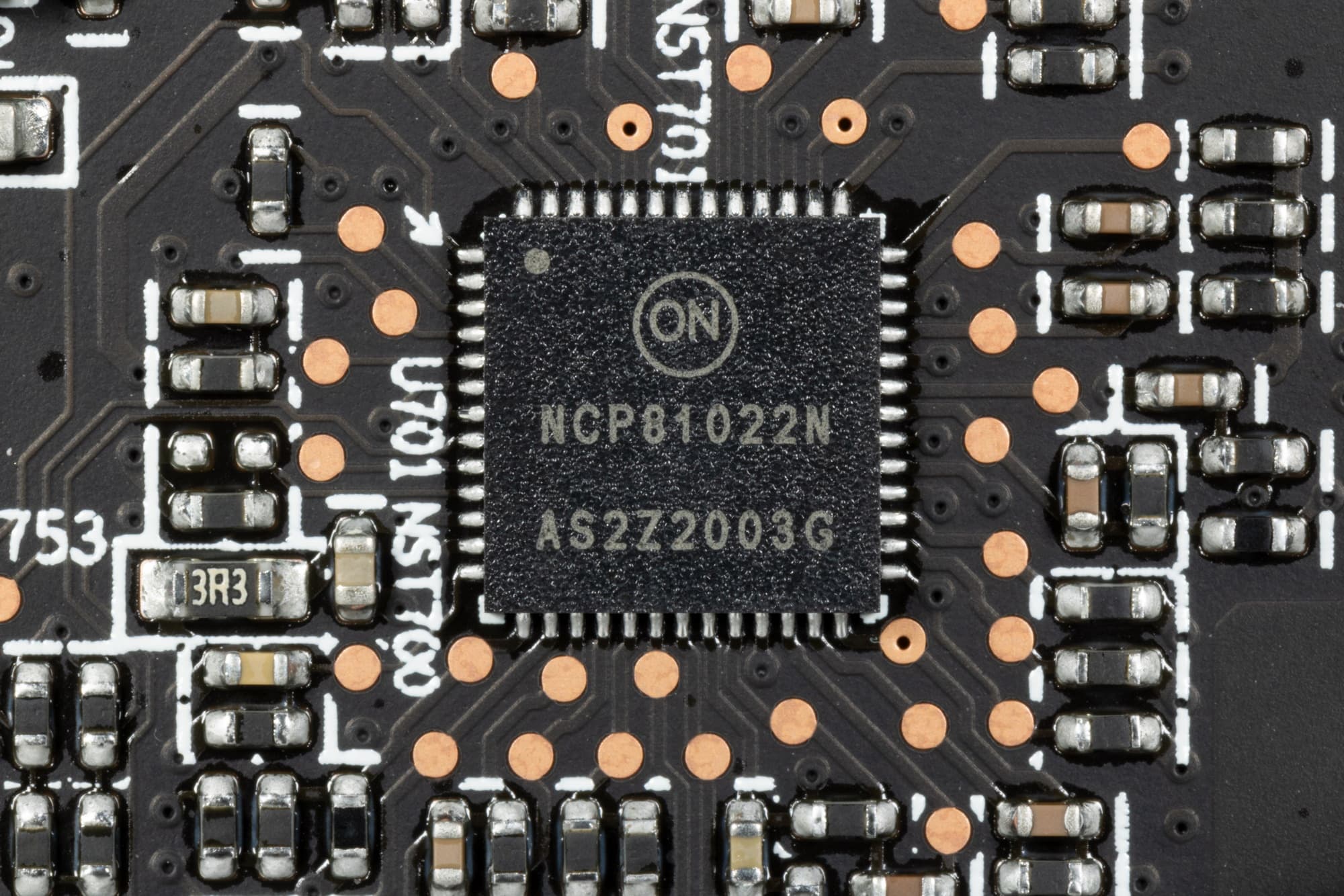 А схемой питания микросхем памяти заправляет ШИМ-контроллер NCP81022 (On Semiconductor). Оба контроллера расположены на лицевой стороне платы.