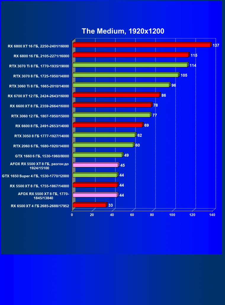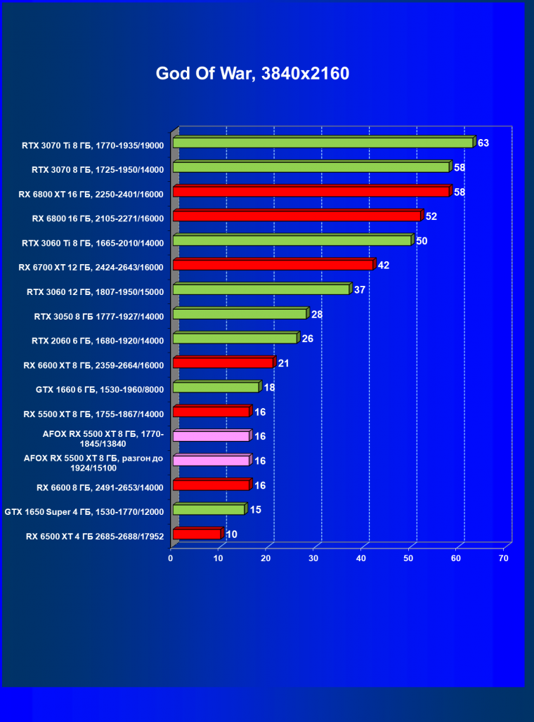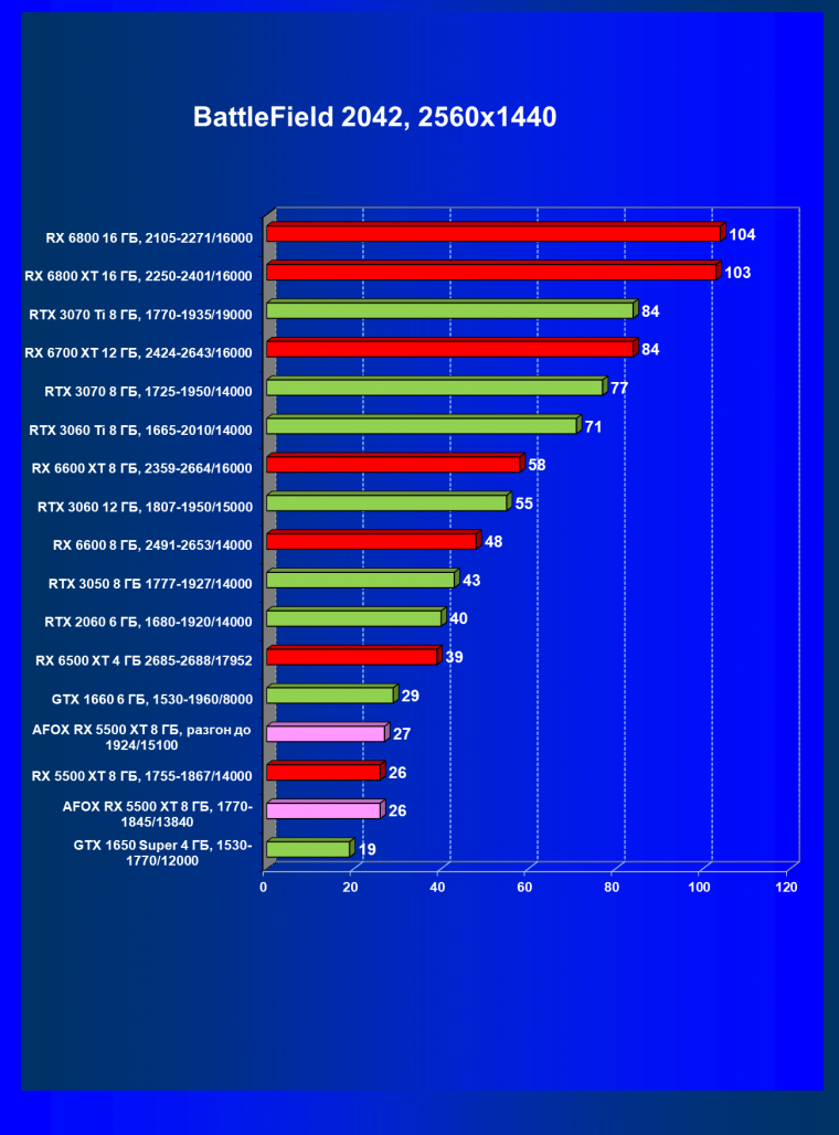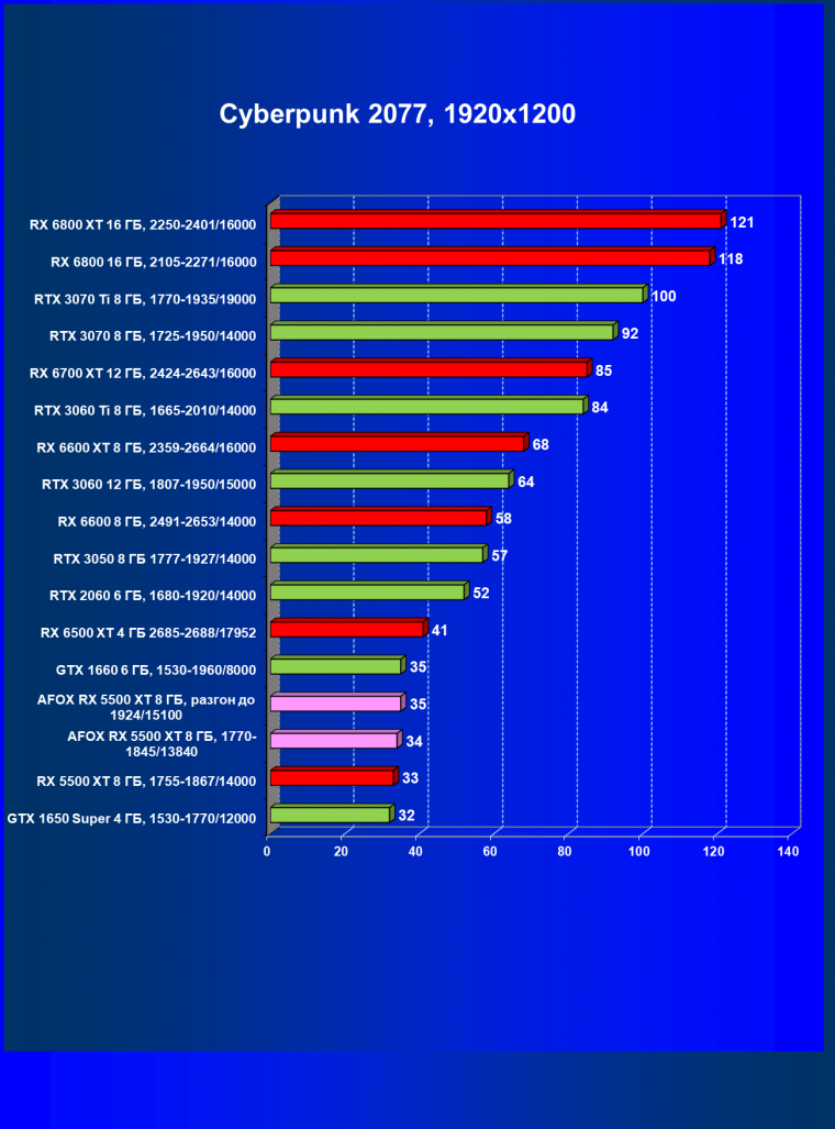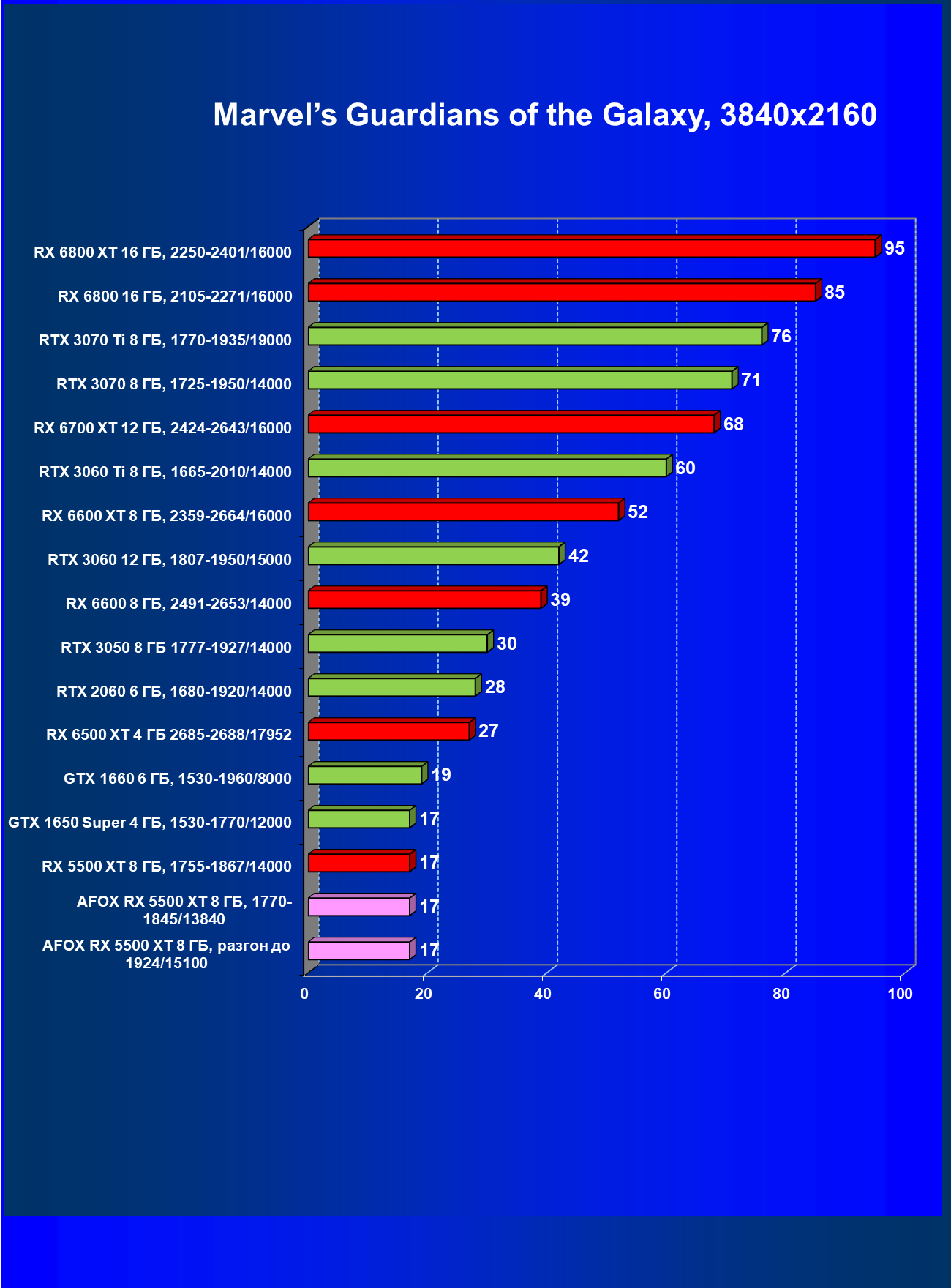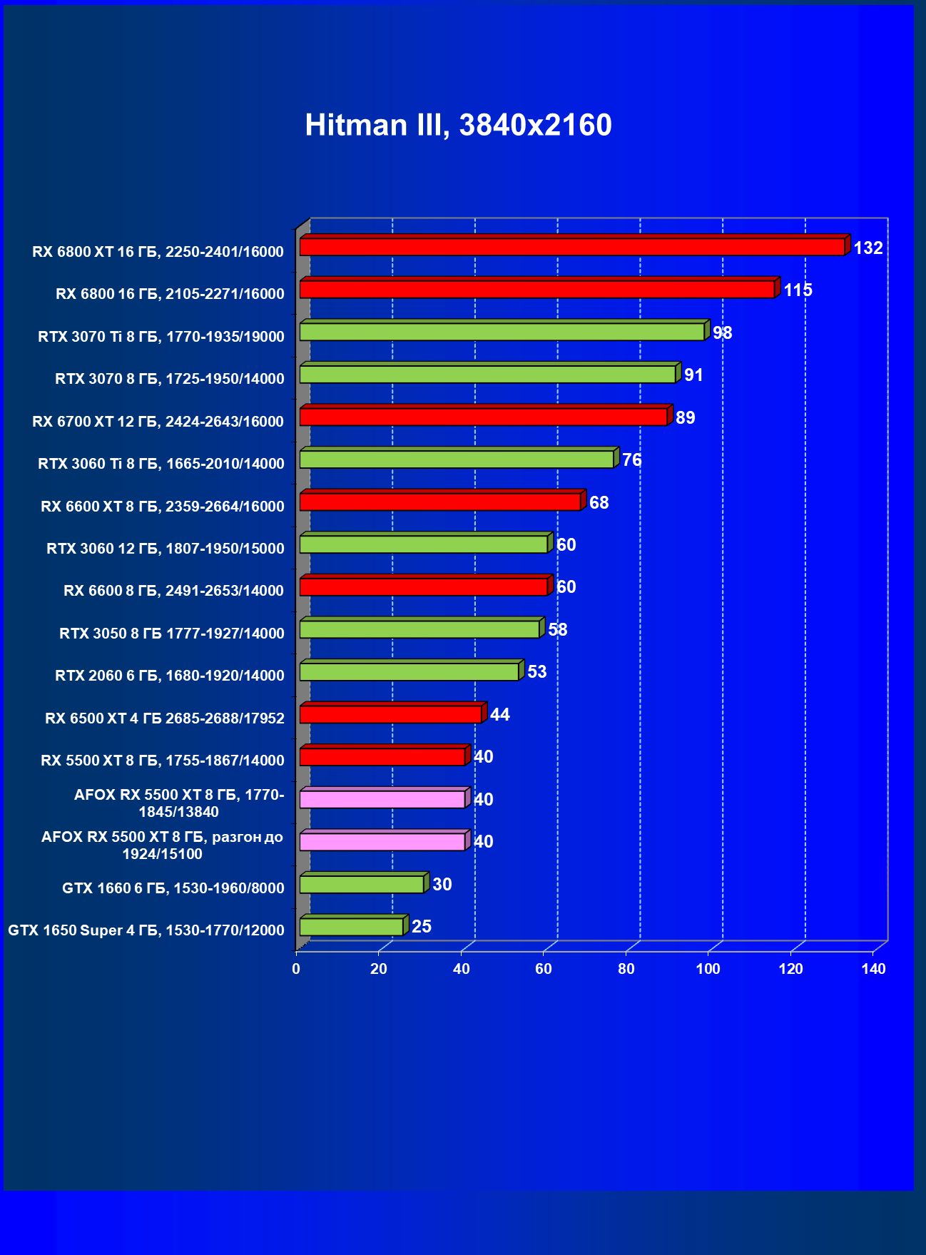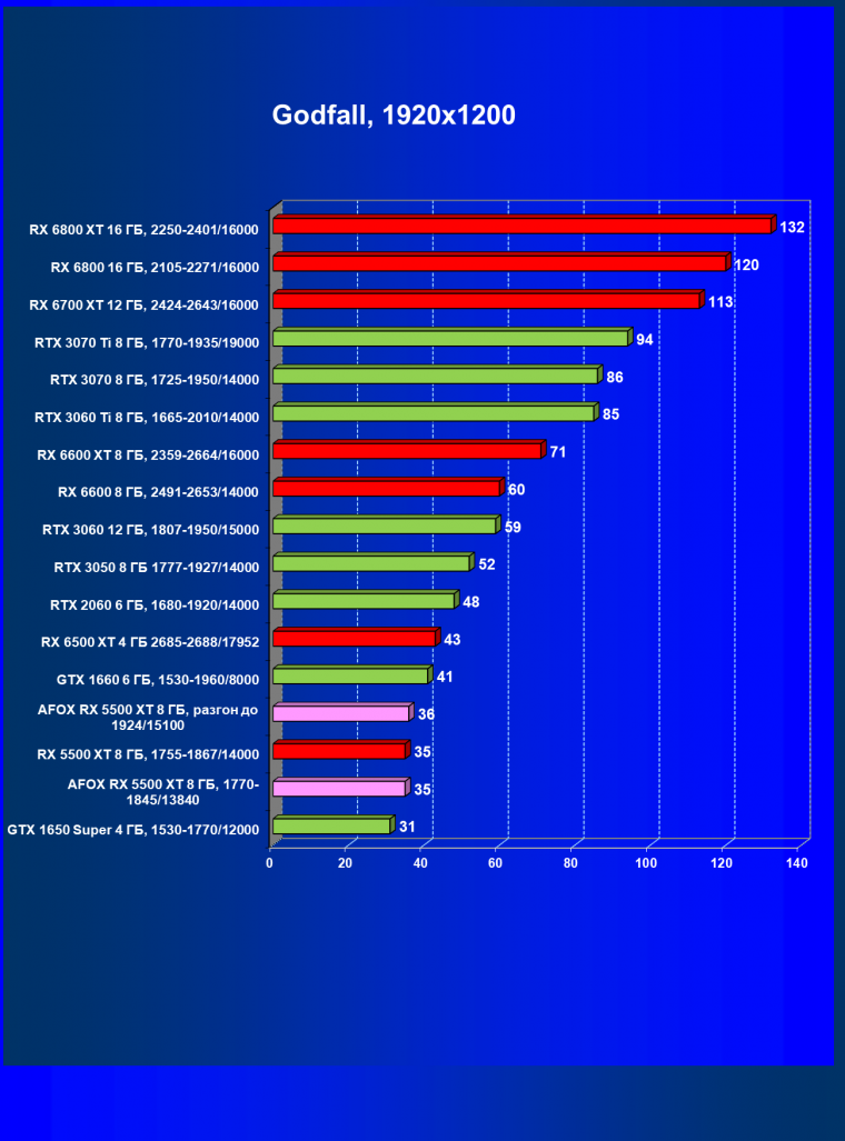 | 03 | Afox RX 5500 XT 8 ГБ, 1770—1845/13840 | 48 | 100 | 21 000 |
