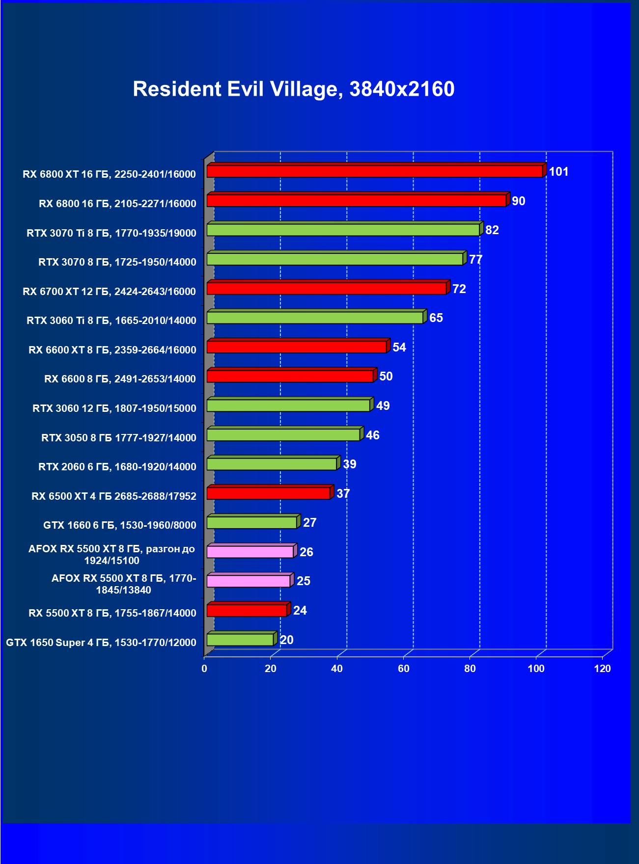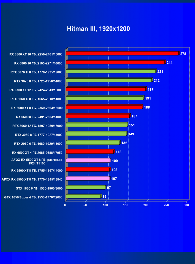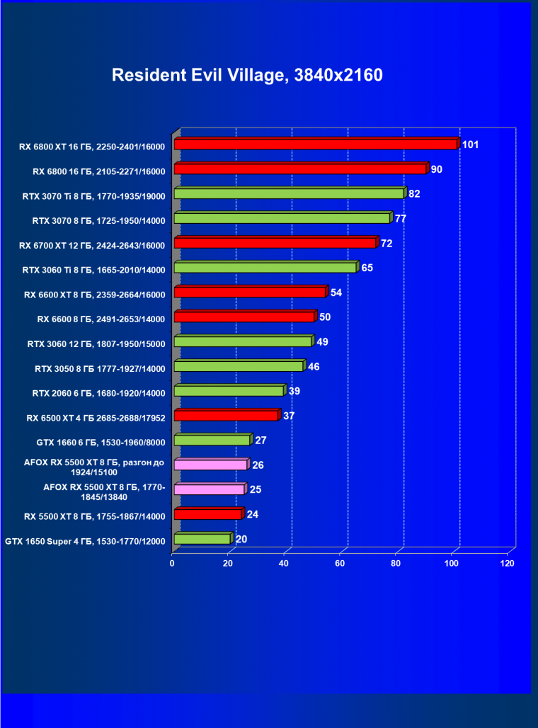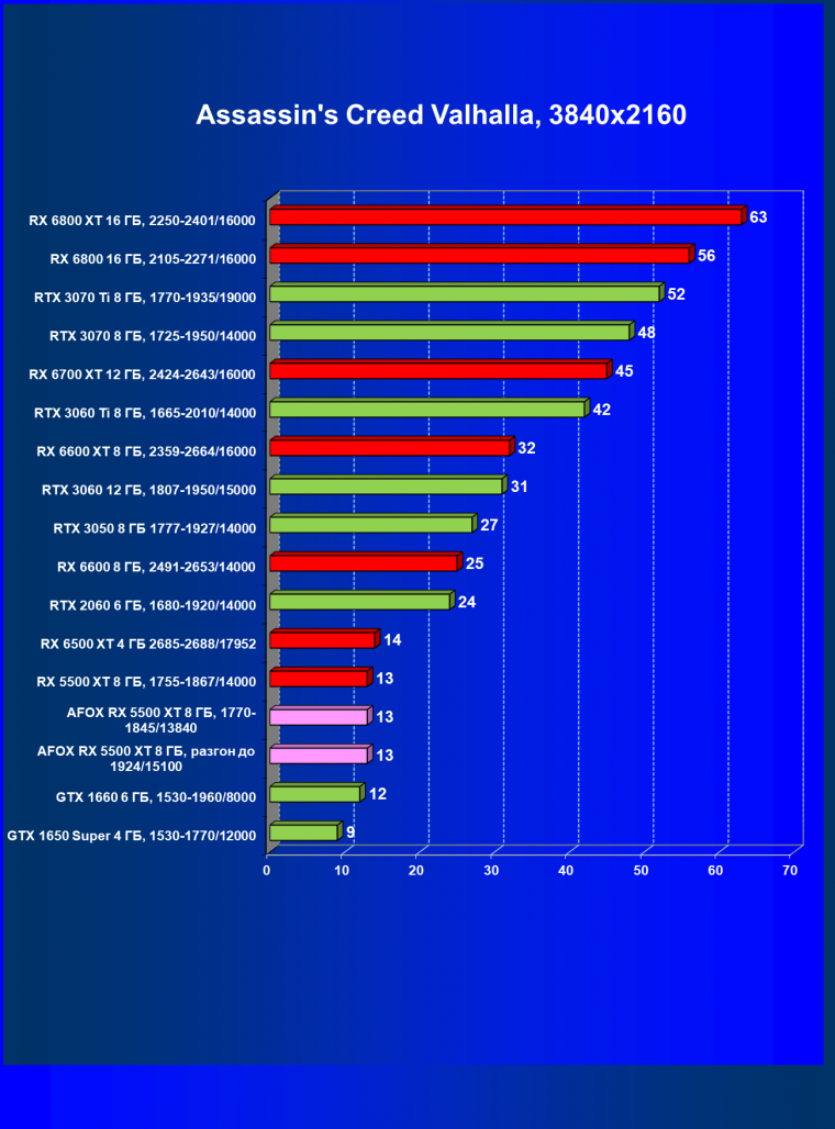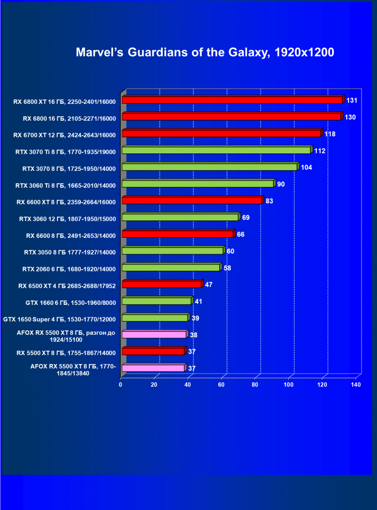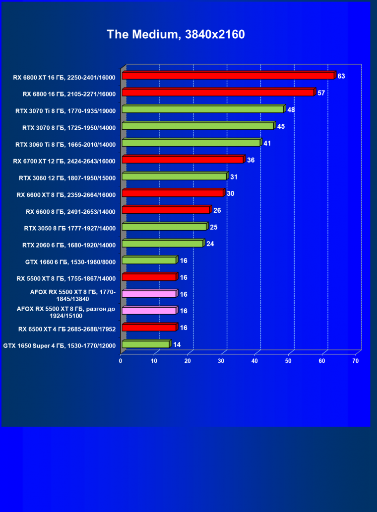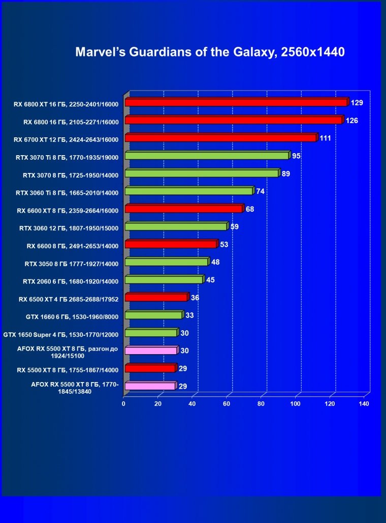 | 03 | Afox RX 5500 XT 8 ГБ, 1770—1845/13840 | 48 | 100 | 21 000 |