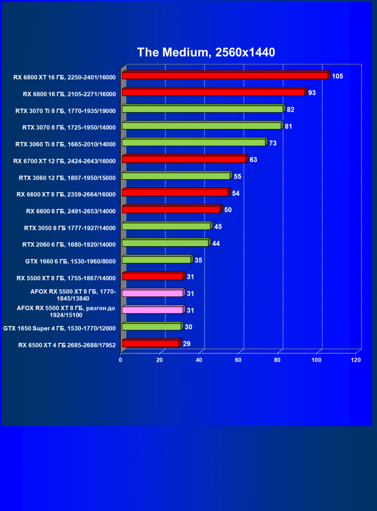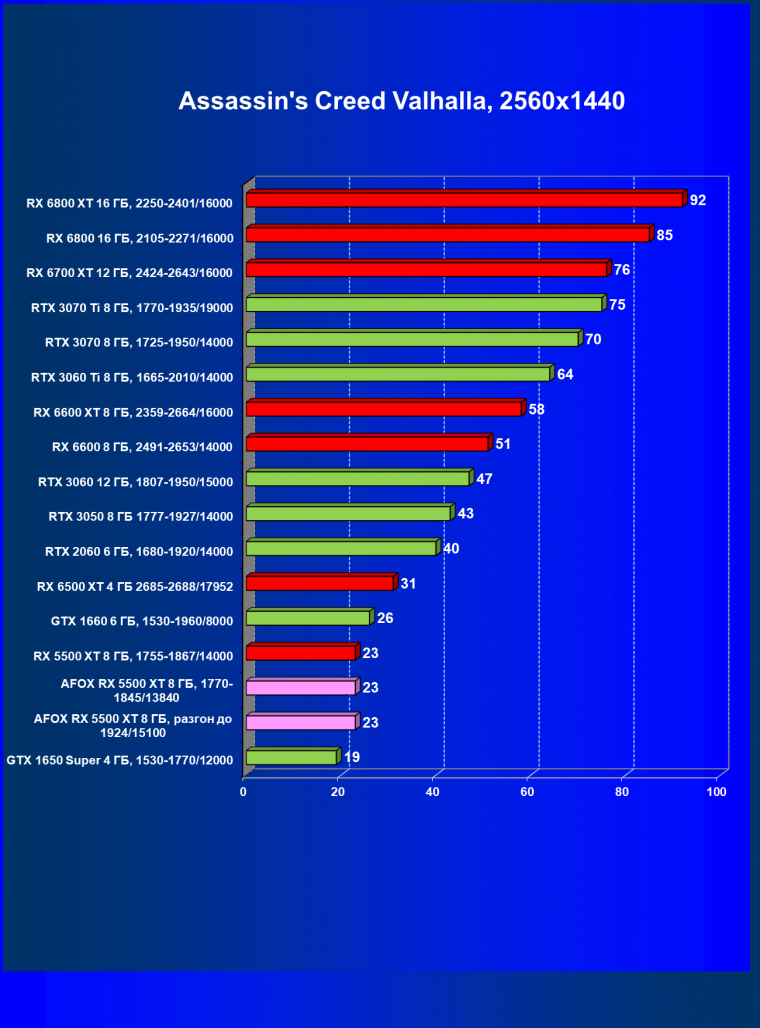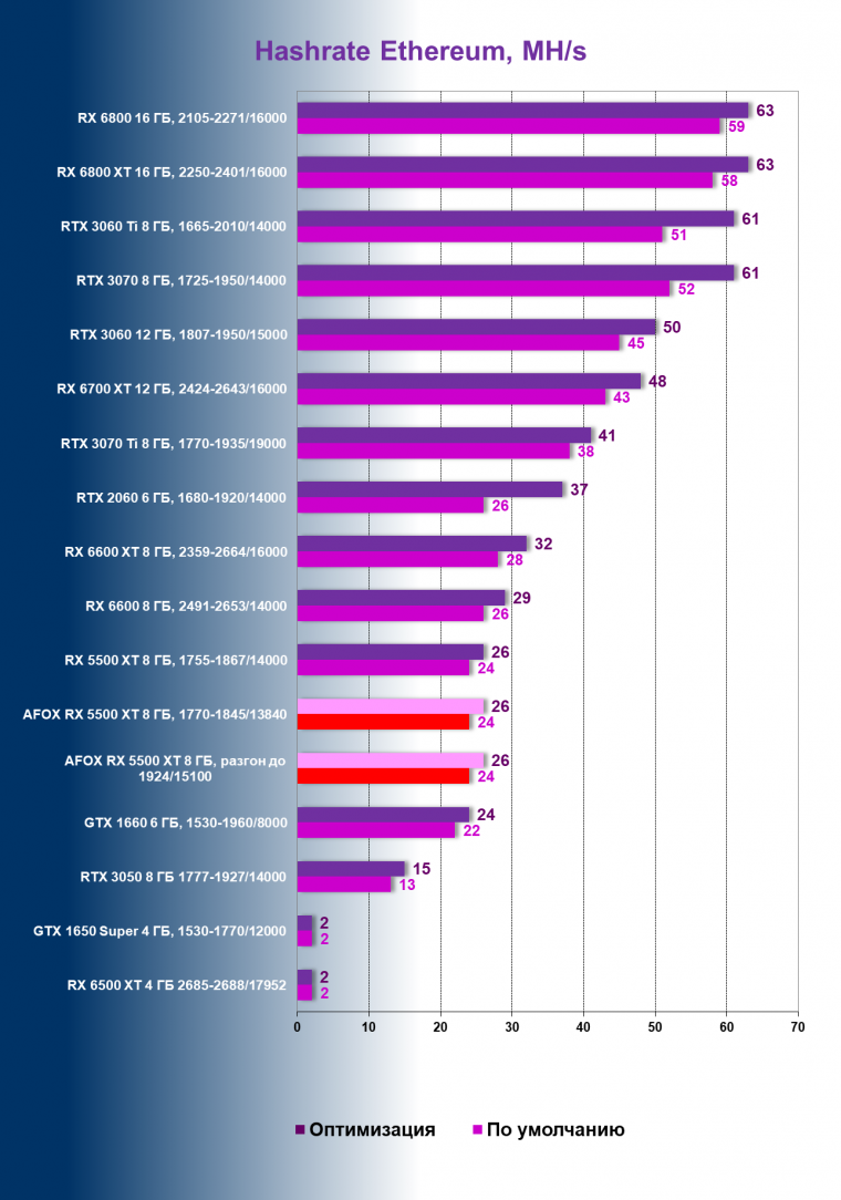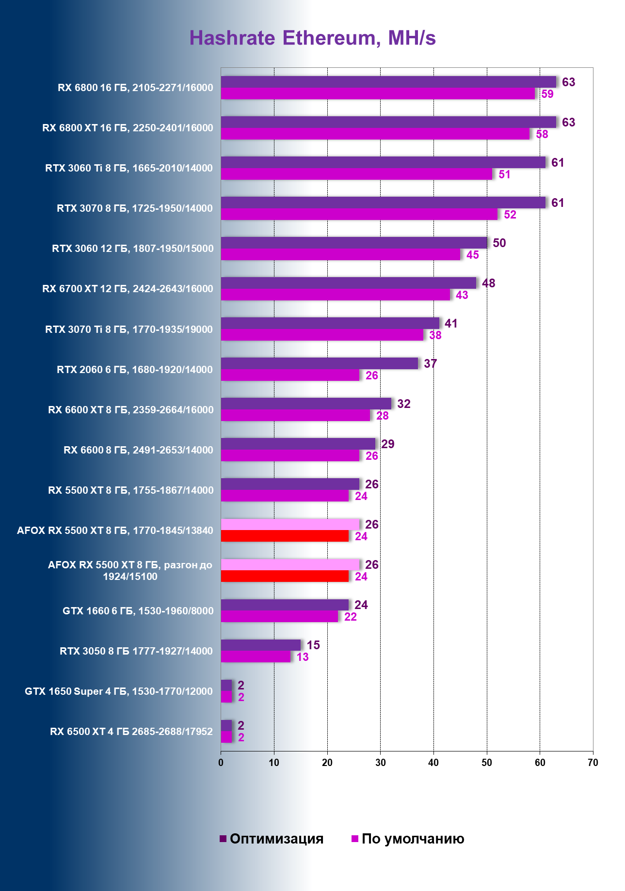 | 02 | Afox RX 5500 XT 8 ГБ, разгон до 1924/15100 | 48 | 100 | 21 000 |