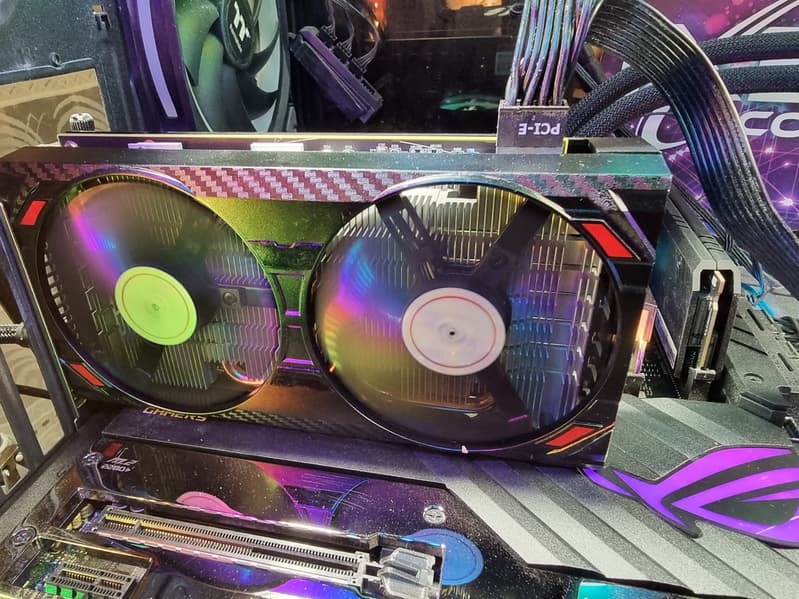 Штатные частоты памяти и ядра у карты Afox почти равны референсным значениям. Карта стабильно работала при ручном разгоне ядра до 1924 МГц, а памяти — до 15,1 ГГц. Это примерно на 3% выше референсных величин, и такой разгон обеспечил прирост производительности на 2,4%.