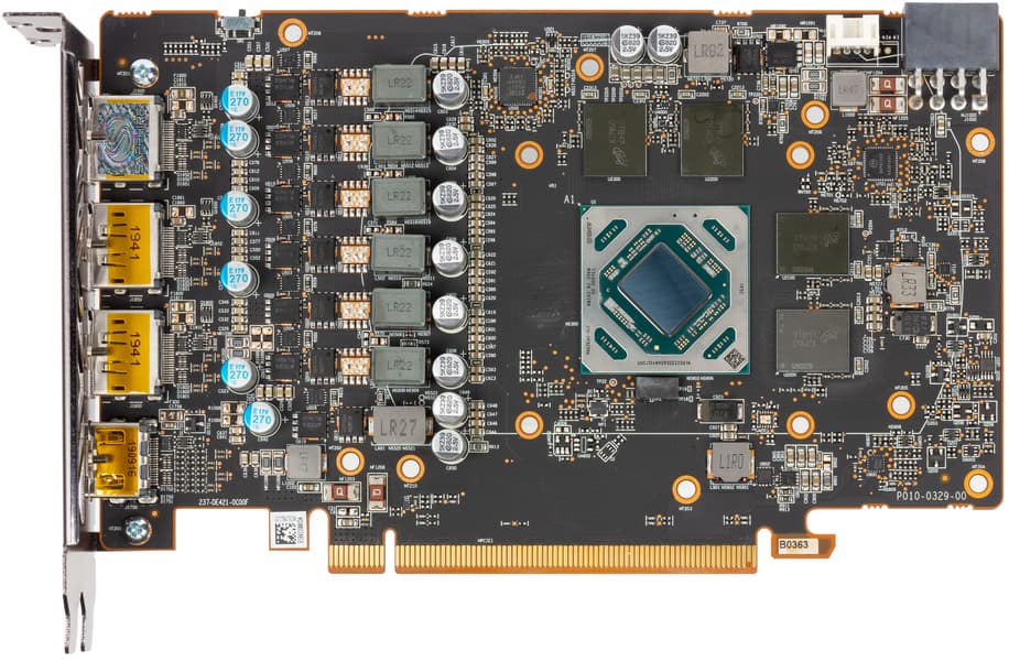 Прекрасно видно, что карта Afox является копией референс-карты, ну, как я и говорил, в данном случае компания просто закупает готовые карты, которых на рынке в Китае пока достаточно. Разумеется, при отсутствии таких PCB, имеются собственные заготовки, просто цикл производства станет длиннее по времени и чуть дороже.