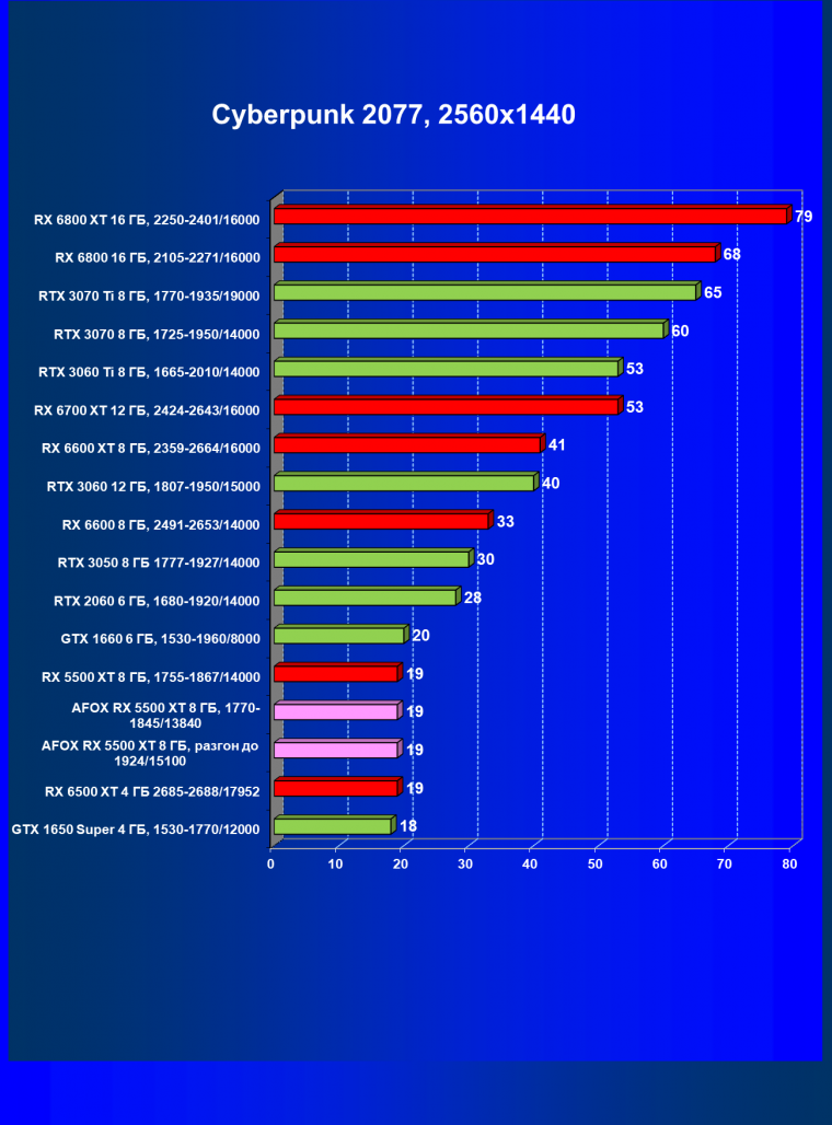 | 14 | Afox RX 5500 XT 8 ГБ, разгон до 1924/15100 | 100 | 48 | 21 000 |