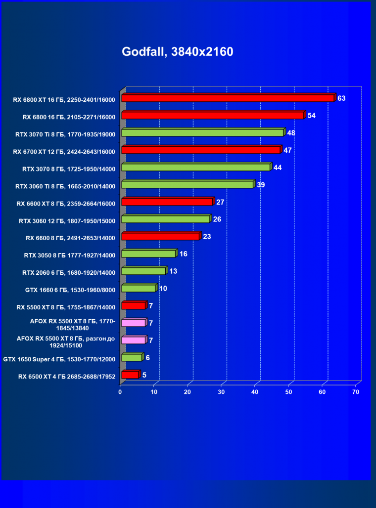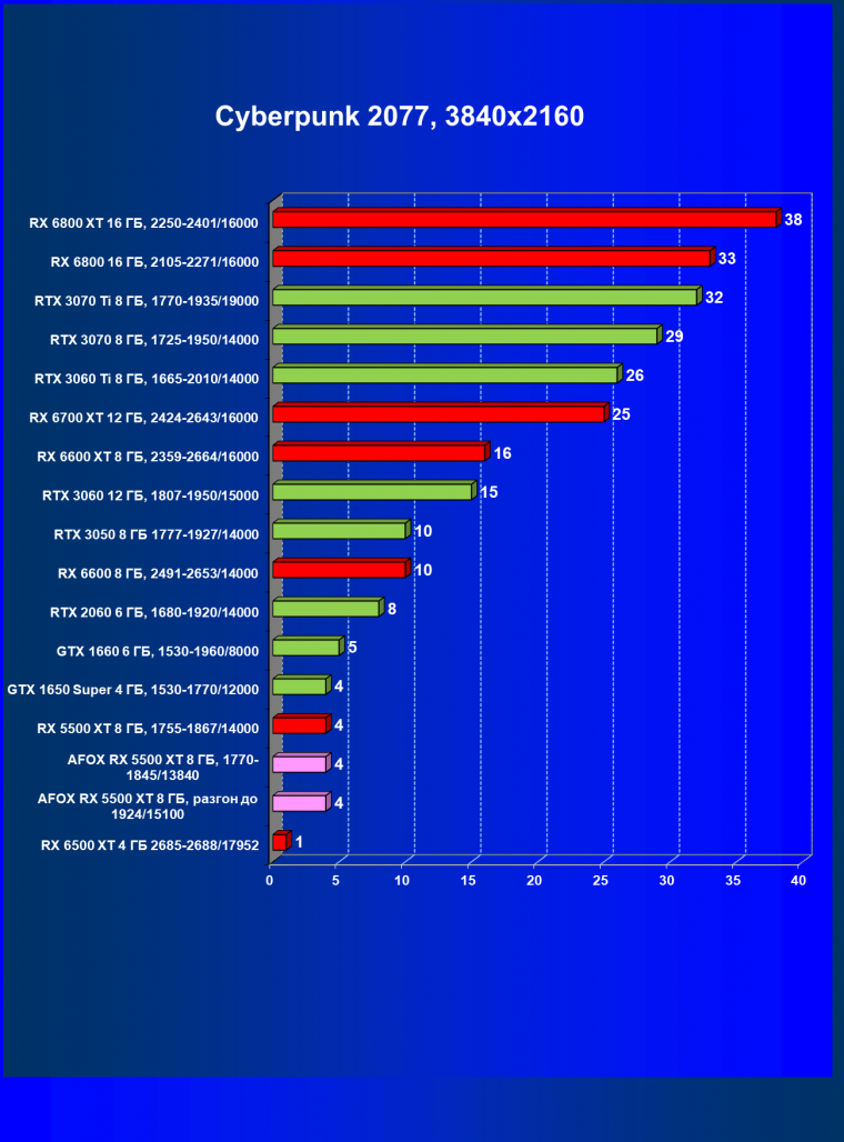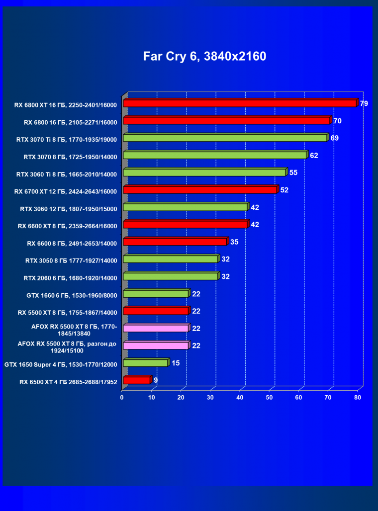 | 13 | RX 6500 XT 4 ГБ 2685—2688/17952 | 100 | 45 | 22 000 |