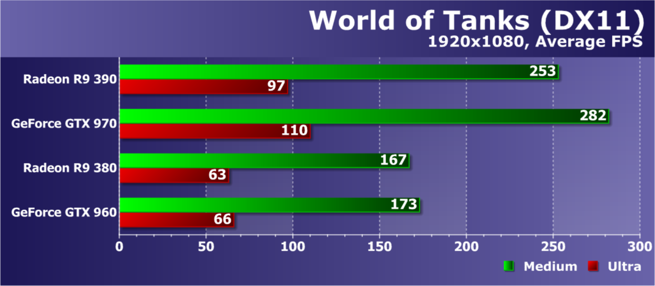 | Radeon R9 390 против GeForce GTX 970 | Средние настройки | Ультра-настройки |