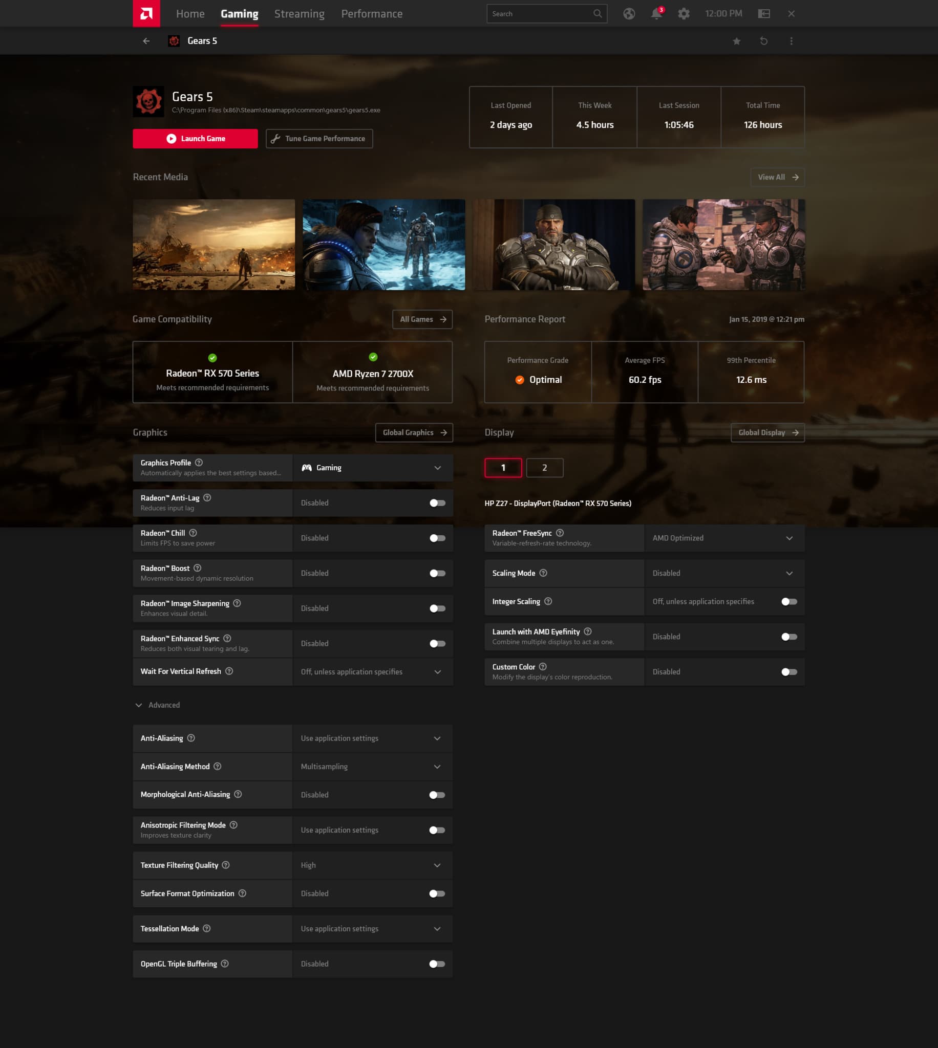 Основной режим интерфейса Radeon Software состоит из нескольких зон, закладок и других элементов. Тут есть как домашний стартовый экран, так и игровой центр, служащий для запуска игр разных сервисов из единого каталога — с изменением графических настроек драйвера отдельно для каждого приложения и отслеживанием статистики о производительности и игровом процессе, что может быть весьма полезным делом.
