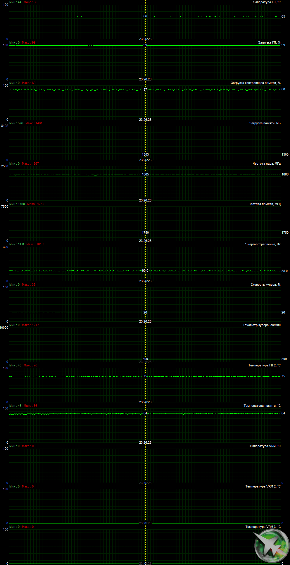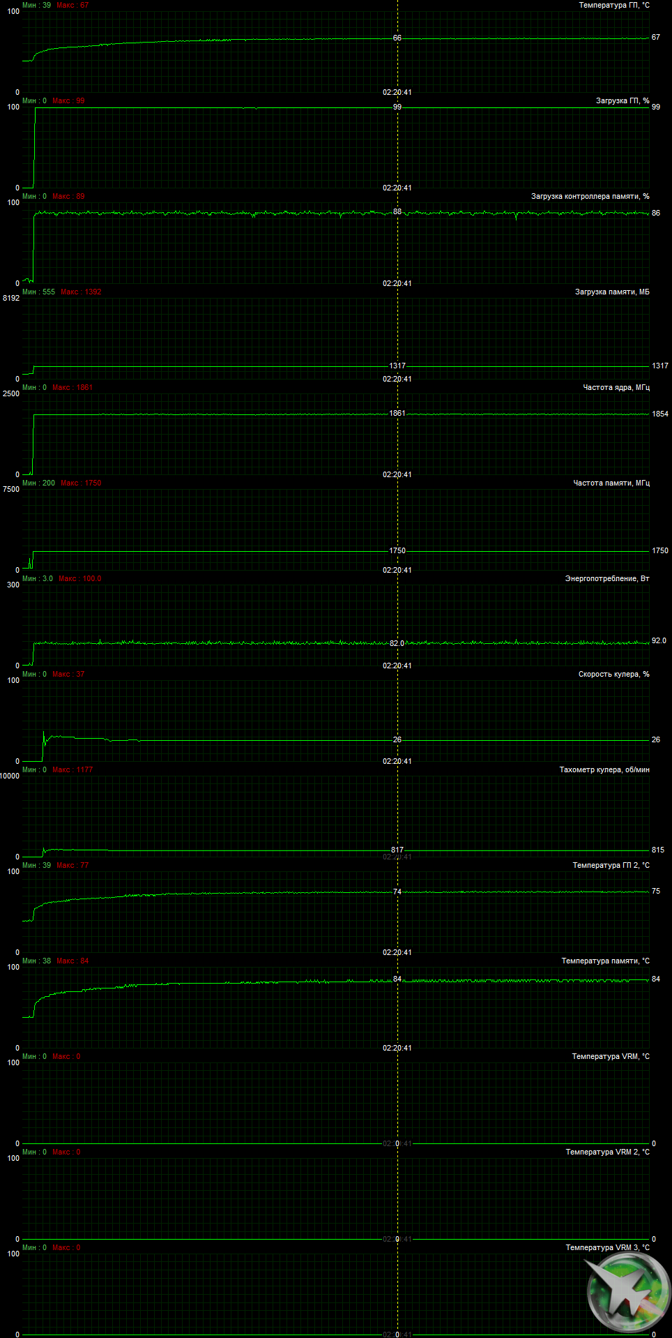 Следует отметить, что из-за очень жесткого ограничения по питанию частота GPU очень редко поднималась выше Boost-значений.