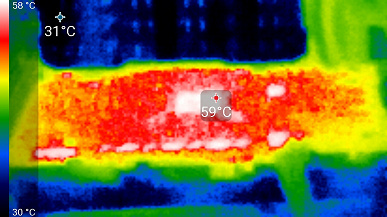 Нагрев у обеих карт одинаковый по распределению по PCB, а максимальный нагрев — в центральной области.