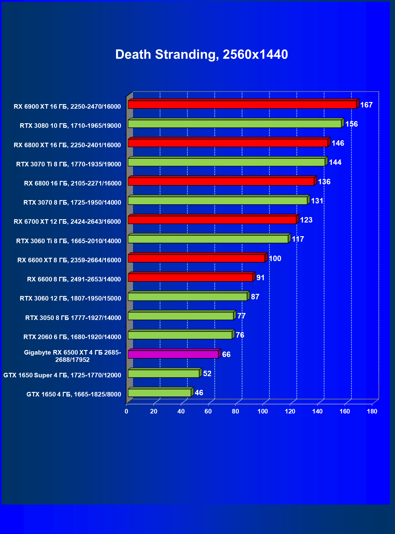 | 18 | GTX 1650 4 ГБ, 1665-1825/8000 | 63 | 22 | 29000 |