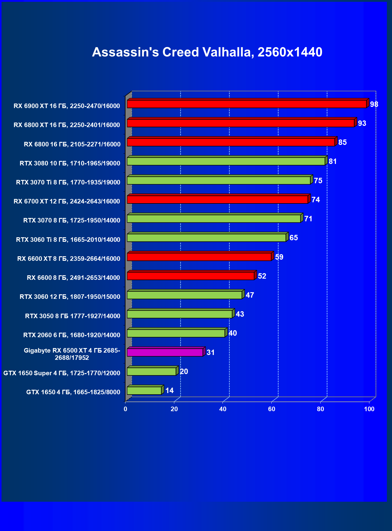 | 02 | Gigabyte Radeon RX 6500 XT 4 ГБ 2685-2688/17952 | 33 | 100 | 30000 |