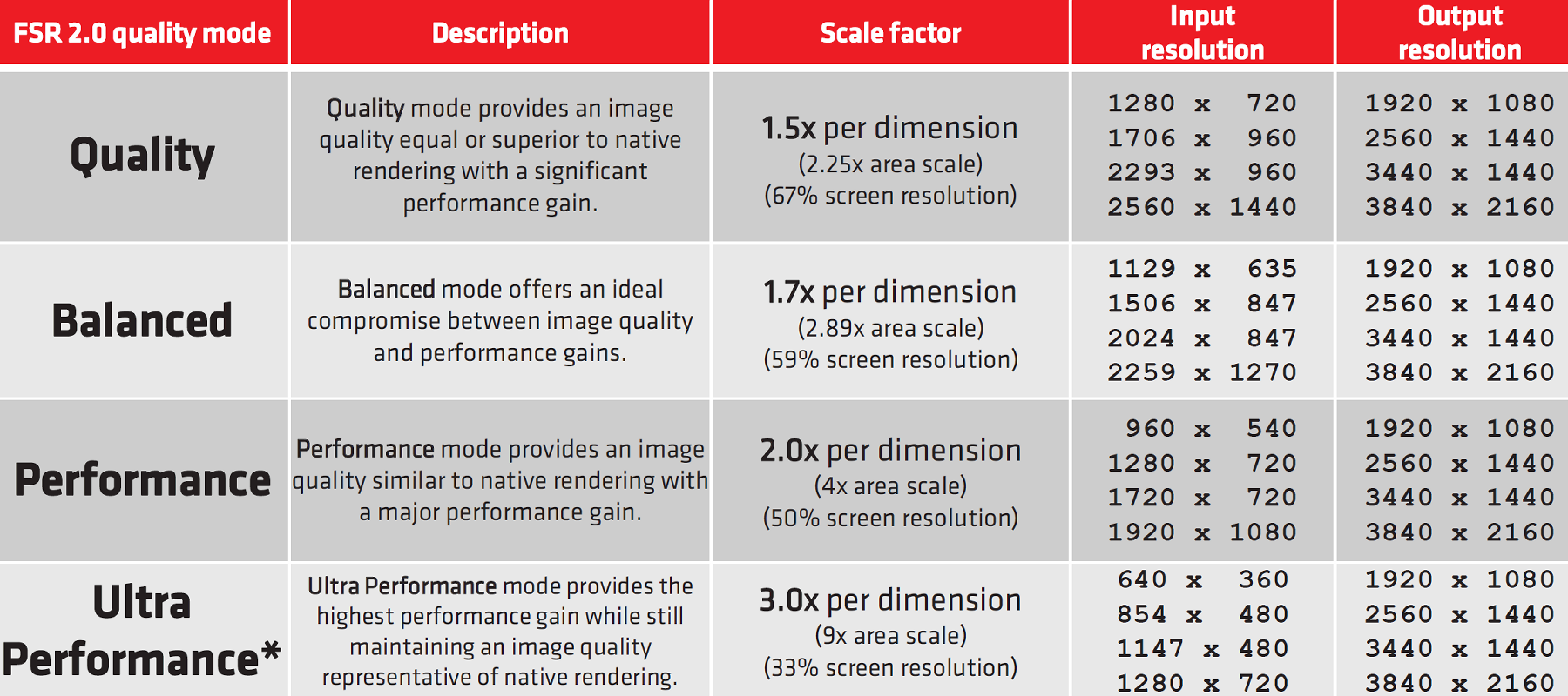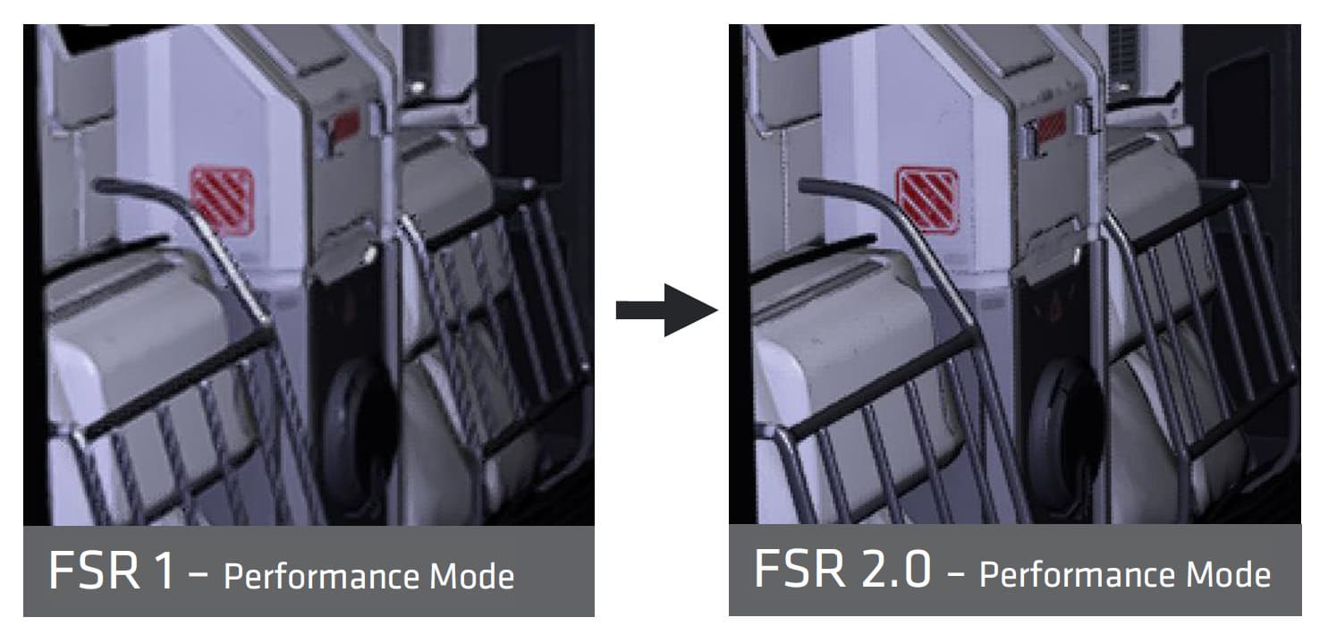 Для решения этих проблем в AMD предложили FidelityFX Super Resolution второй версии — FSR 2.0. Над этим алгоритмом в AMD работали несколько лет, и это полностью новый метод, не основанный на FSR 1.0. Как и DLSS, он использует информацию из предыдущих кадров и обеспечивает куда более высокое качество масштабирования картинки по сравнению с FSR 1.0, но при этом не требует аппаратного ускорения машинного обучения, как решение Nvidia. Также в FSR 2.0 есть поддержка нескольких уровней качества, а из нового — появилась поддержка работы и с динамическим разрешением.