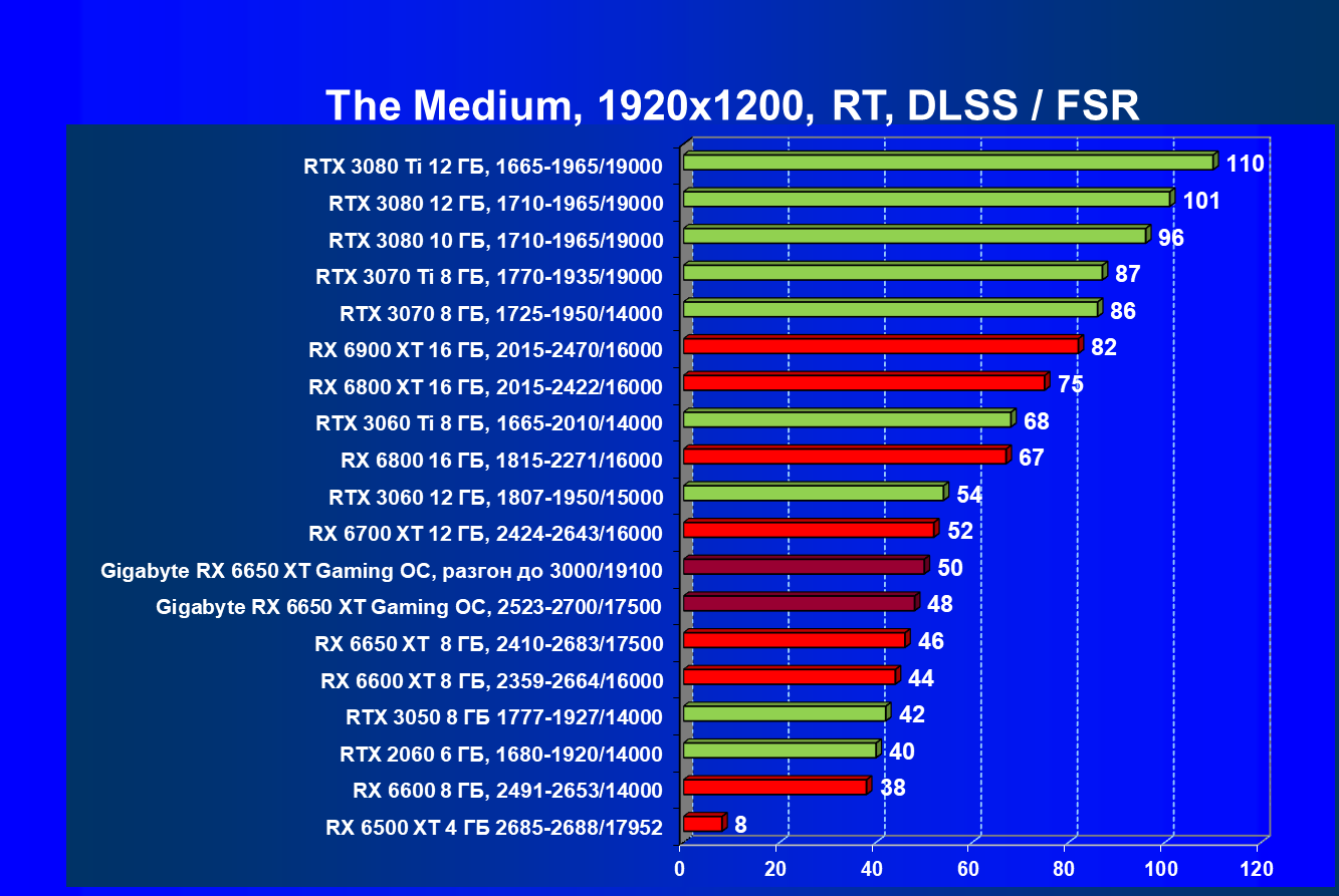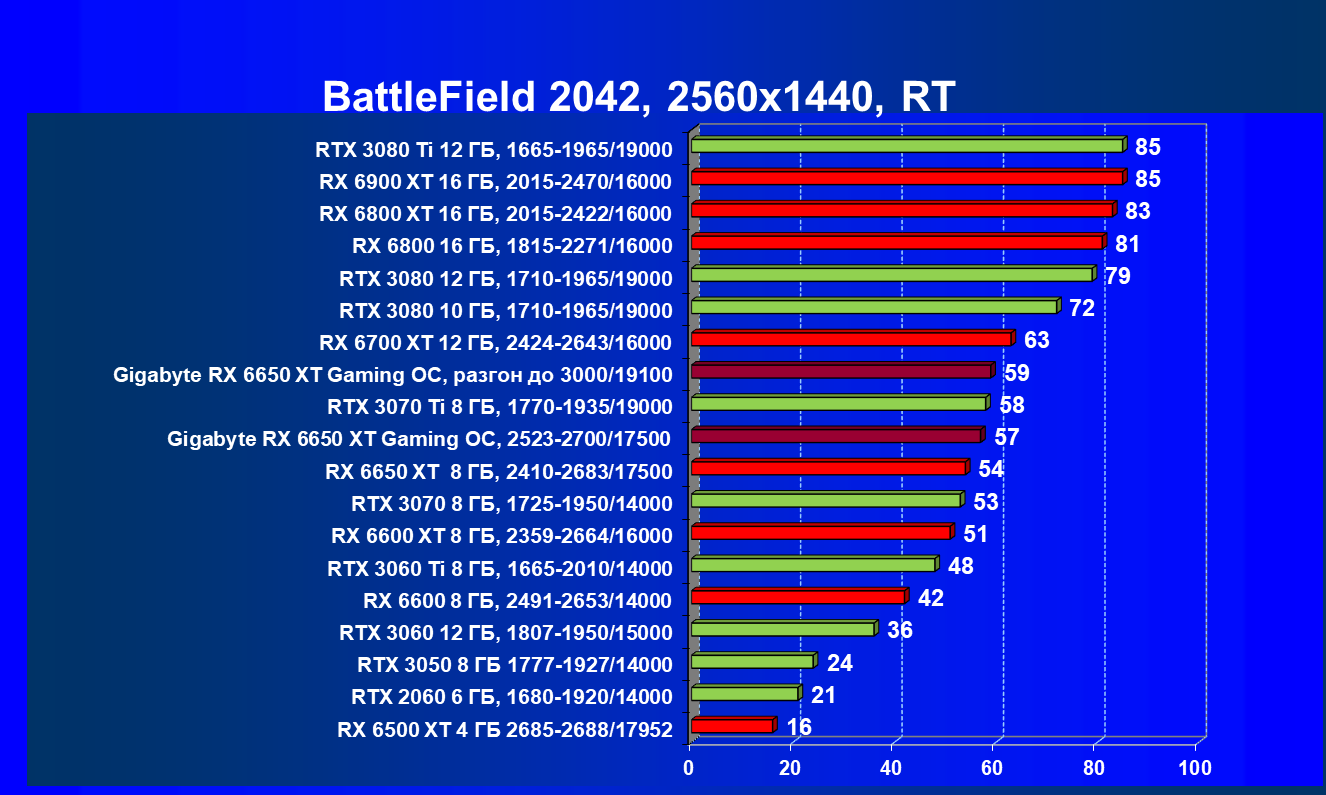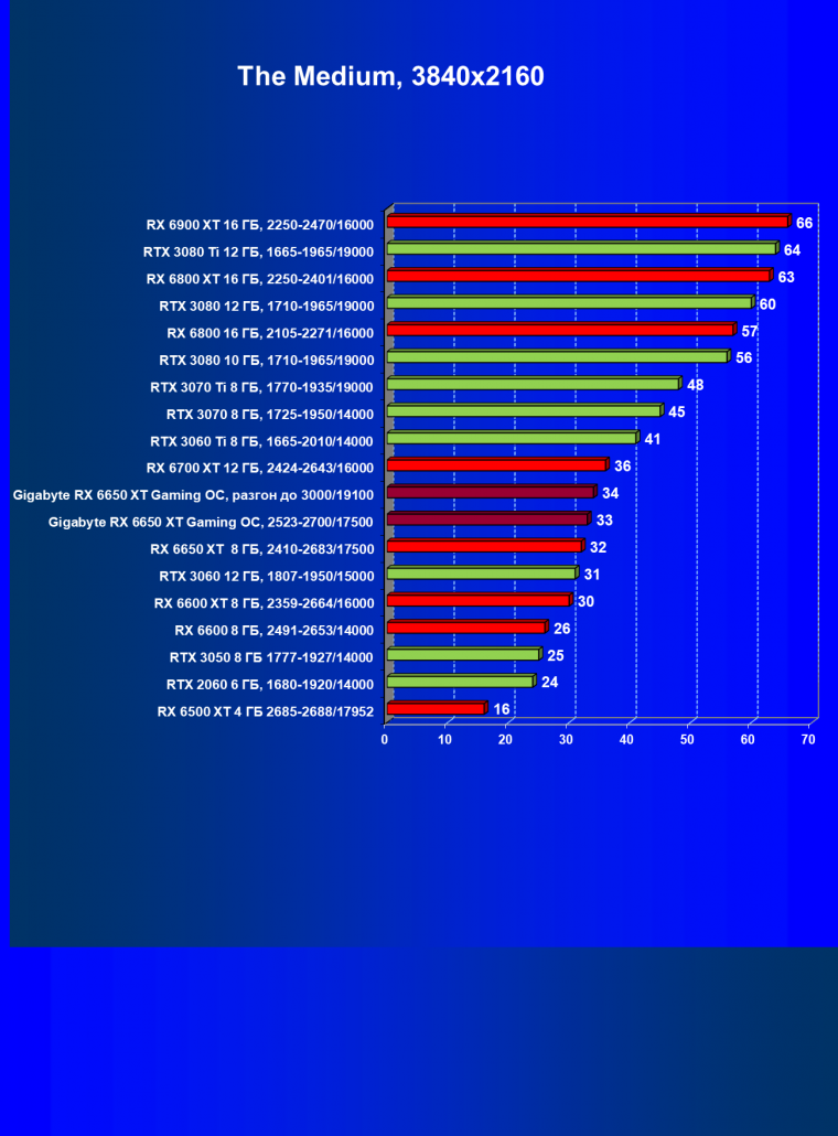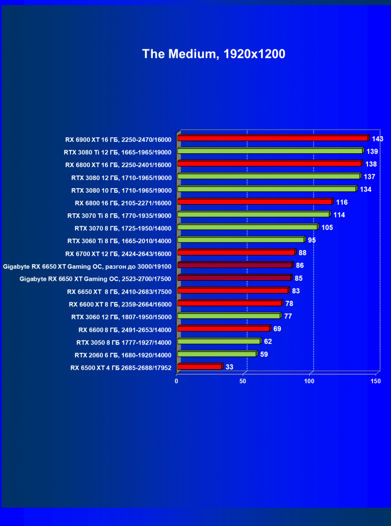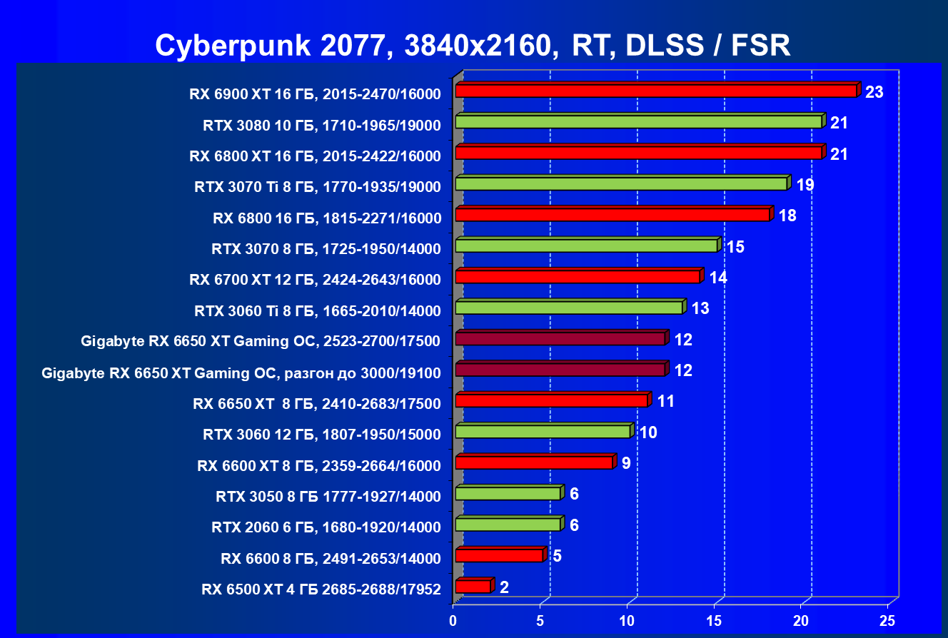 | 11 | Gigabyte RX 6650 XT Gaming OC, разгон до 3000/19100 | 250 | 49 | 51 000 |