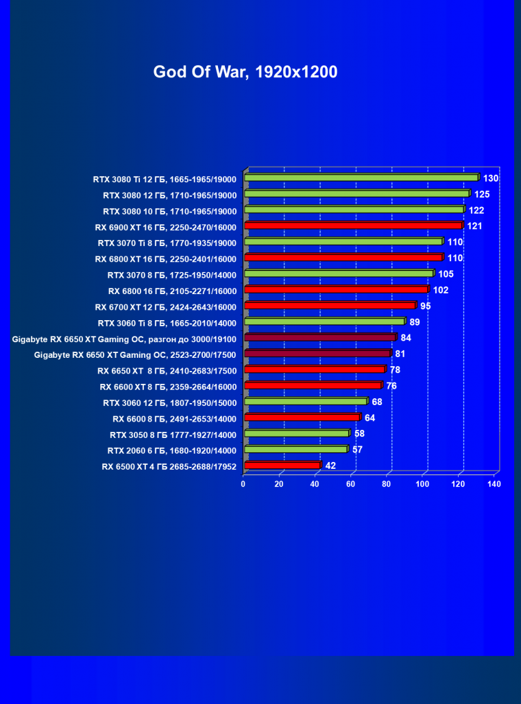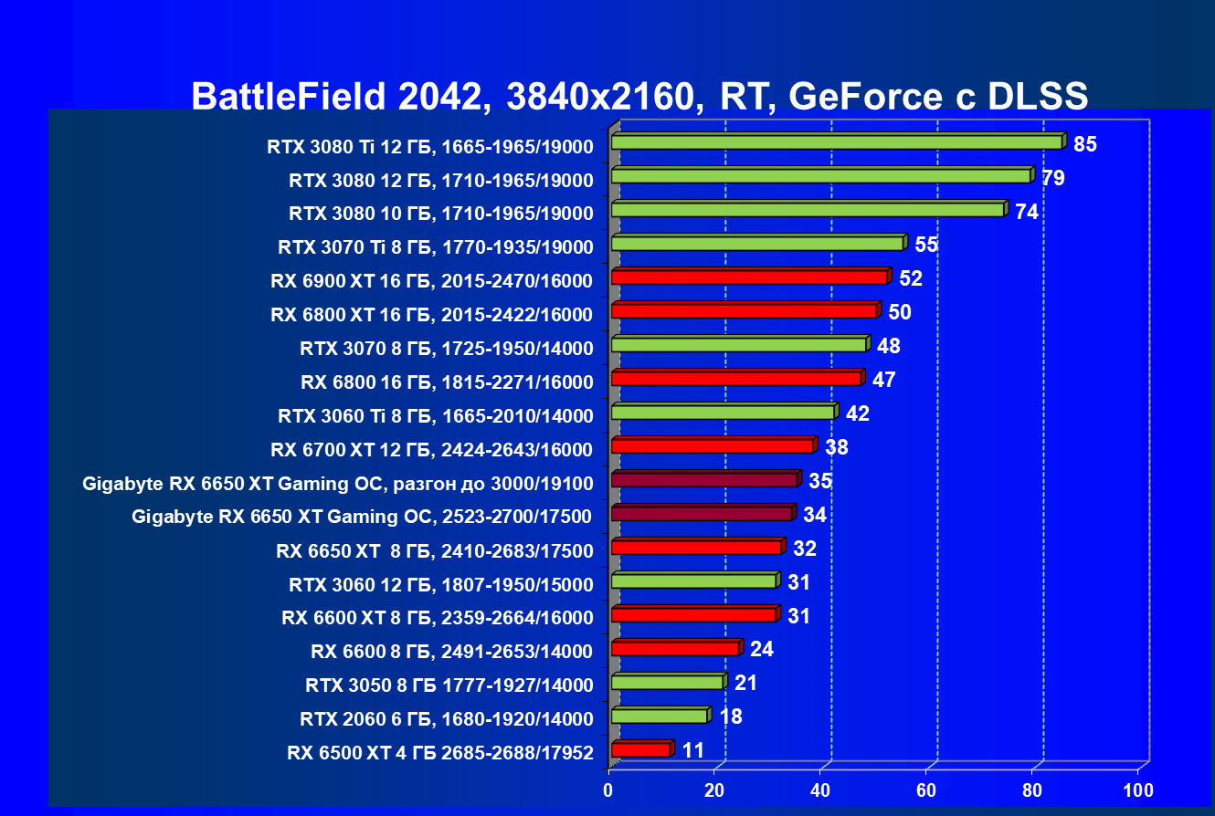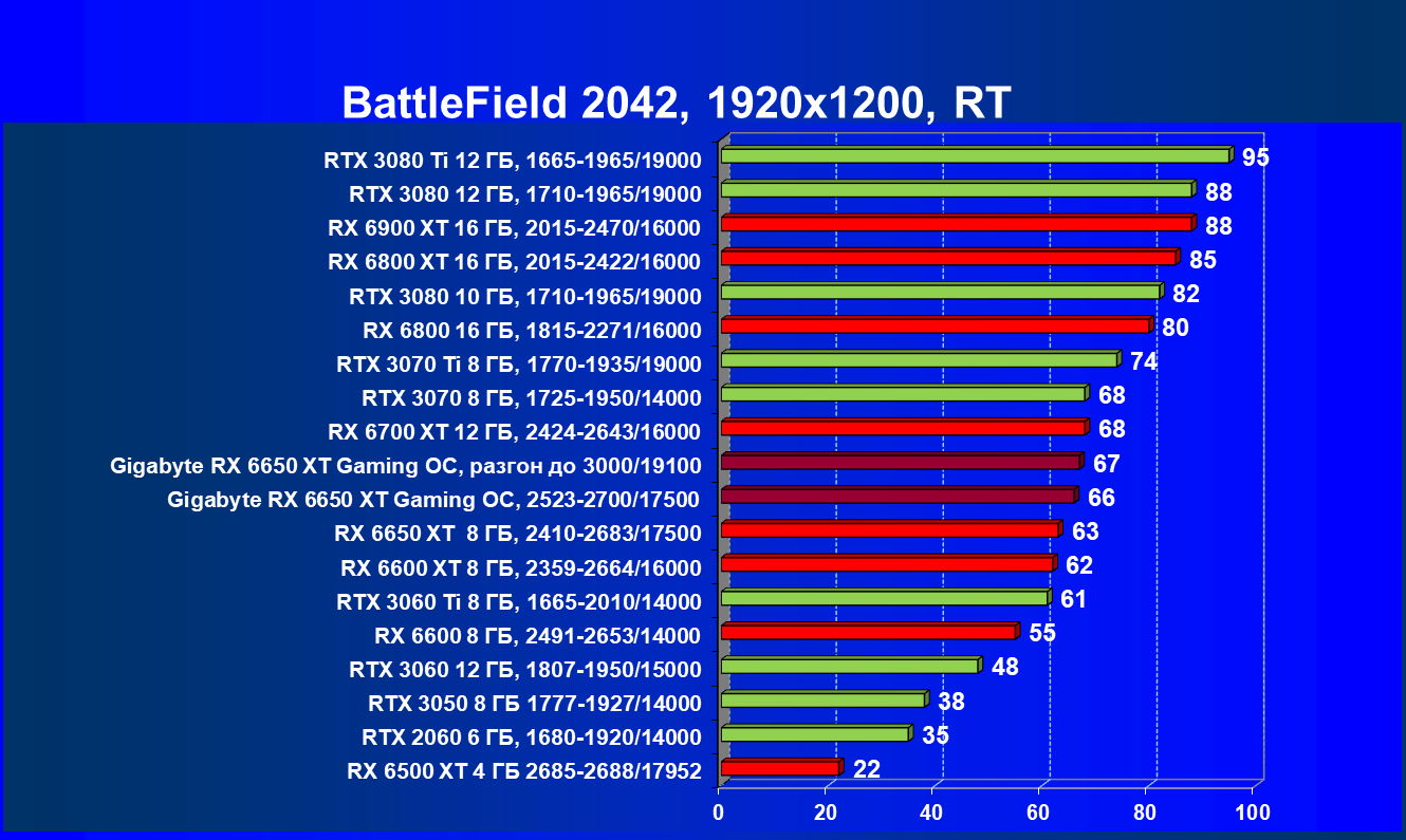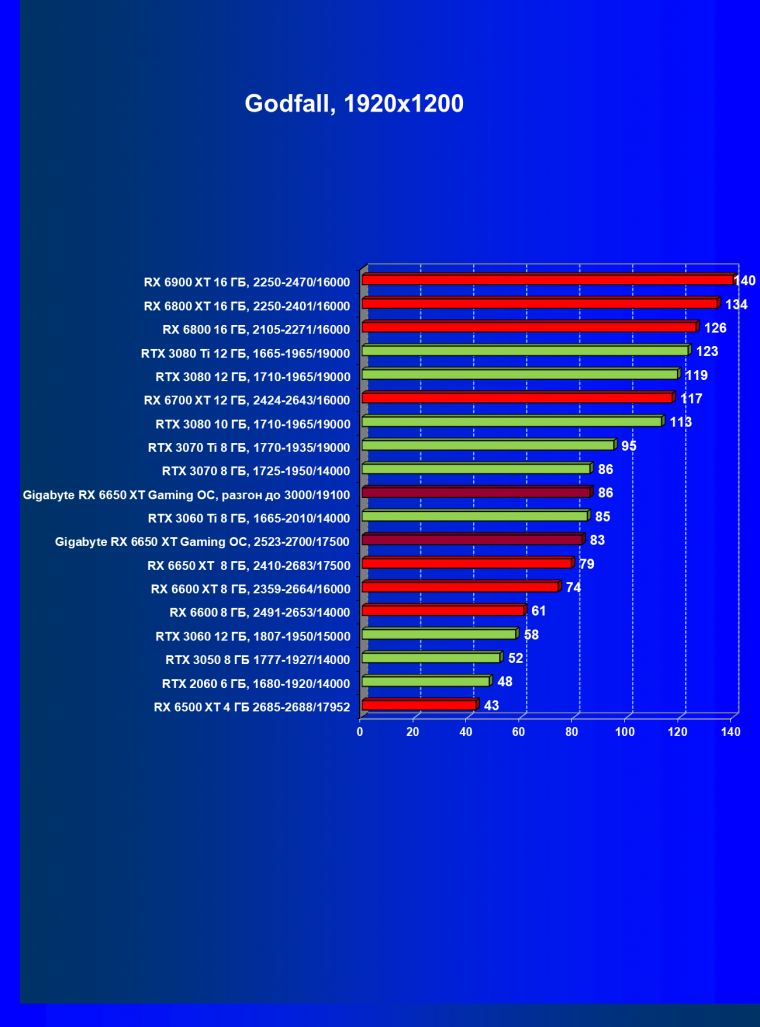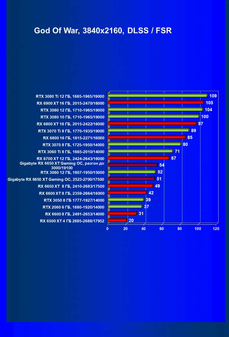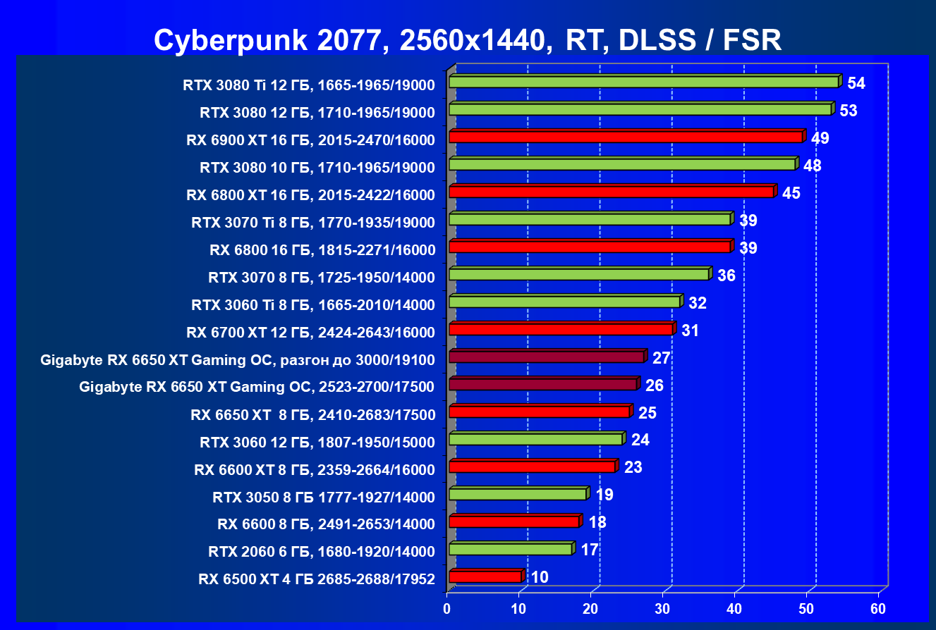 | 11 | Gigabyte RX 6650 XT Gaming OC, разгон до 3000/19100 | 250 | 49 | 51 000 |