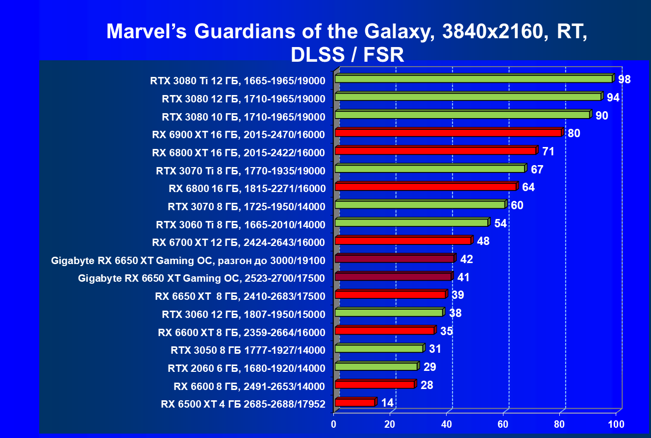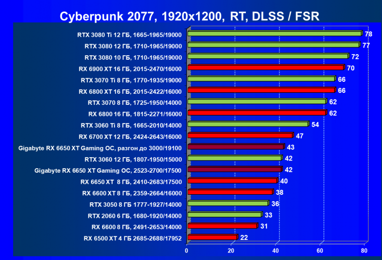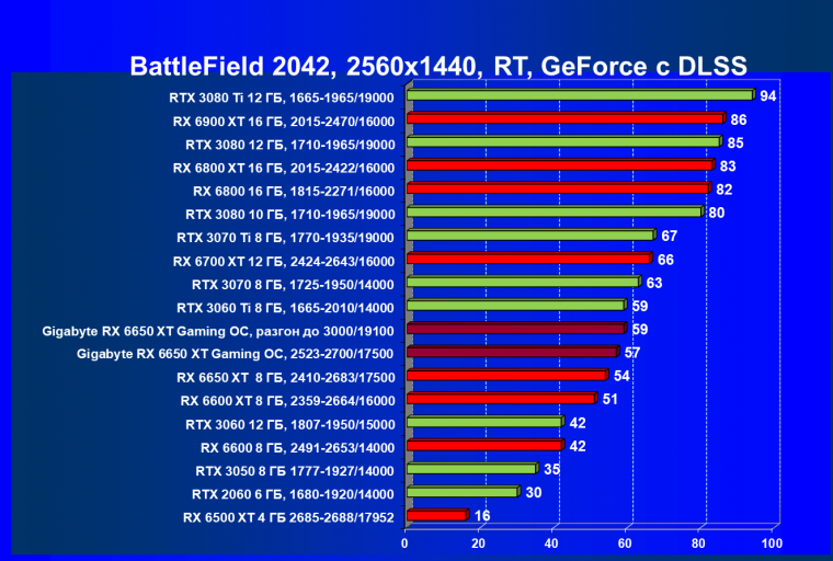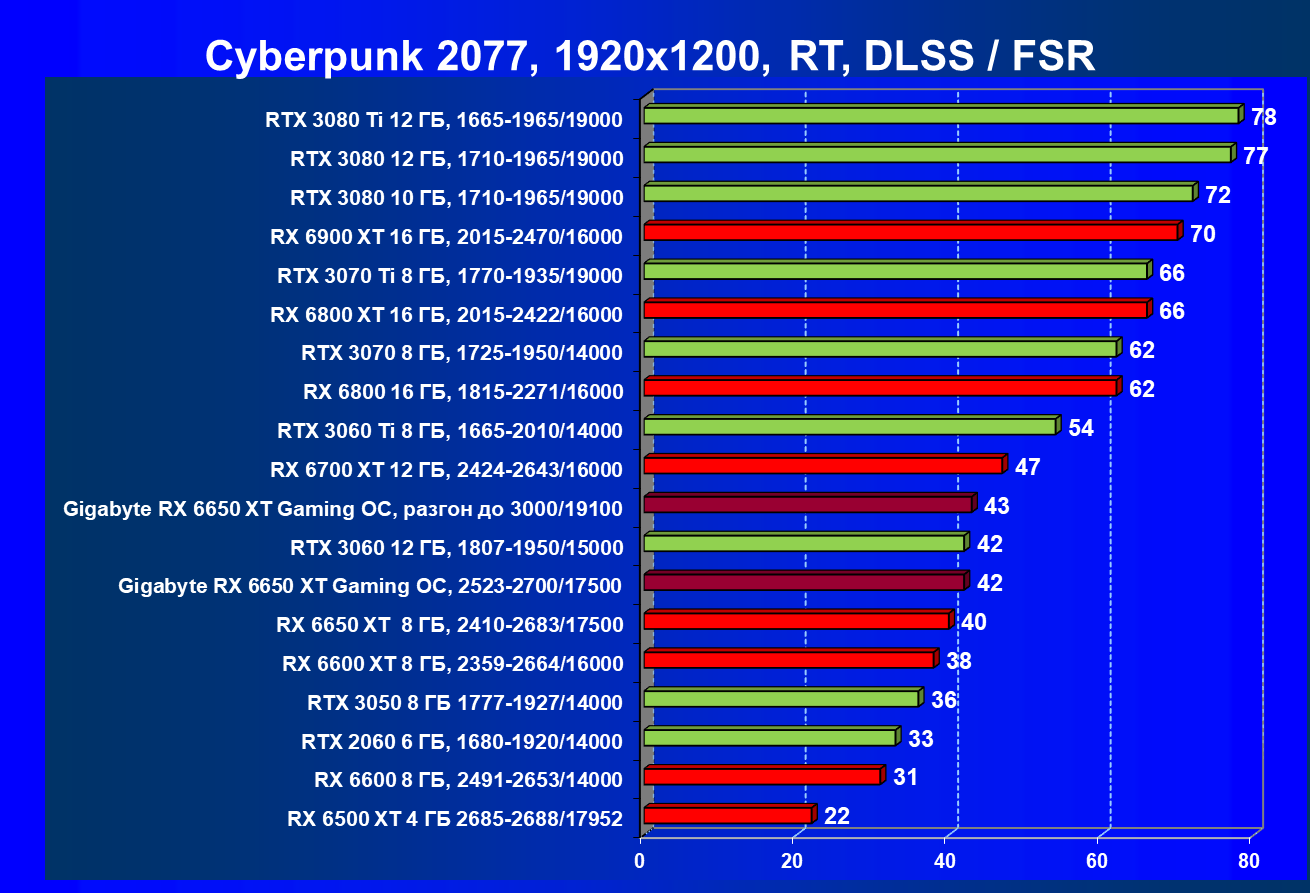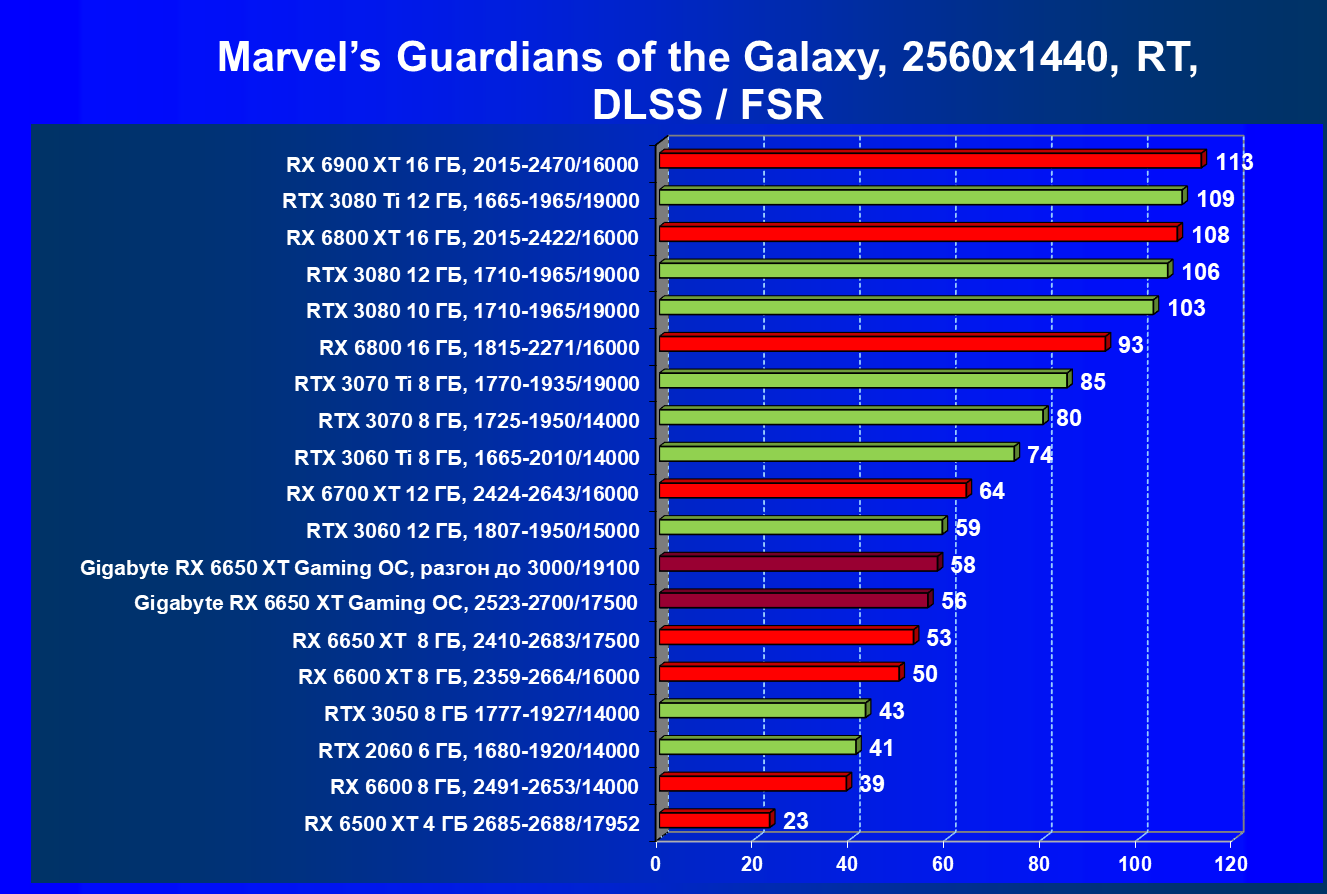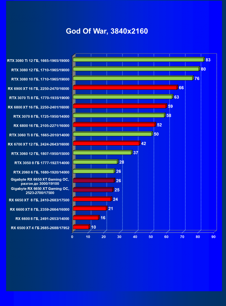 | 11 | Gigabyte RX 6650 XT Gaming OC, разгон до 3000/19100 | 250 | 49 | 51 000 |