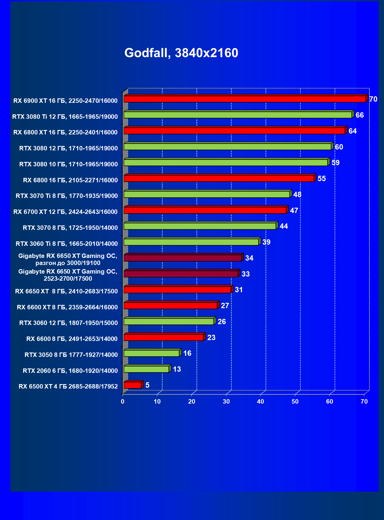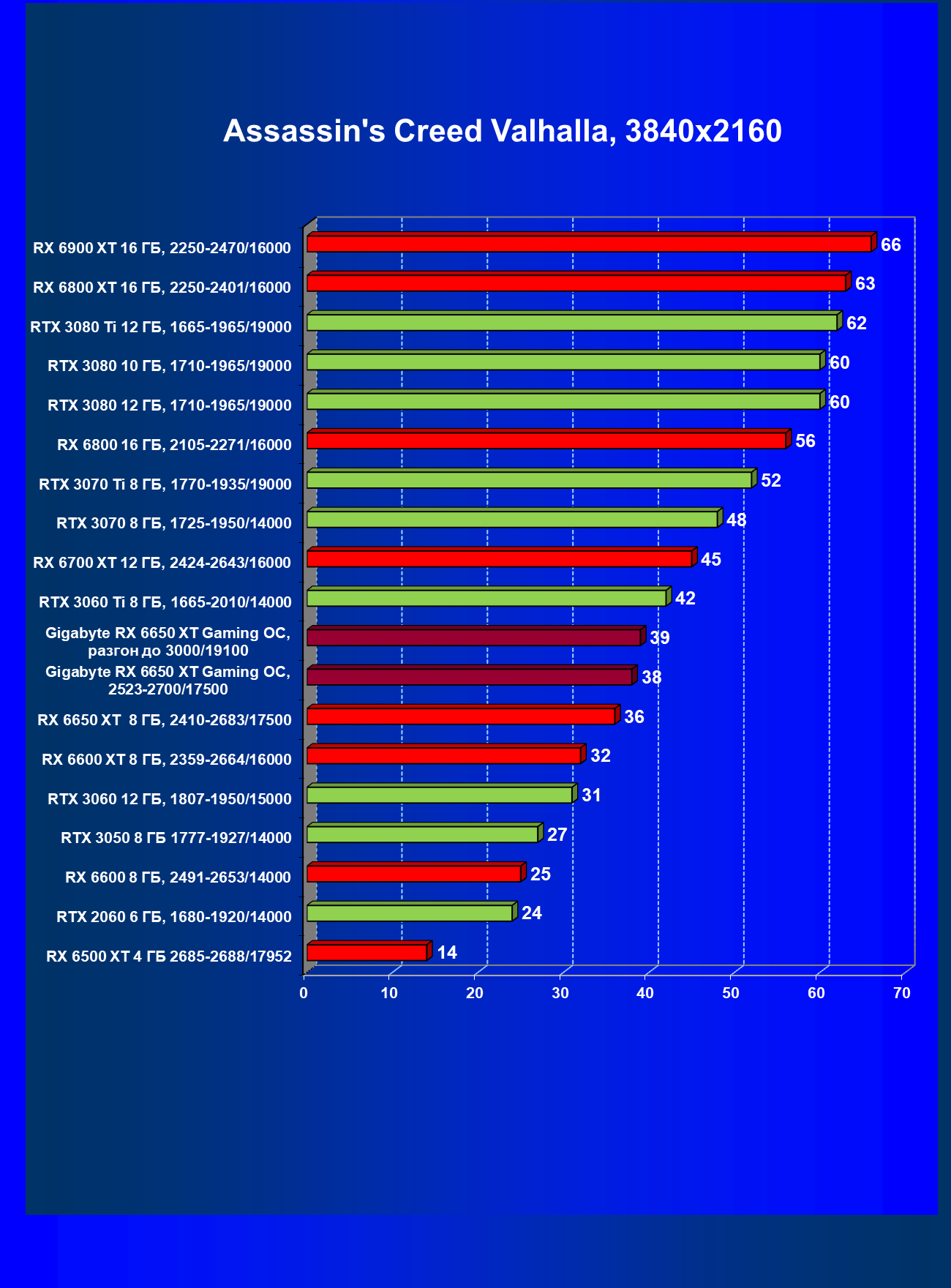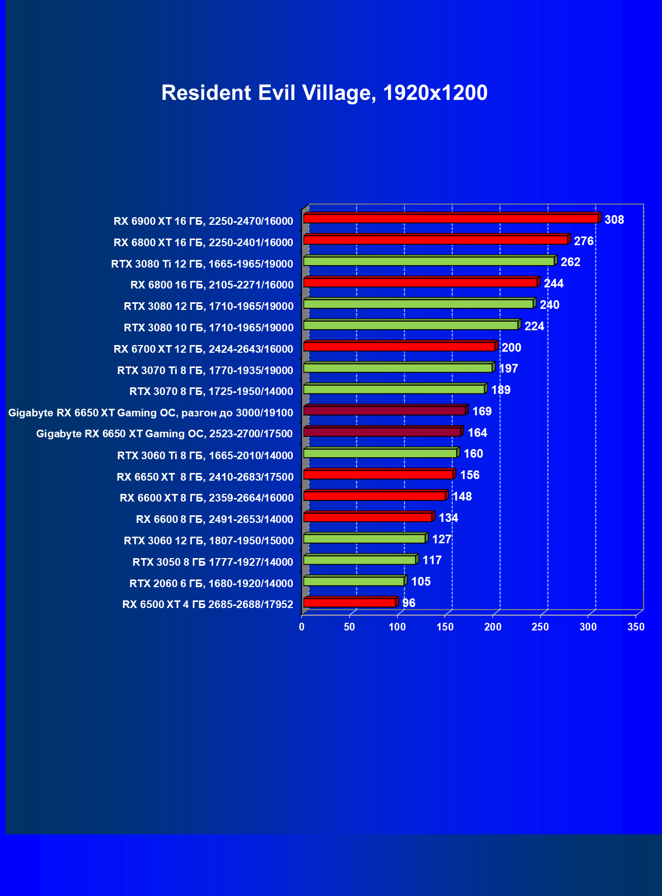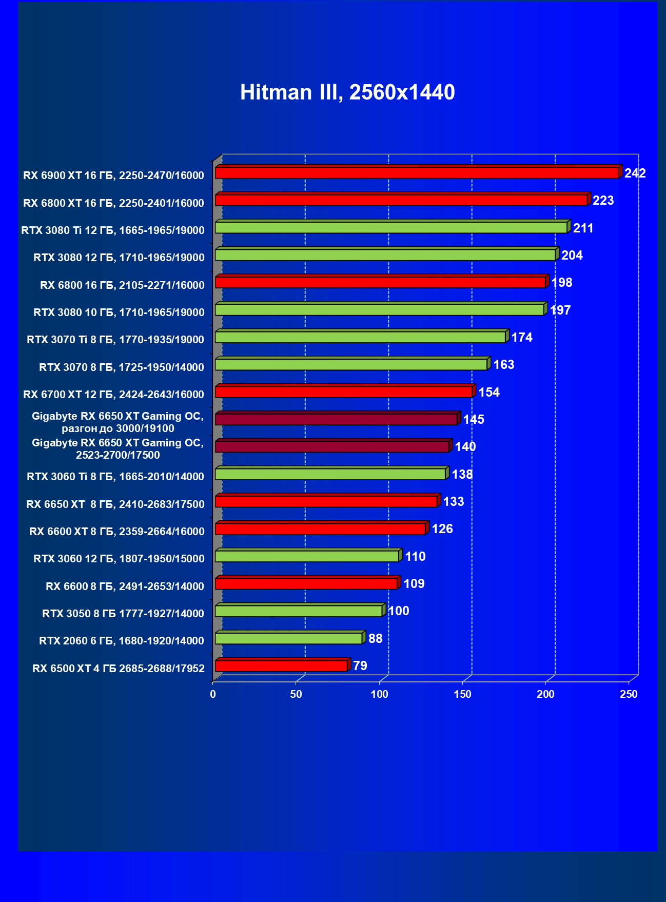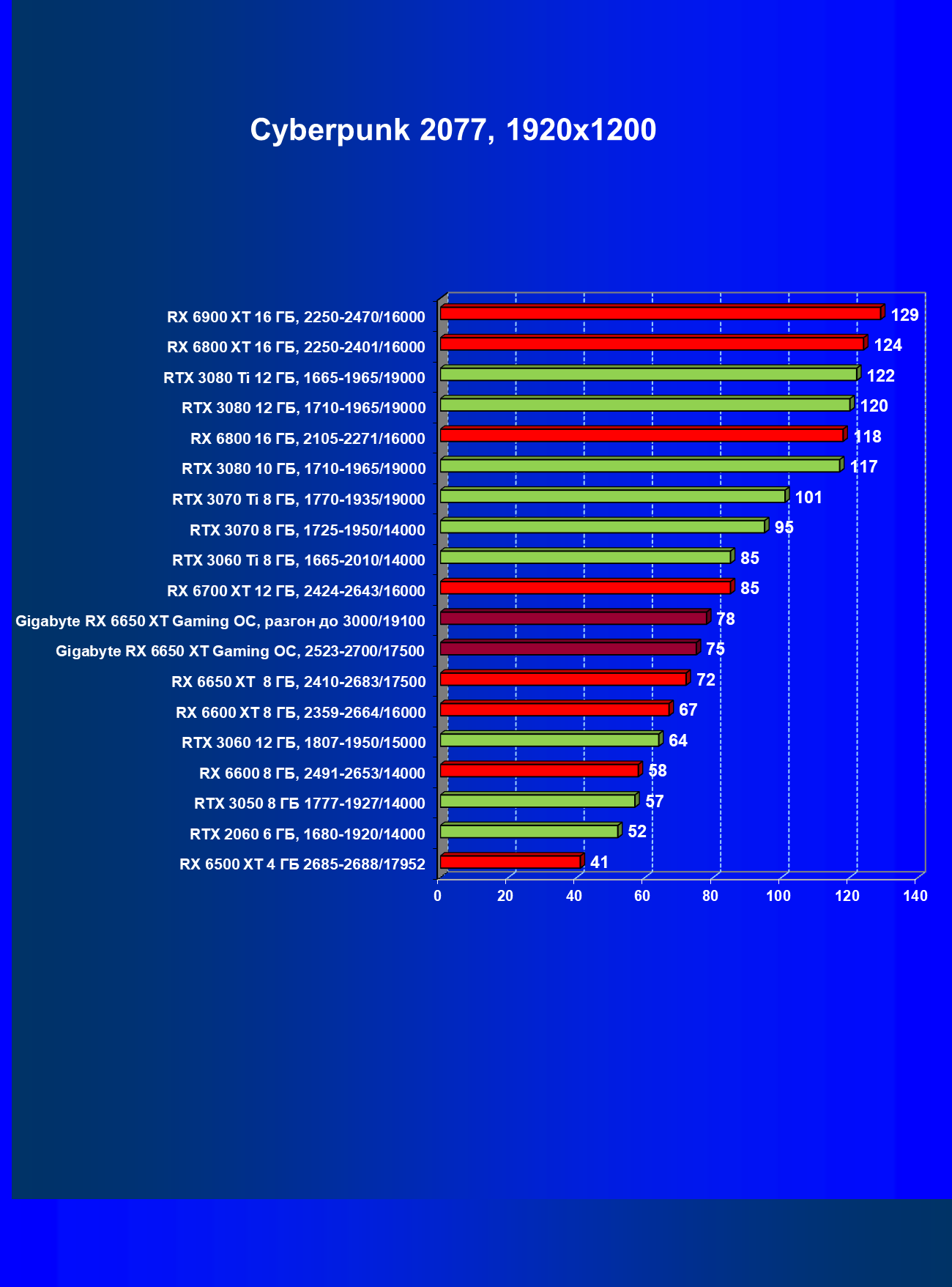 | 11 | Gigabyte RX 6650 XT Gaming OC, разгон до 3000/19100 | 250 | 49 | 51 000 |