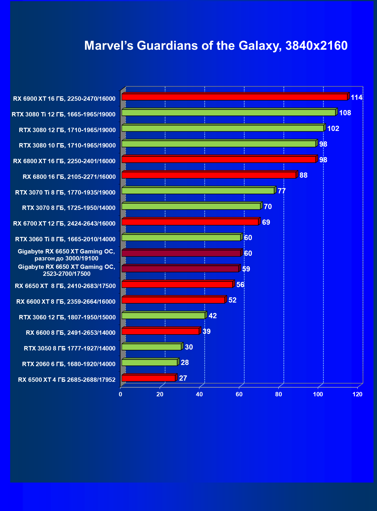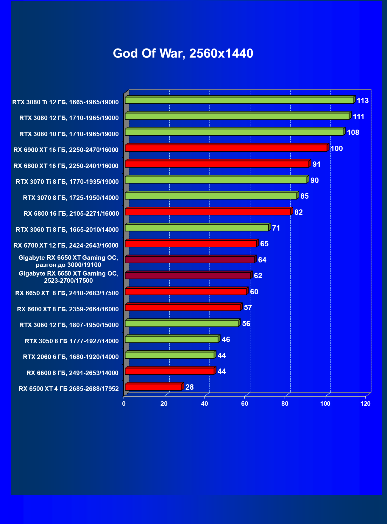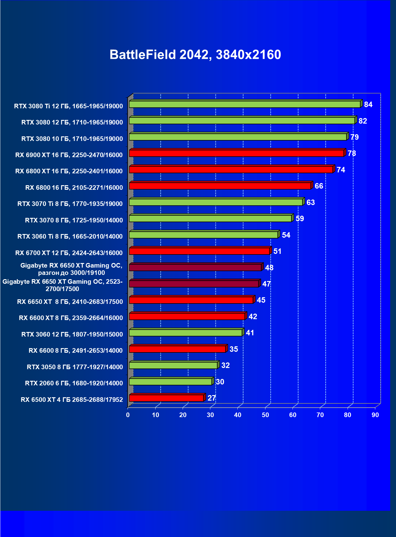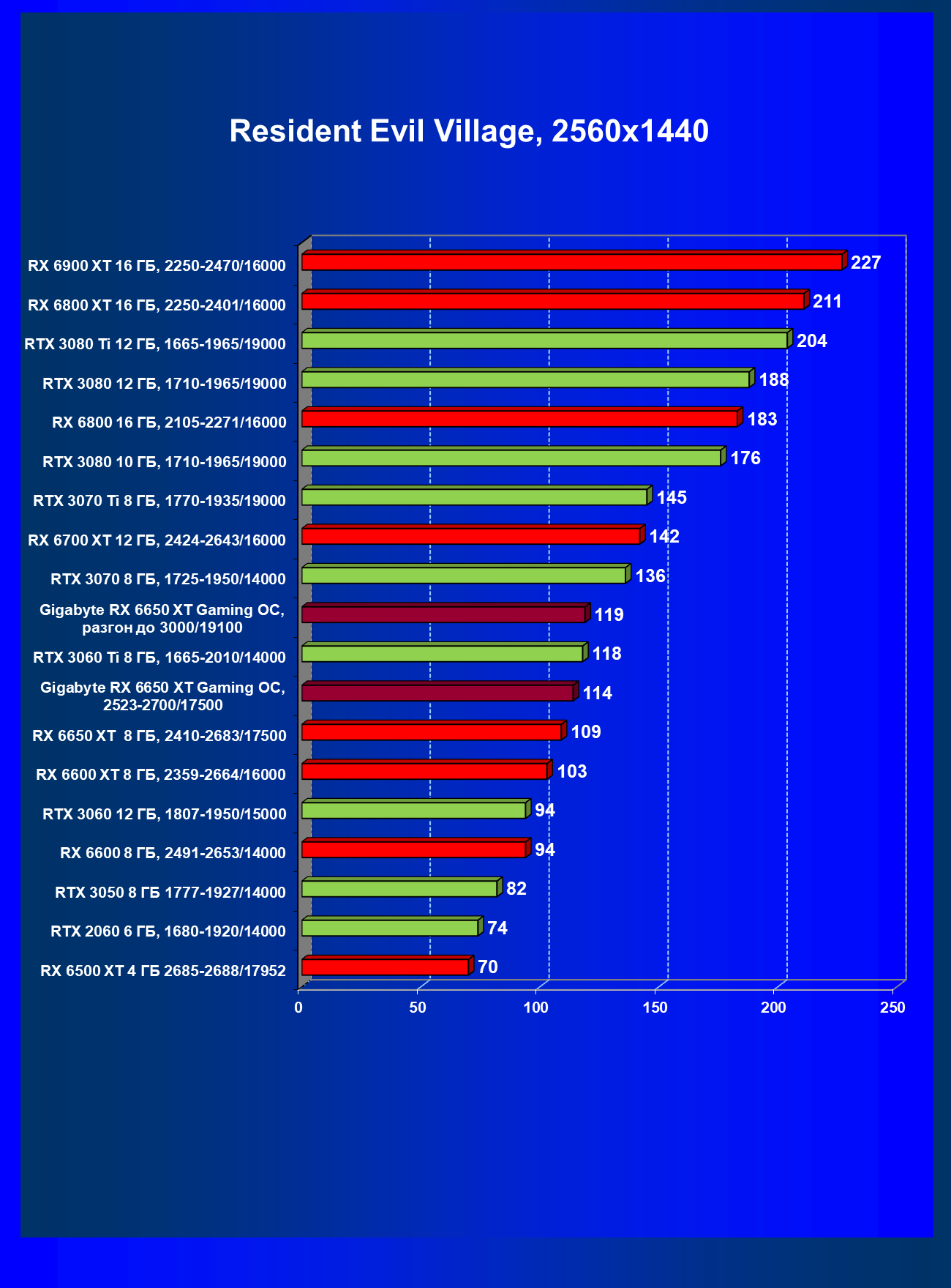 | 11 | Gigabyte RX 6650 XT Gaming OC, разгон до 3000/19100 | 250 | 49 | 51 000 |