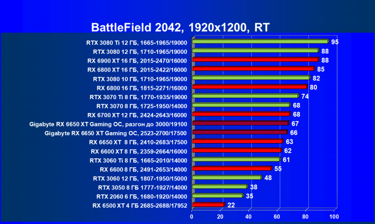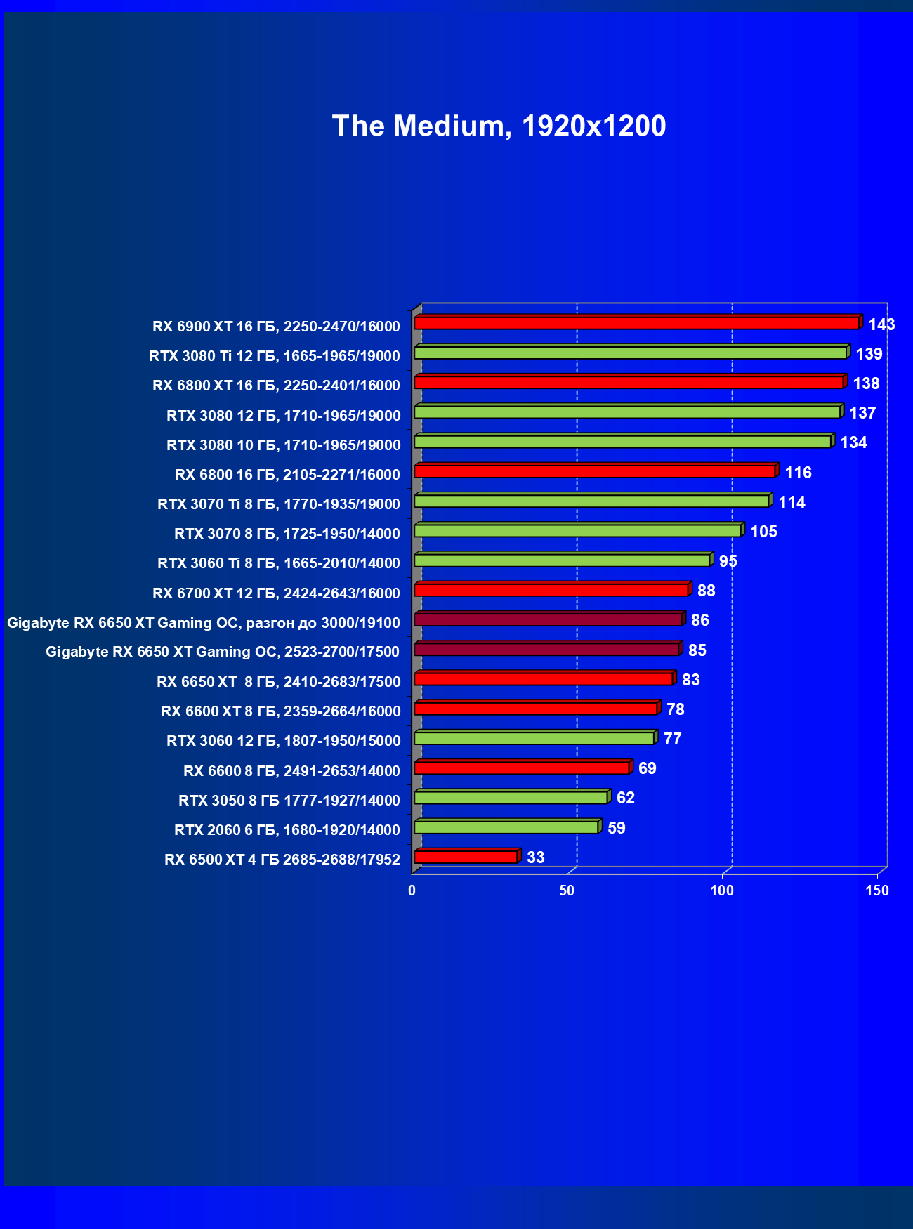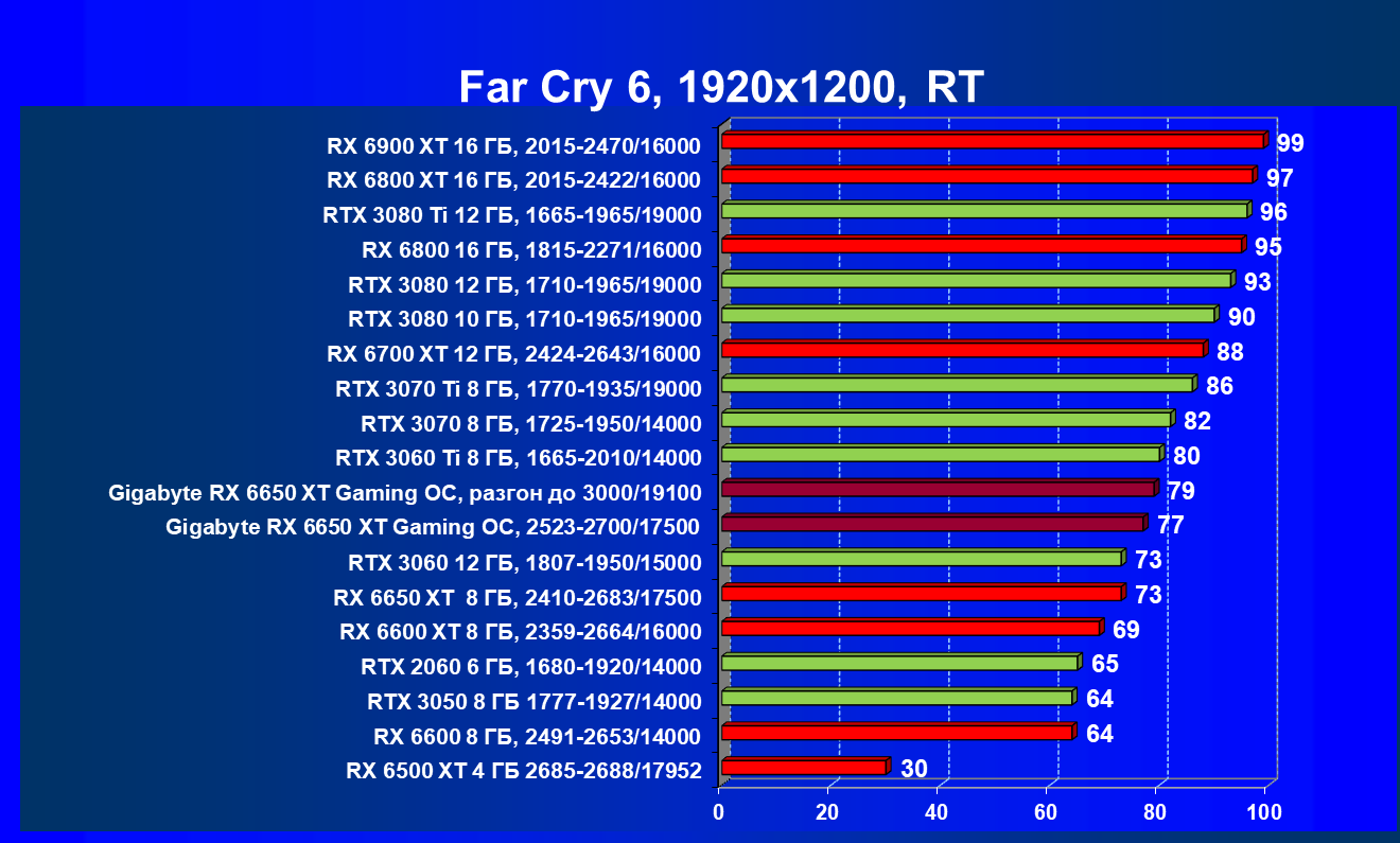 Radeon RX 6650 XT даже при чуть более высокой стоимости, чем у GeForce RTX 3060, поднялся на уровень лидера в своей группе, а карта Gigabyte с разгоном стала абсолютным лидером рейтинга!