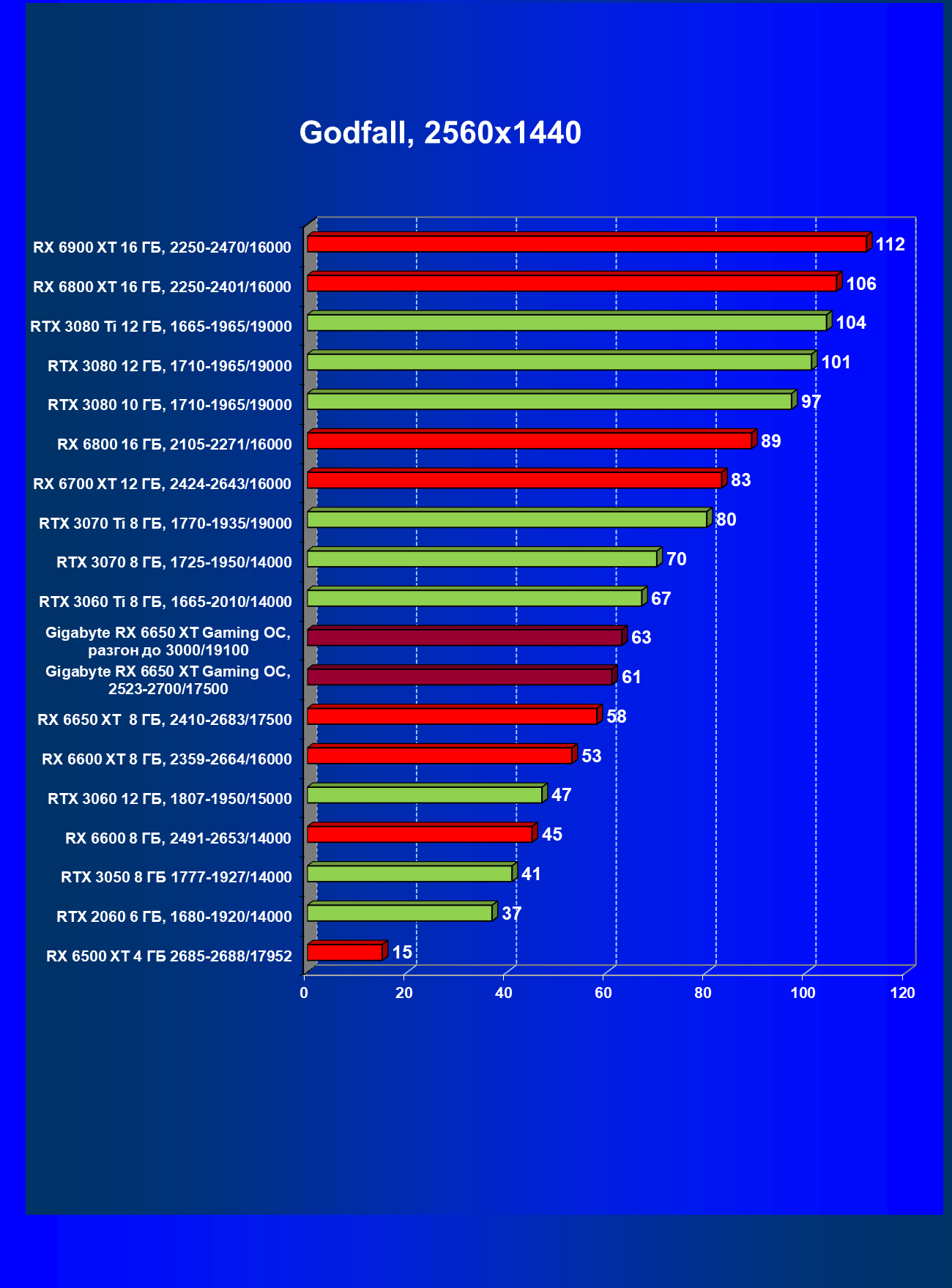 | 01 | Gigabyte RX 6650 XT Gaming OC, разгон до 3000/19100 | 73 | 370 | 51 000 |
