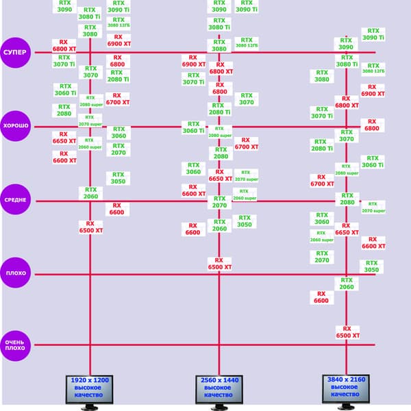 Все регулярно тестируемые нами видеокарты сейчас поддерживают технологию RT, поэтому мы проводим тесты не только с использованием обычных методов растеризации, но и с включением RT и/или DLSS/FSR.