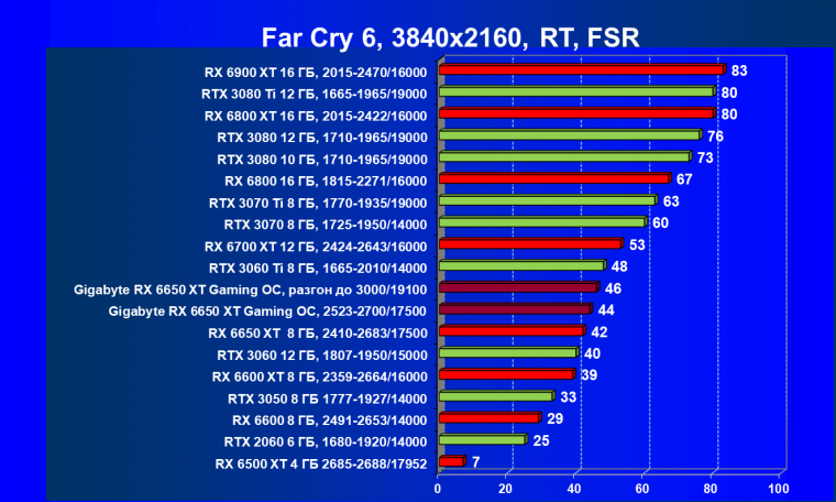 | 07 | RX 6650 XT 8 ГБ, 2523—2683/17500 | 46 | 230 | 50 000 |