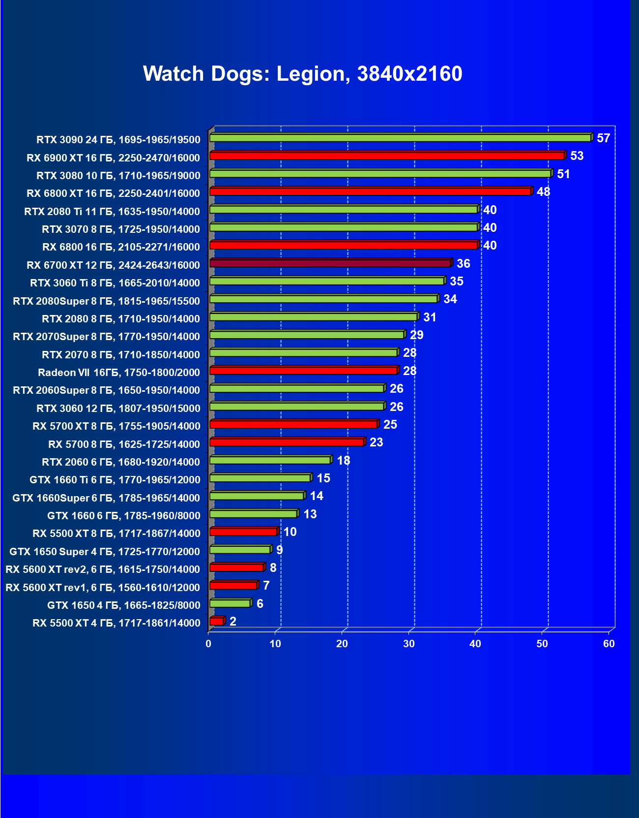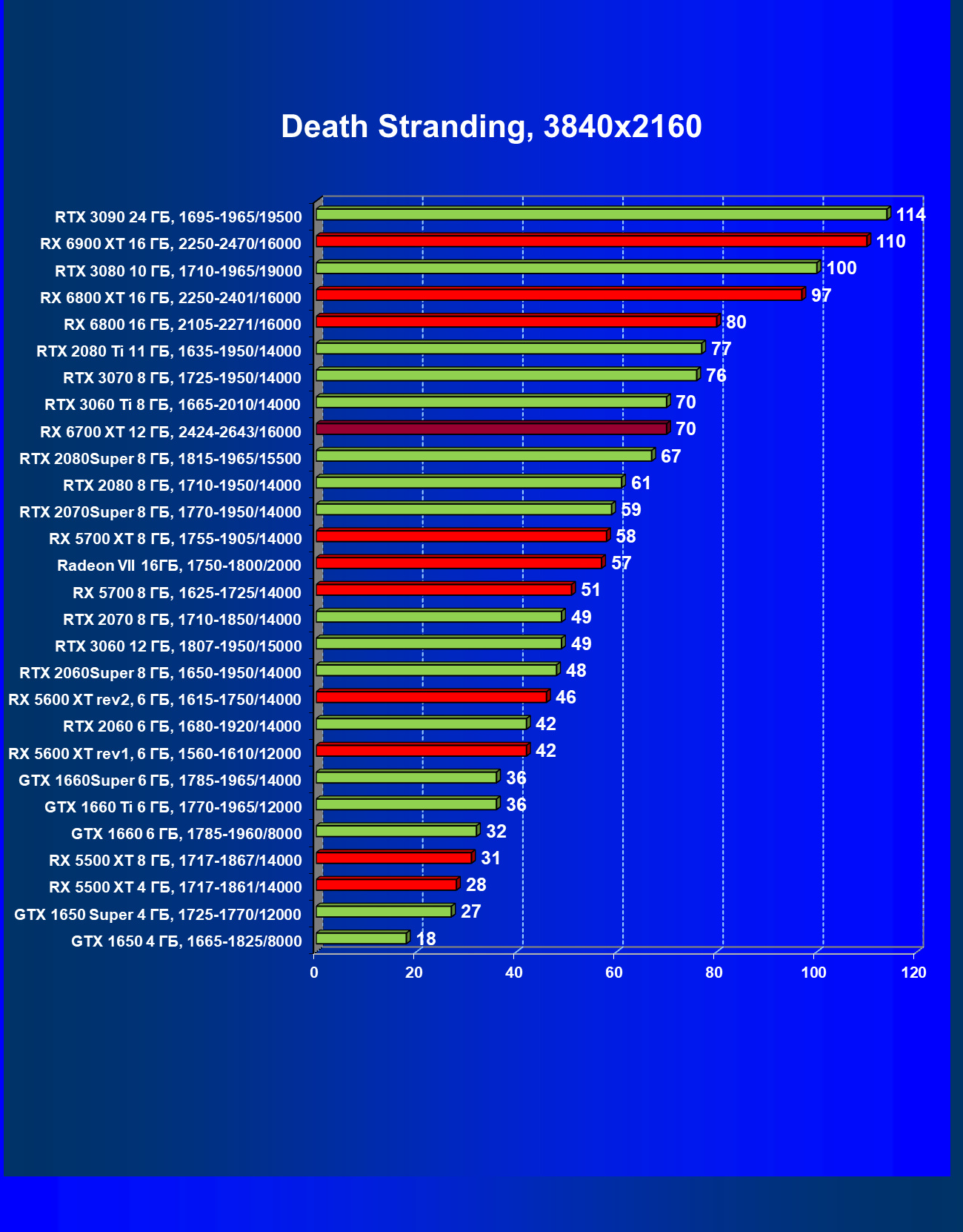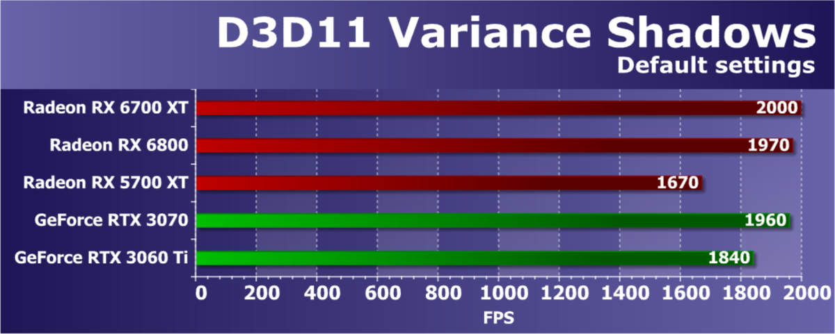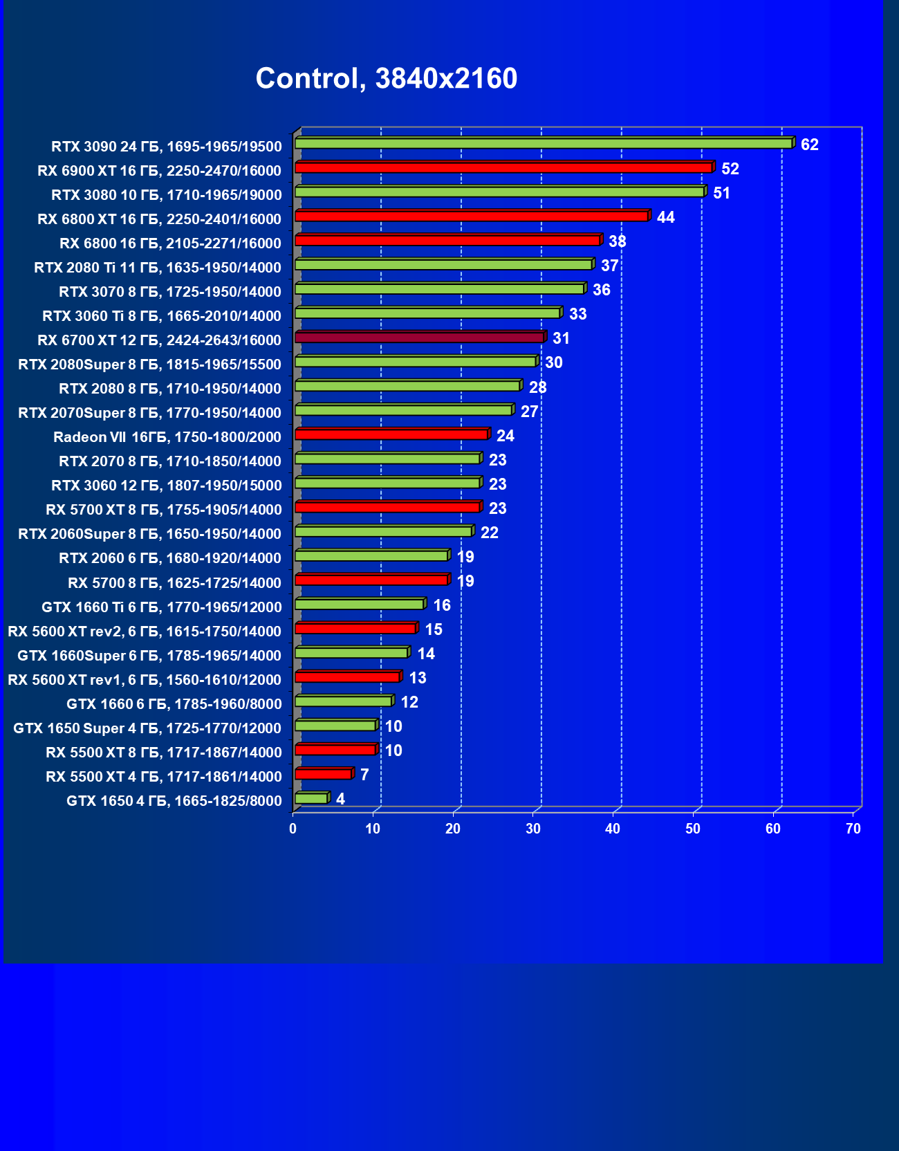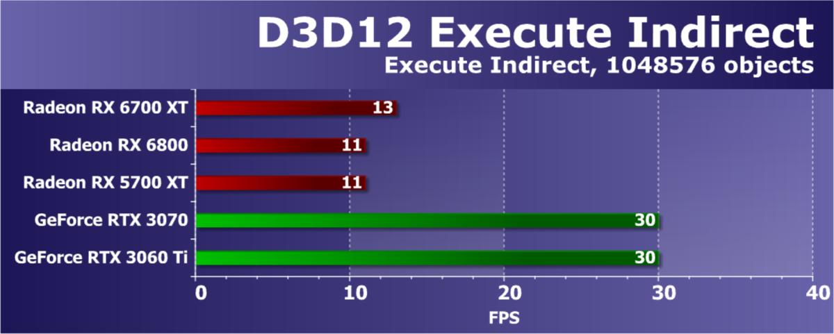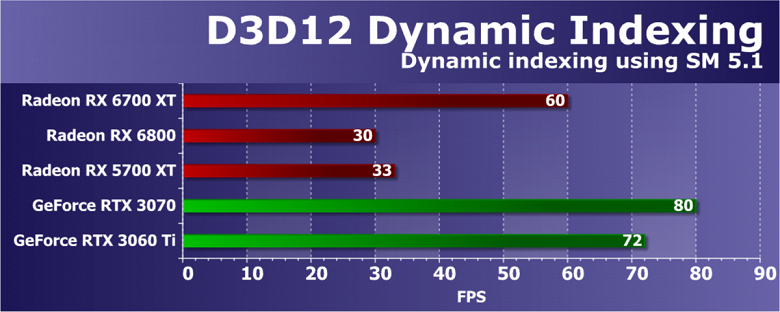 В целом Radeon RX 6700 XT оказался где-то между GeForce RTX 3070 и GeForce RTX 3060 Ti: точнее говоря, в ряде игр и разрешений он поднимался выше GeForce RTX 3070, но иногда падал даже ниже GeForce RTX 3060 Ti. Сейчас в игровых тестах соотношение сил иногда оказывается существенно различным в зависимости от поддержки AMD и/или Nvidia разработчиков этой игры.