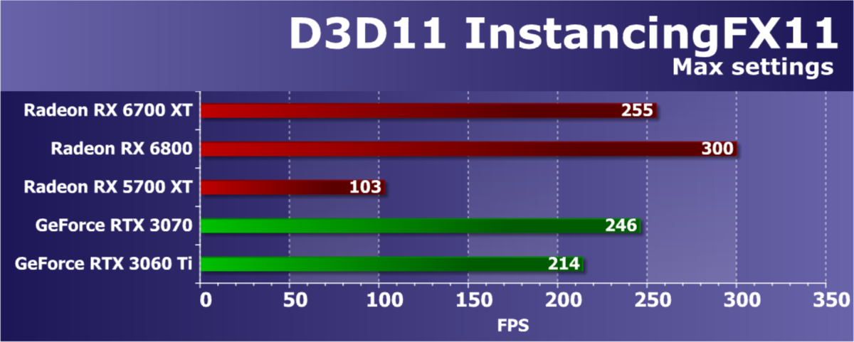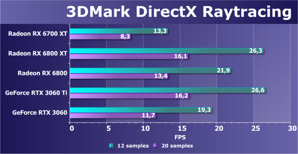 Из более-менее новых бенчмарков мы начали использовать несколько примеров, входящих в DirectX SDK и пакет SDK компании AMD (скомпилированные примеры применения D3D11 и D3D12), а также несколько разнообразных тестов для измерения производительности трассировки лучей, программной и аппаратной. В качестве полусинтетических тестов у нас также используется набор подтестов из довольно популярного пакета 3DMark: Time Spy, Port Royal, DX Raytracing и др.