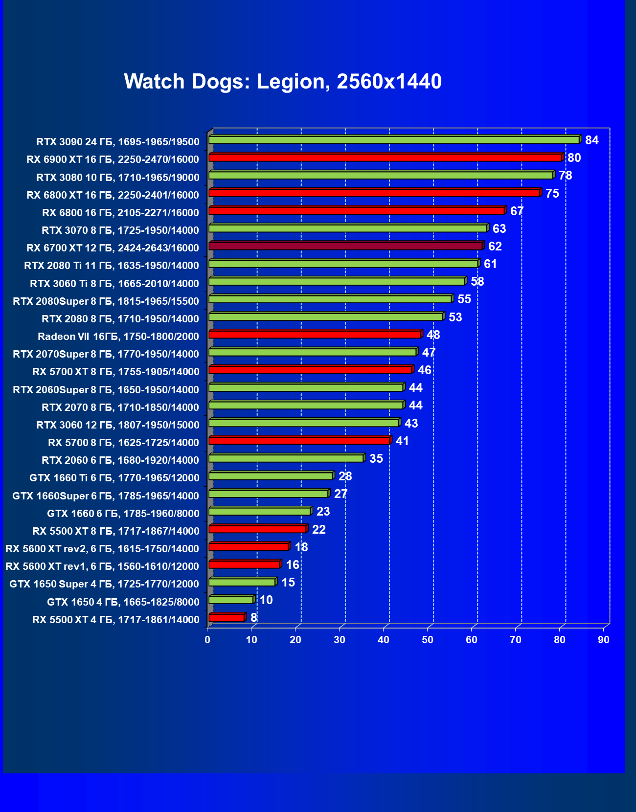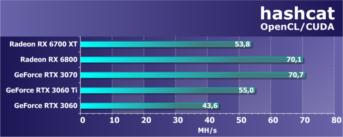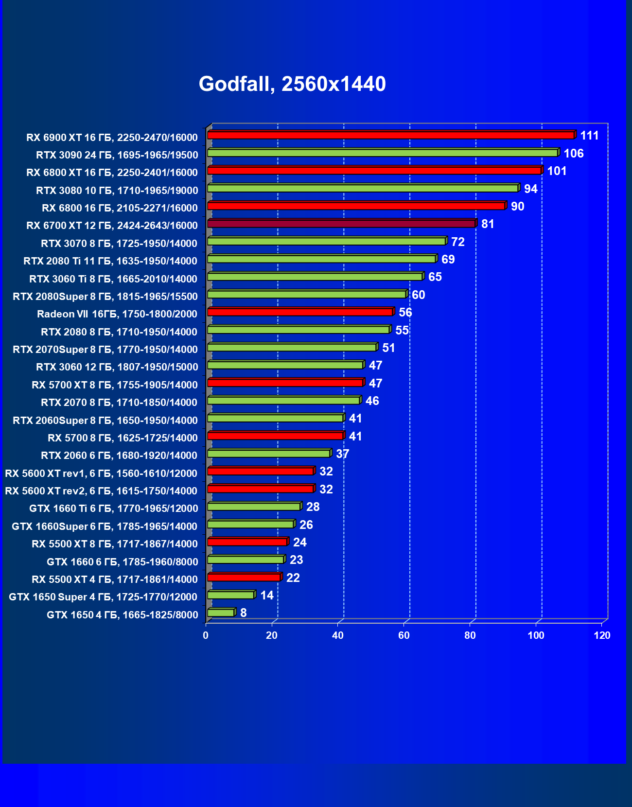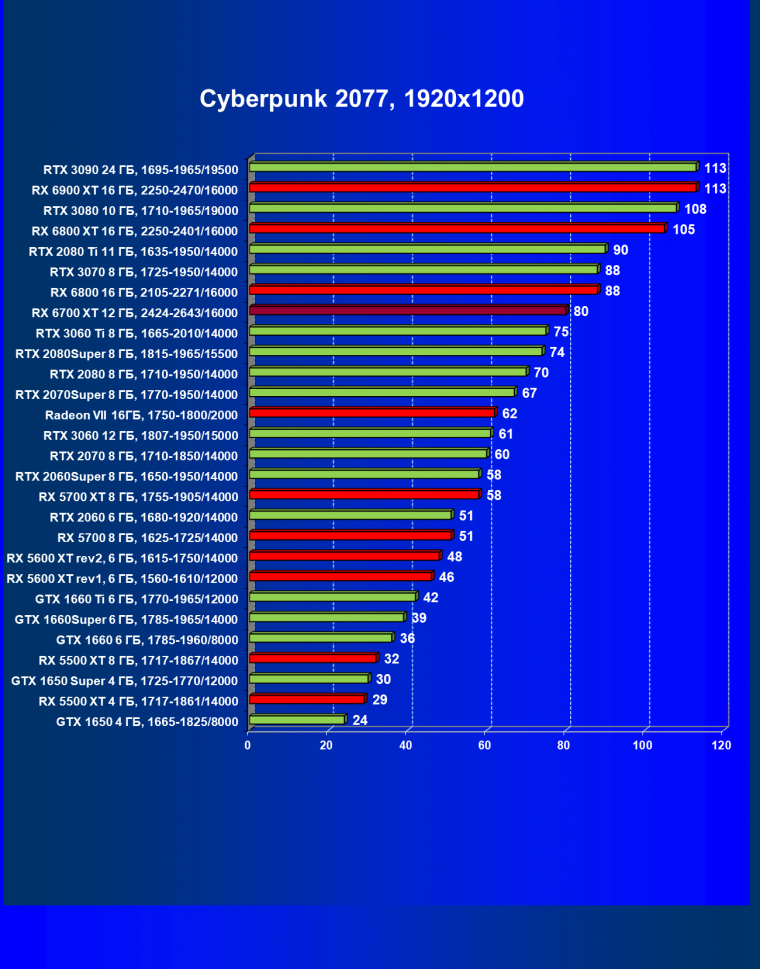 | 08 | RX 6700 XT 12 ГБ, 2424—2643/16000 | 610 | 76 | 80 000 |
