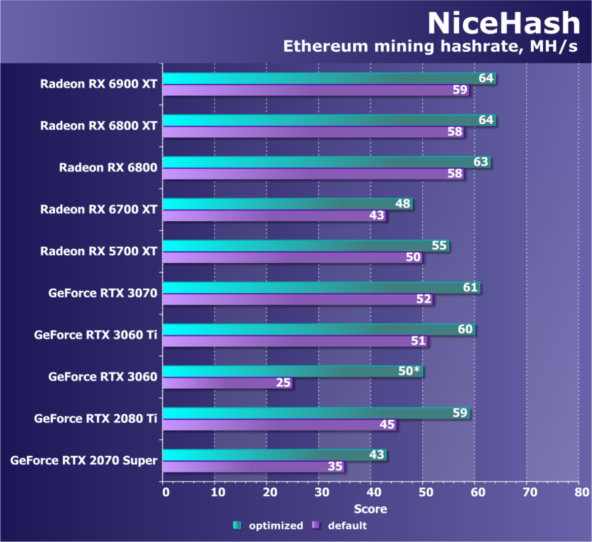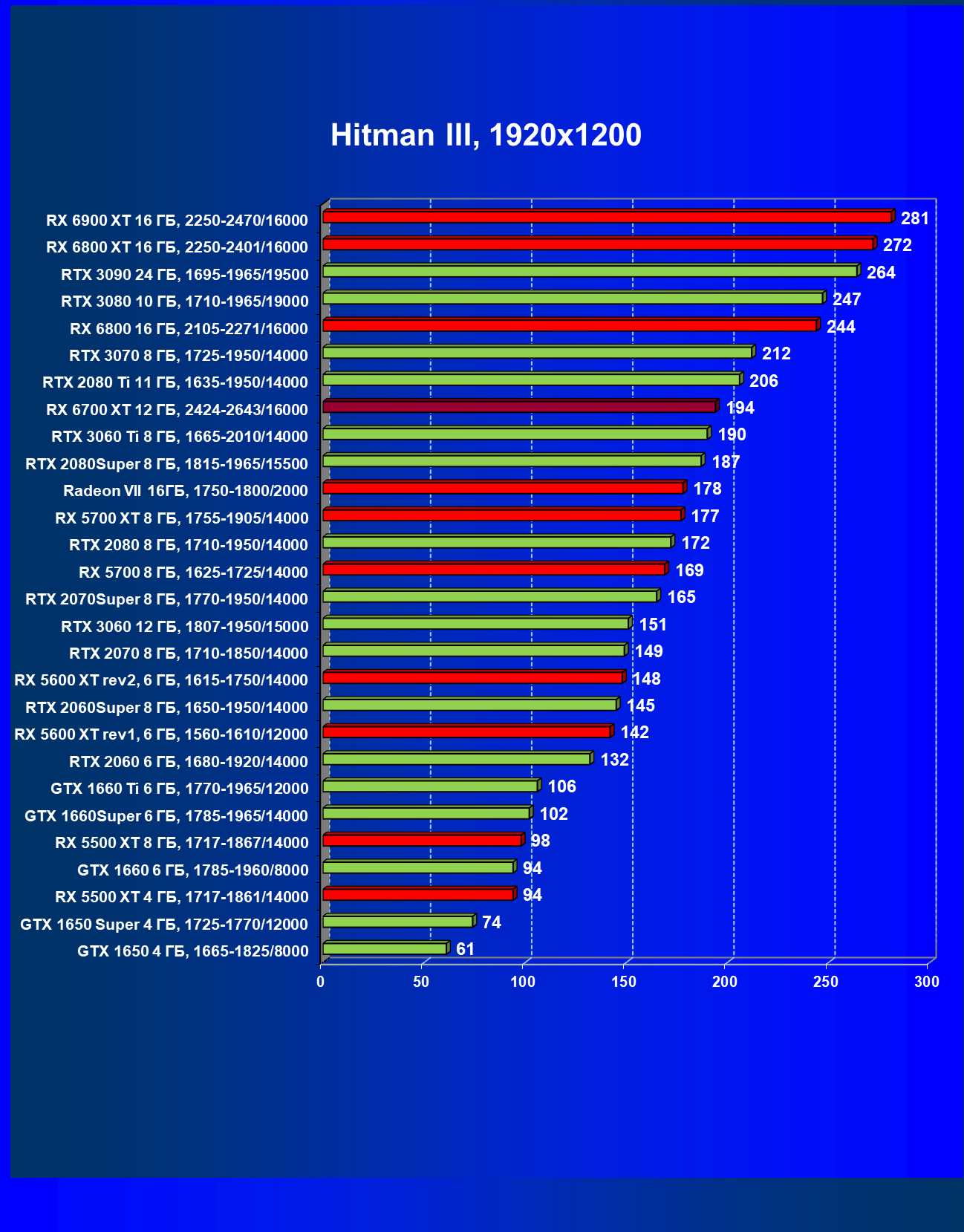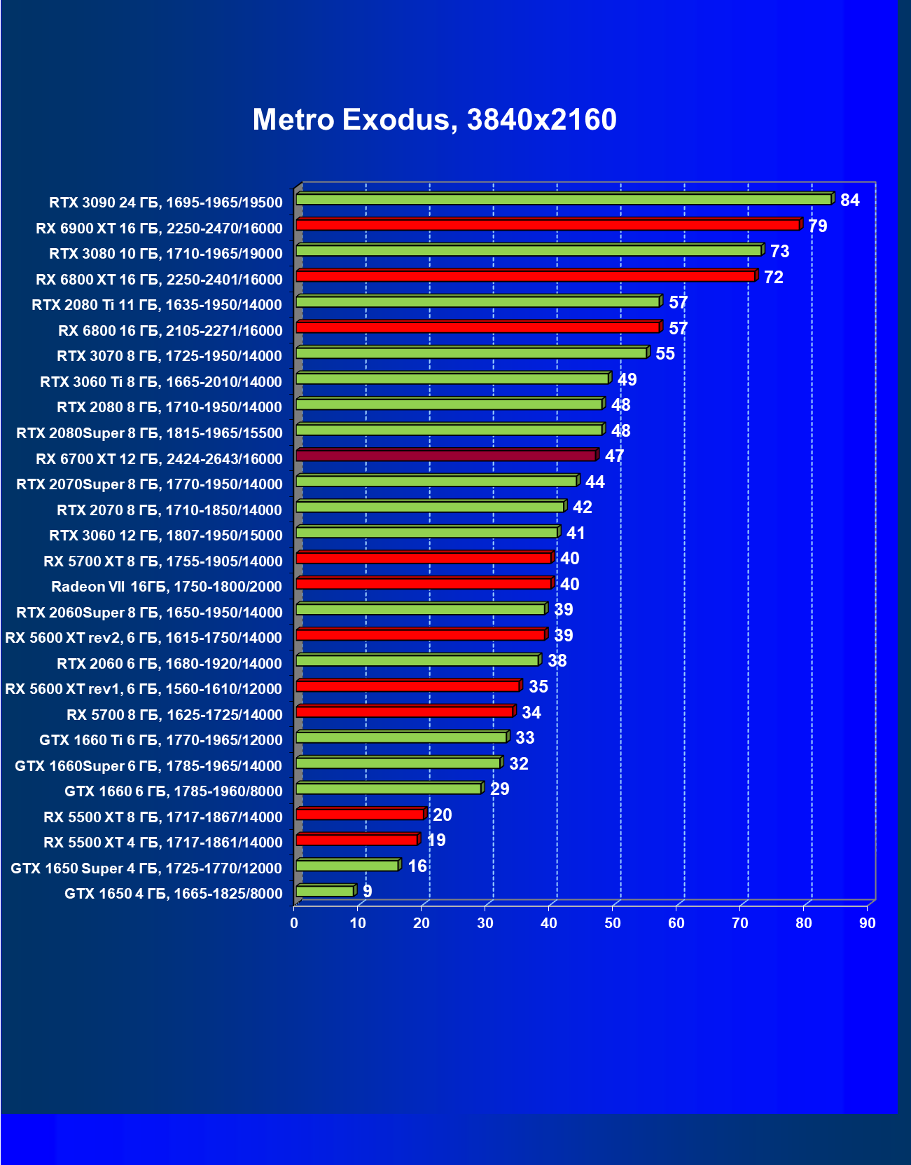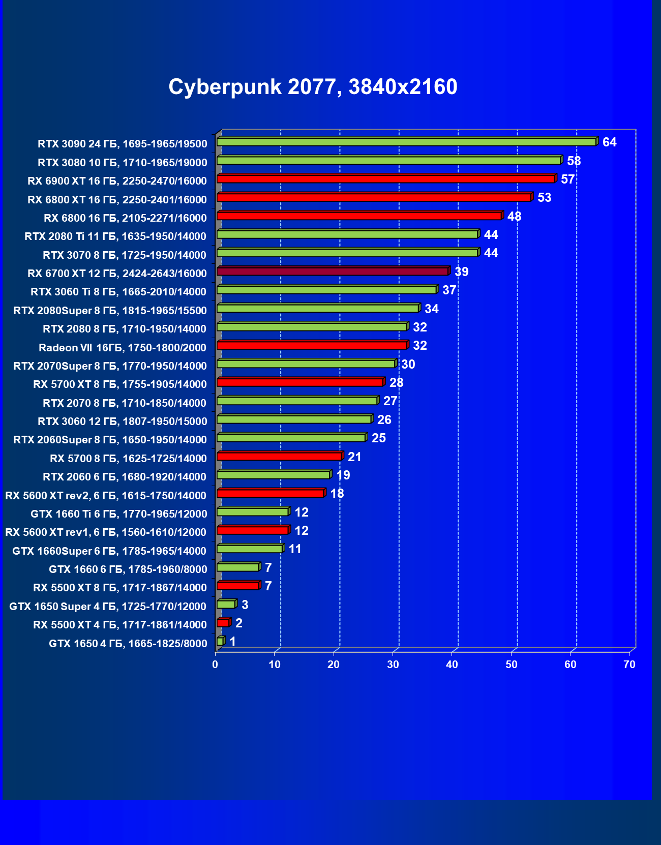 | 08 | RX 6700 XT 12 ГБ, 2424—2643/16000 | 610 | 76 | 80 000 |