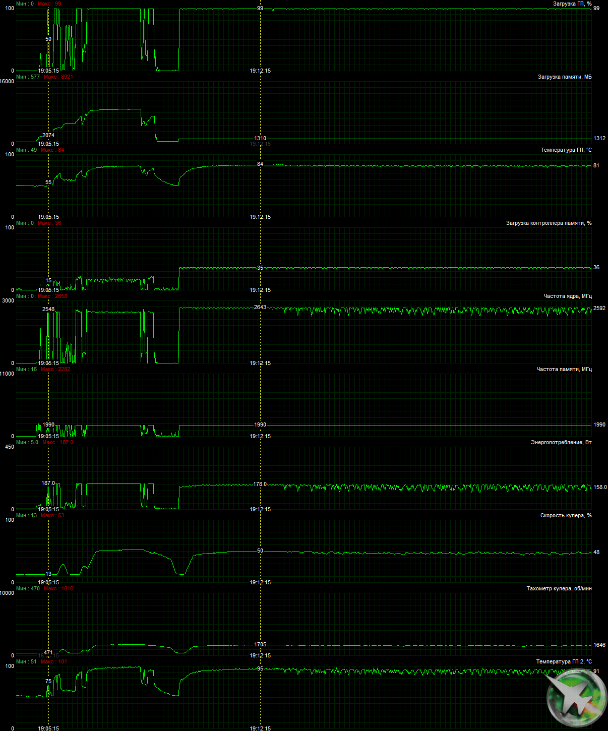 | 08 | RTX 2080 8 ГБ, 1710—1950/14000 | 16 | 151 | 93 000 |