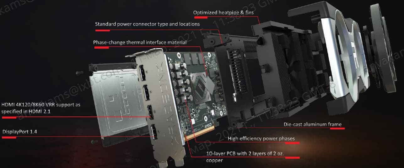 Остальные подробности обо всех изменениях и нововведениях нового графического процессора читайте в большом обзоре Radeon RX 6800 XT, там написано и про новую кэш-память Infinity Cache, и про улучшенный доступ к видеопамяти Smart Access Memory, и про изменения в поддержке видеокодеков и стандартов портов ввода-вывода. Младшая модель архитектуры RDNA 2 ничем не отличается от старших GPU по функциональности, хотя чипы и разные, но умеют делать они все одинаково.
