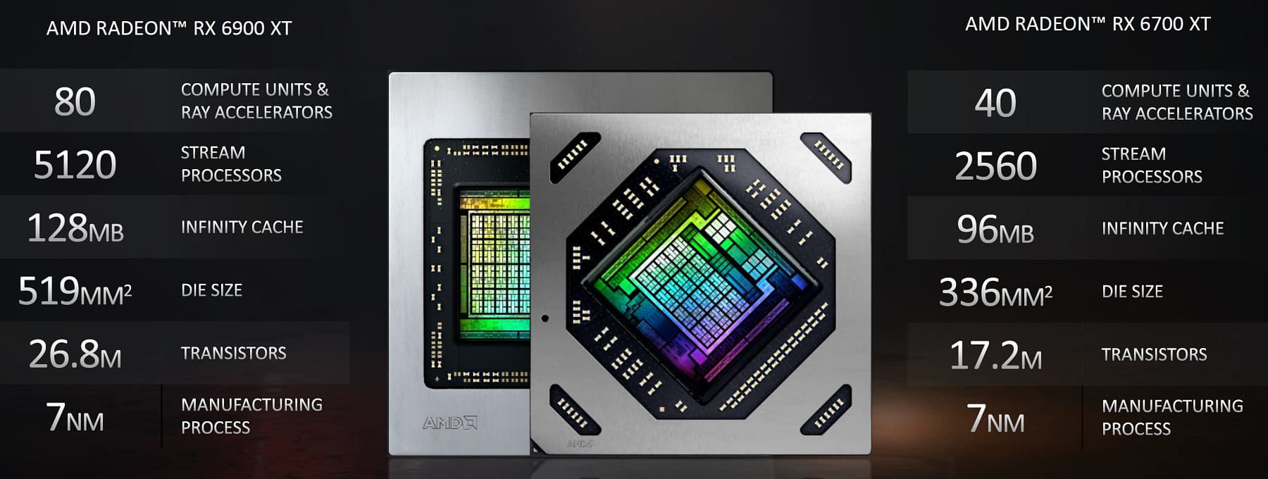 | Количество транзисторов | 17,2 млрд (у Navi 21 — 26,8 млрд) |