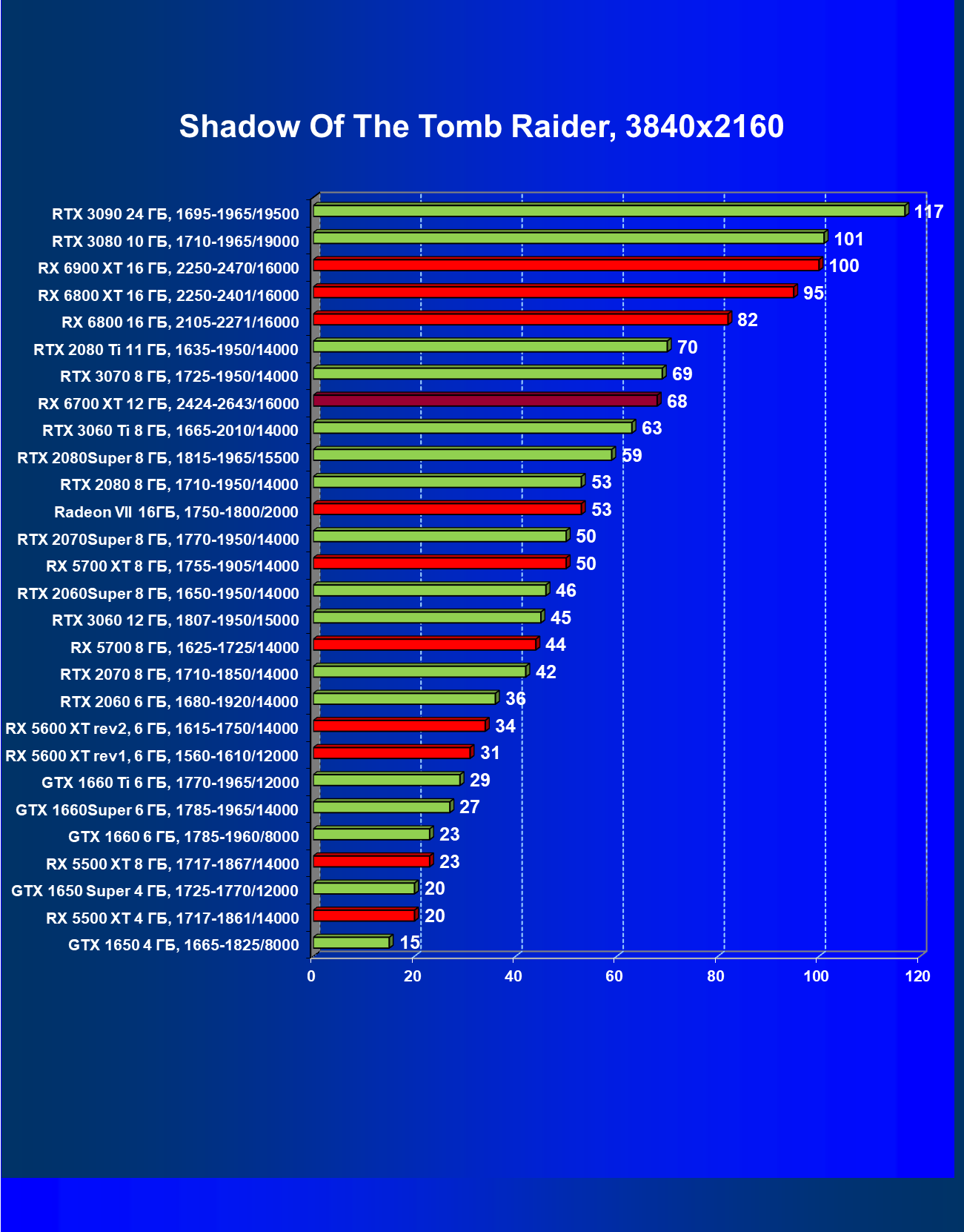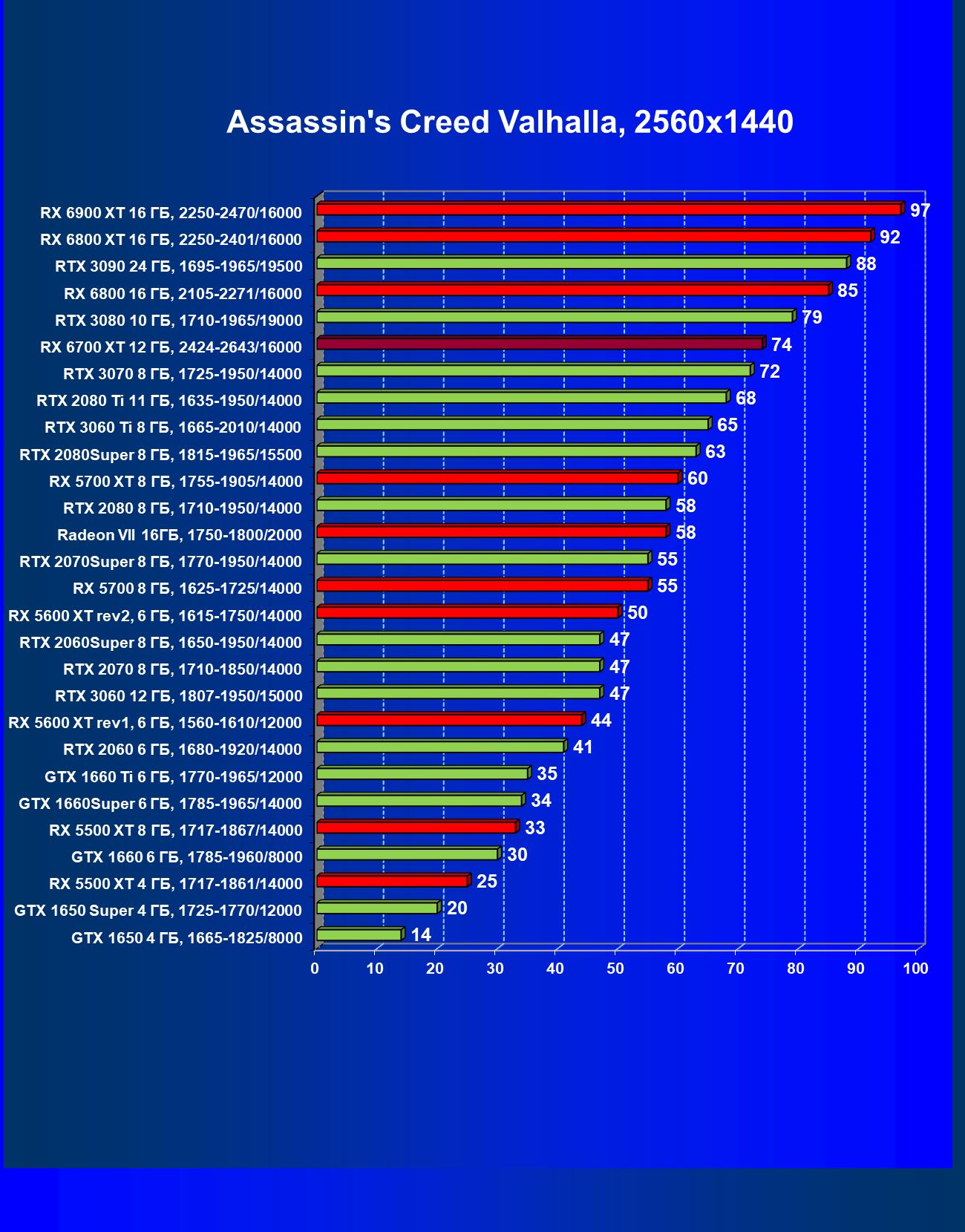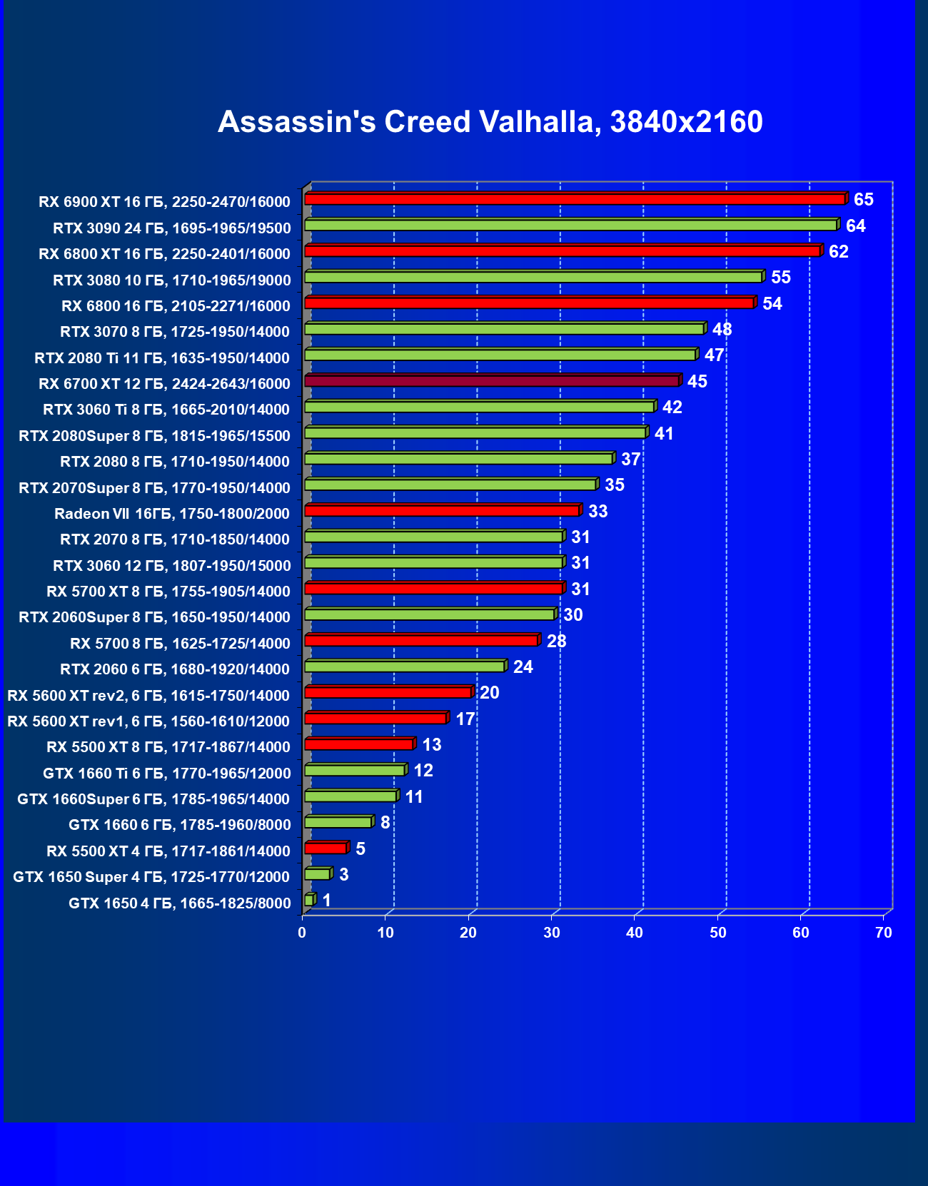 | 01 | RX 6700 XT 12 ГБ, 2424—2643/16000 | 68 | 546 | 80 000 |