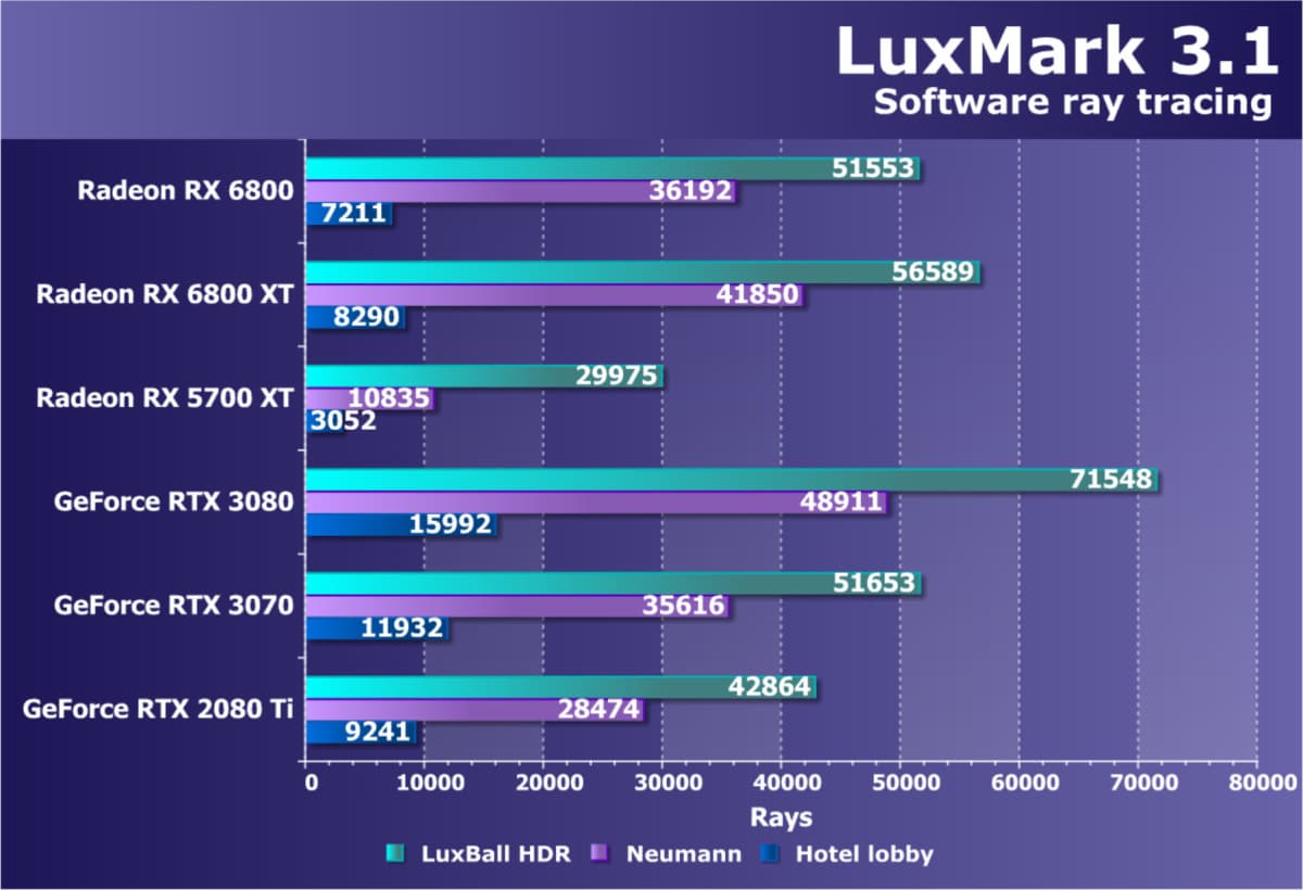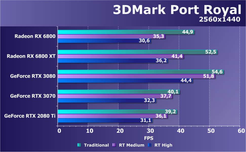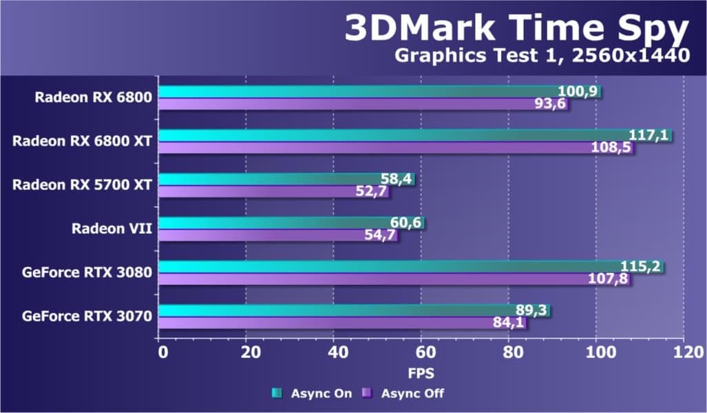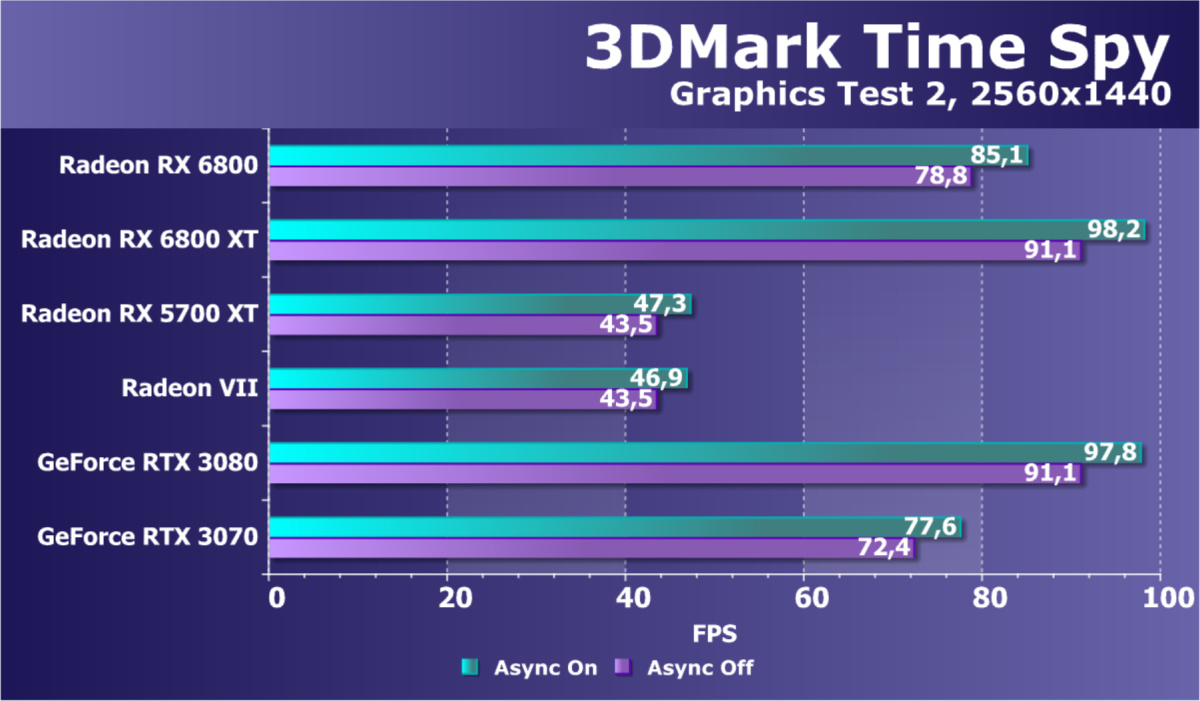 Если взять чистую производительность в играх без использования трассировки лучей и иных «умных» проприетарных технологий, то новый Radeon RX 6800 является лидером в своей группе, он чуть-чуть опережает своего главного конкурента GeForce RTX 3070.