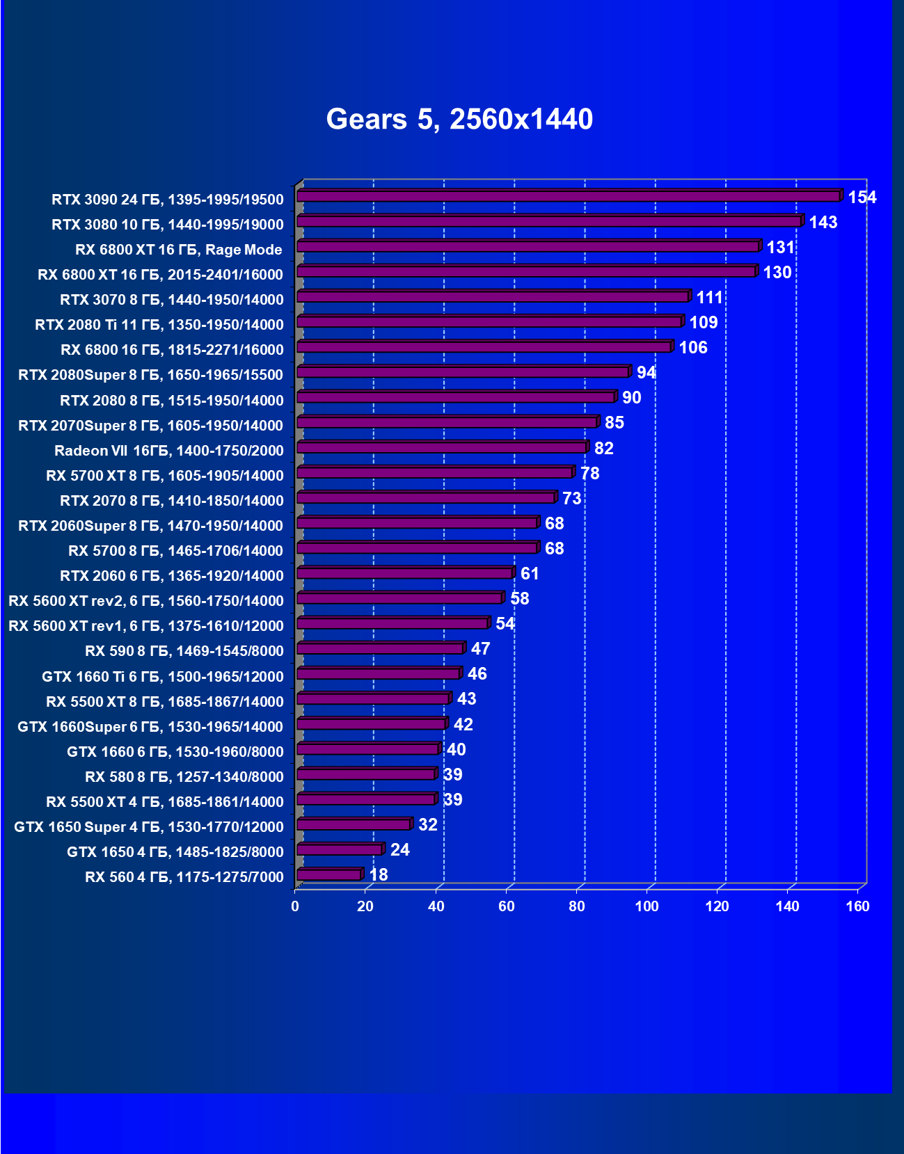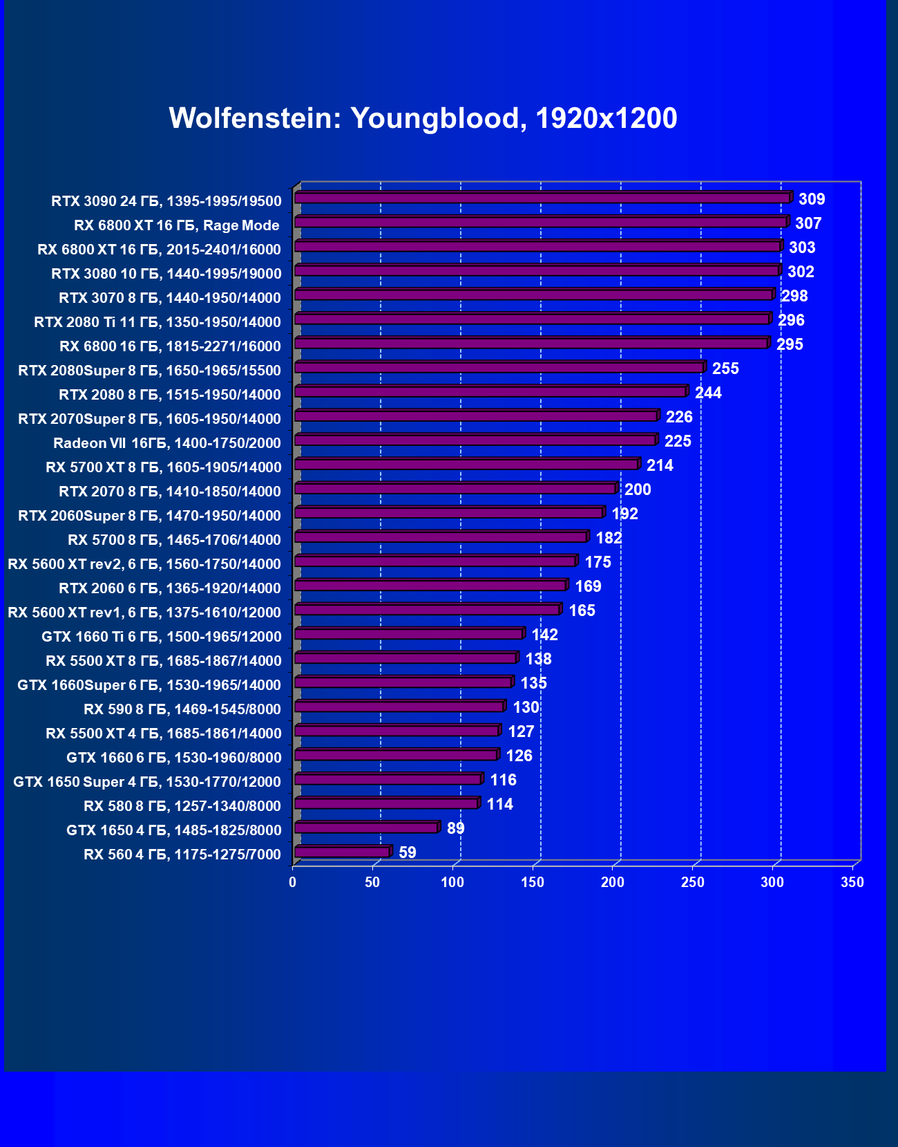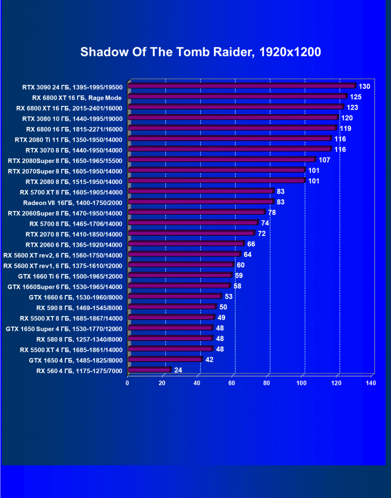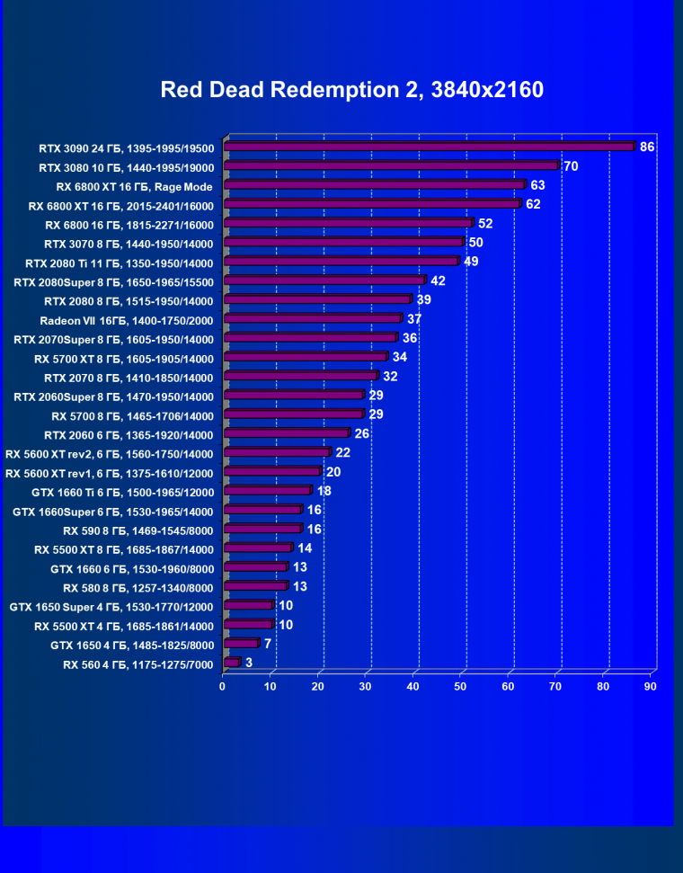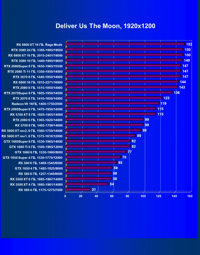 | 13 | RX 6800 16 ГБ, 1815—2271/16000 | 31 | 191 | 62 000 |