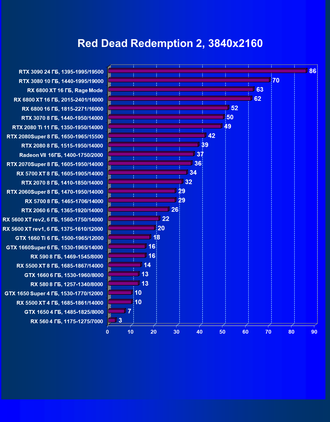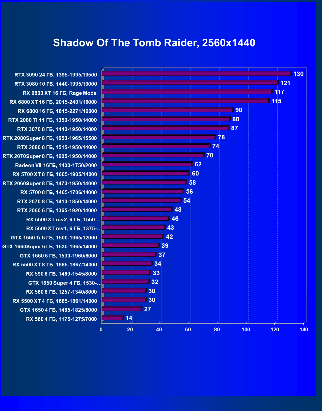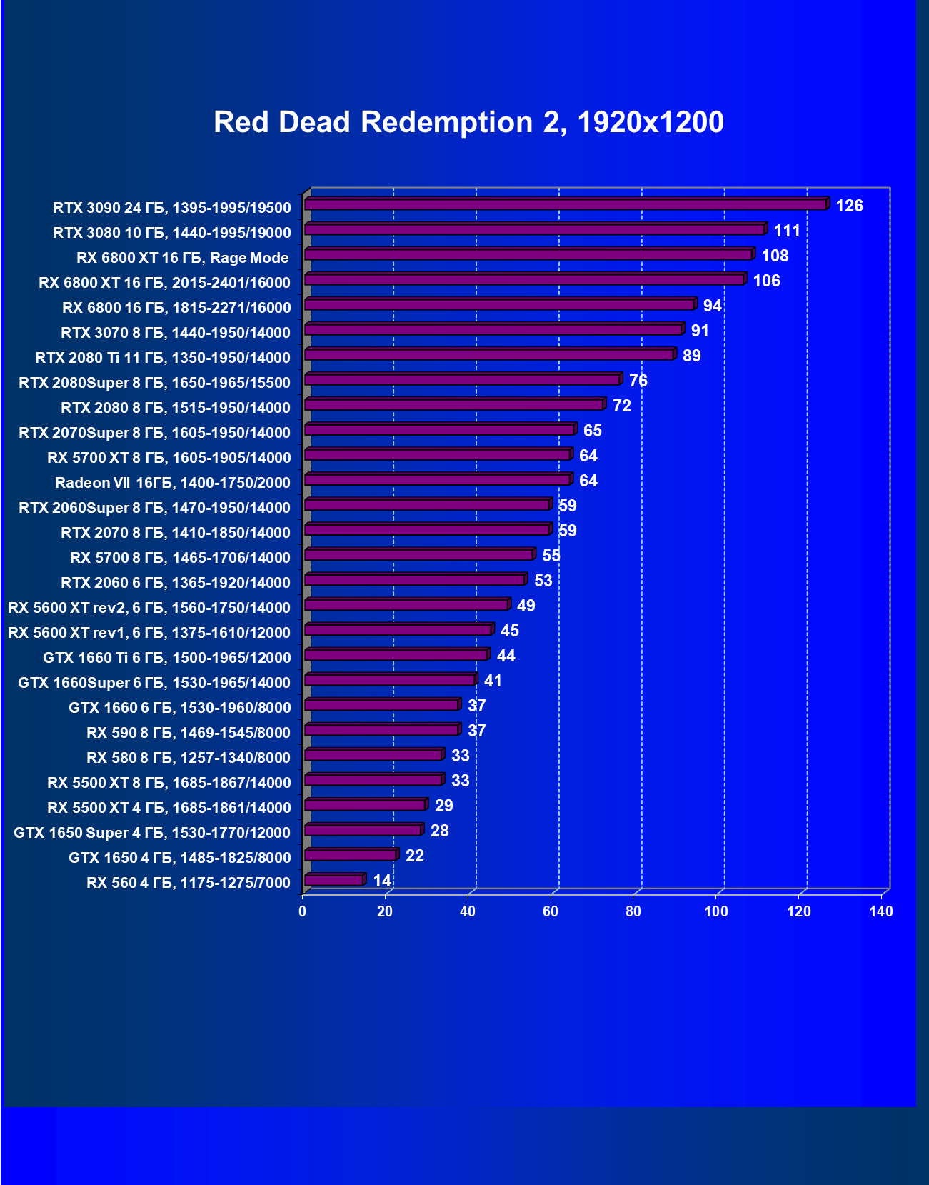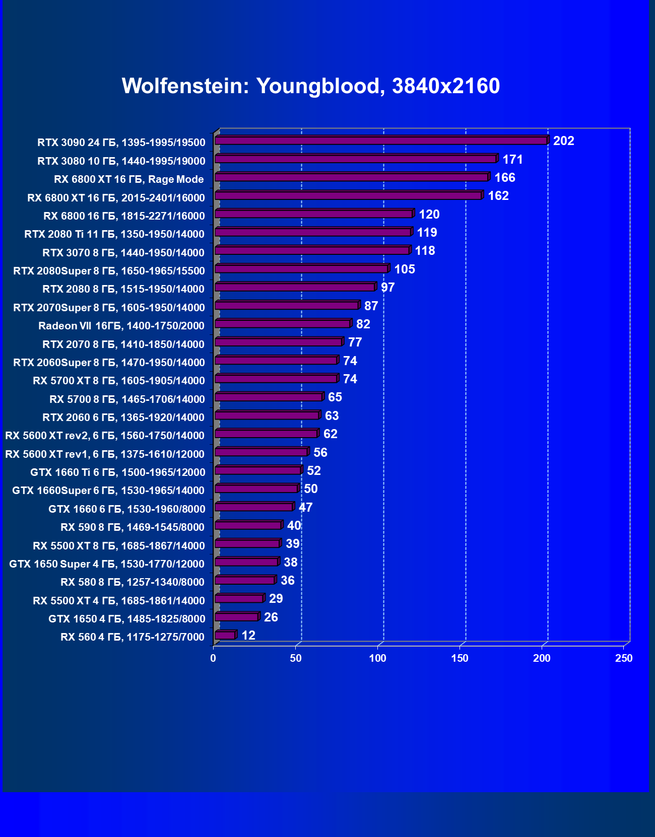 | 13 | RX 6800 16 ГБ, 1815—2271/16000 | 31 | 191 | 62 000 |