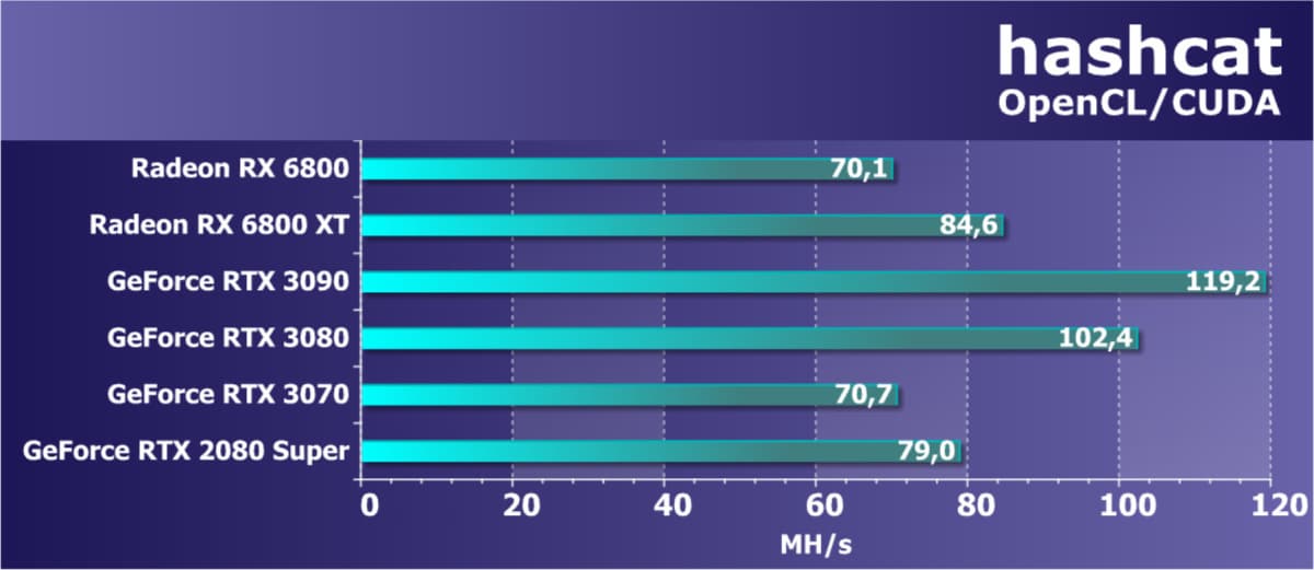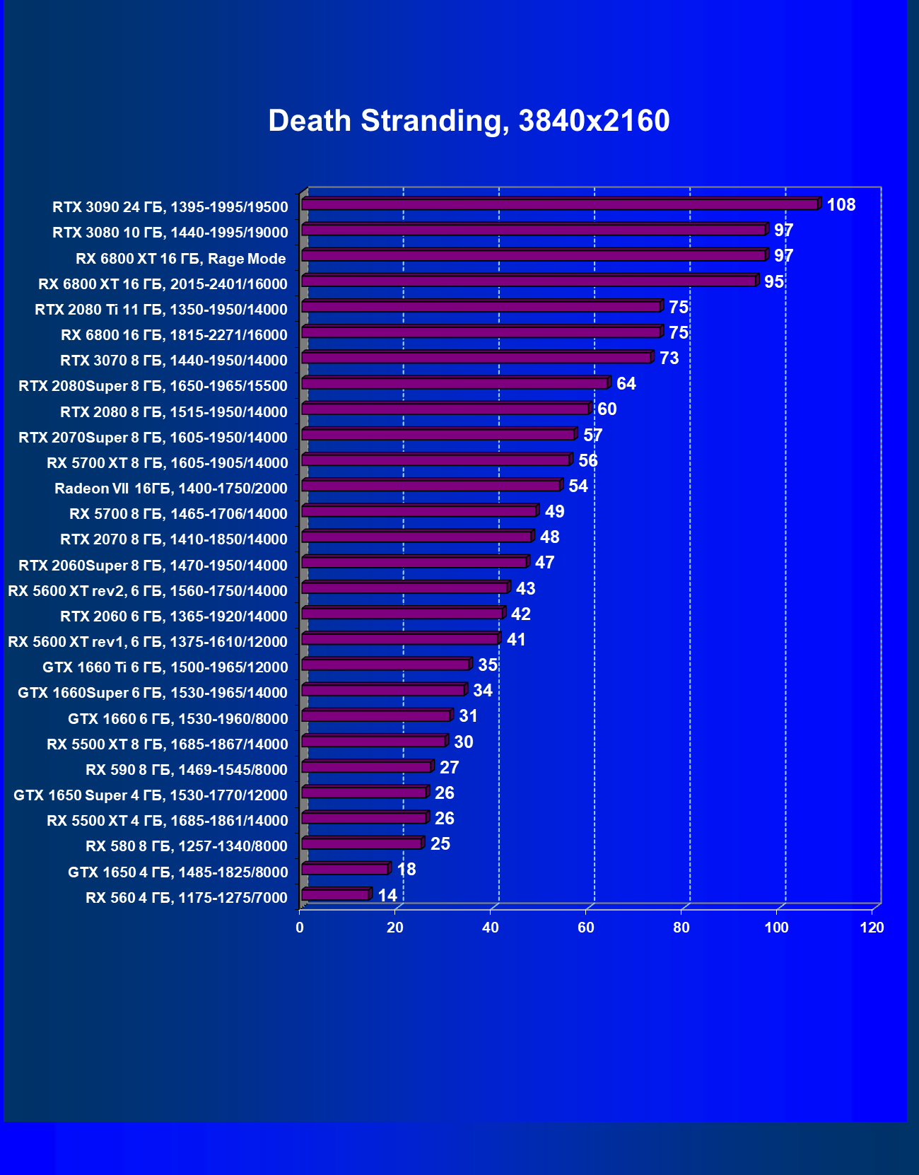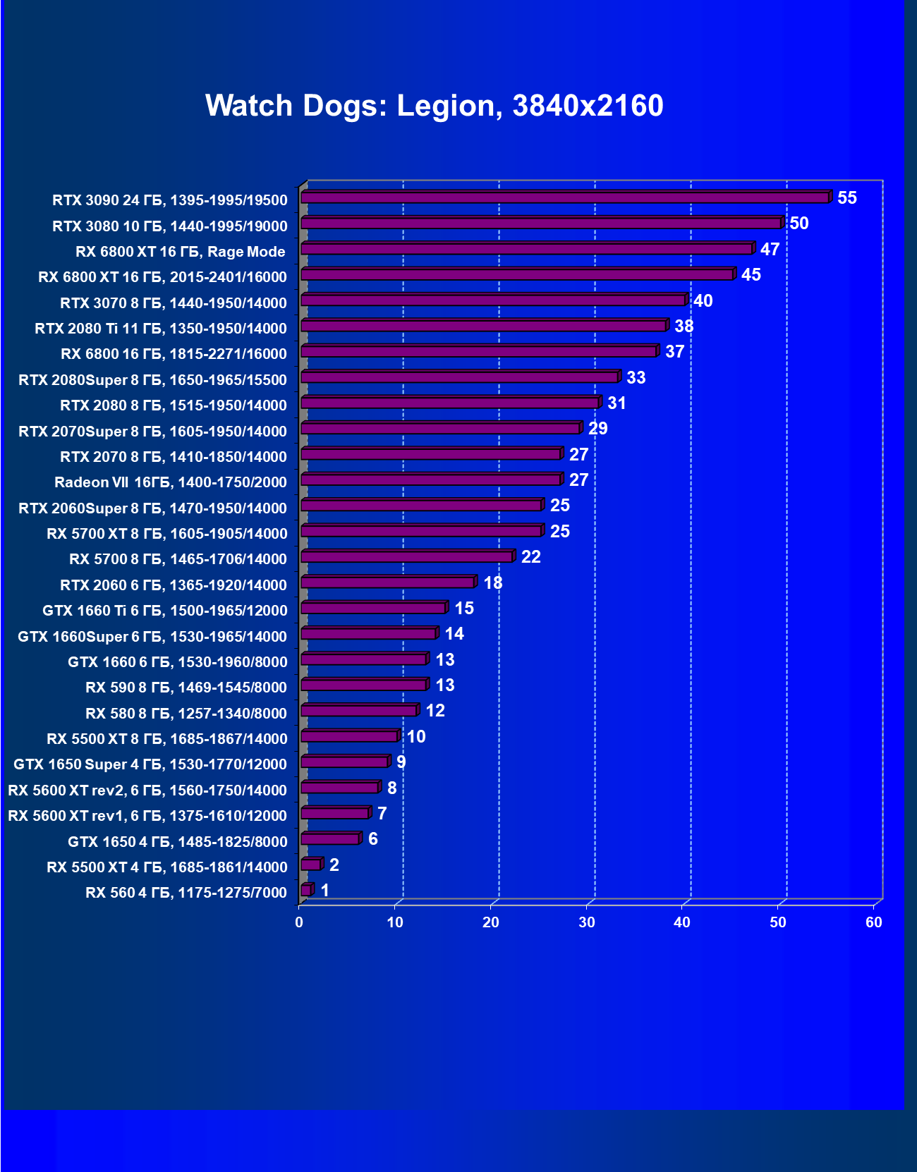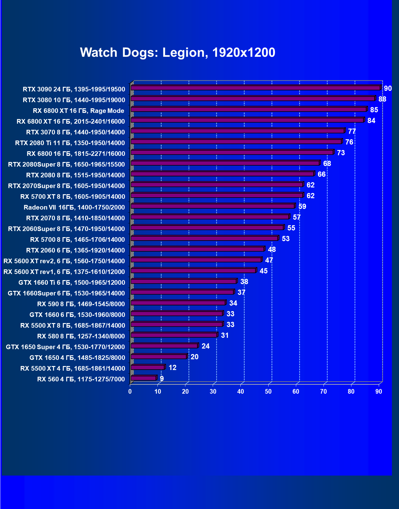 | 13 | RX 6800 16 ГБ, 1815—2271/16000 | 31 | 191 | 62 000 |
