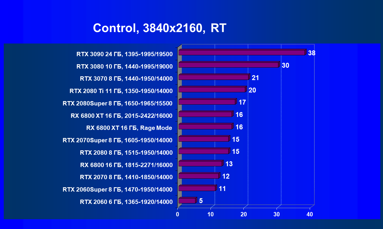 Условным соперником для нового Radeon у компании Nvidia является GeForce RTX 3070, поэтому мы взяли ее в качестве главного конкурента. Дополнительно включили еще и более производительное решение из этого же поколения RTX 30. Также сравним новинку AMD и с GeForce RTX 2080 Ti, как с наиболее производительным графическим процессором архитектуры Turing из предыдущего поколения GeForce RTX 20.