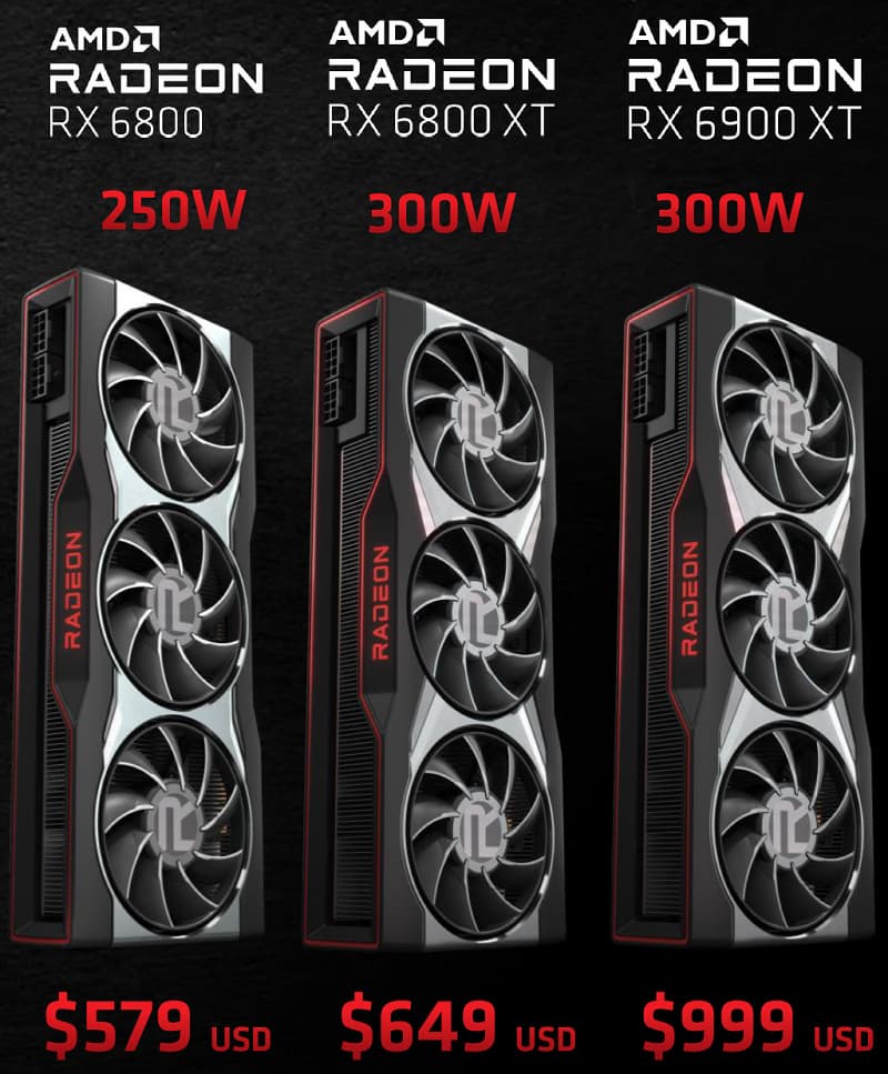 Обычно в начале таких статей мы пишем, насколько обострилась конкуренция на рынке видеокарт с выходом новых моделей, но увы — хотя теоретически компания AMD действительно вернулась в верхний ценовой сегмент с новыми решениями, ситуация на розничном рынке на данный момент совсем не такая радужная, видеокарт семейства Radeon RX 6800 в продаже вы не найдете. Да и у конкурента ситуация не сильно лучше, GeForce RTX 3080 до сих пор трудно найти в рознице, а две другие модели нового семейства изредка продаются, но по завышенным ценам. Мы очень надеемся, что с выходом на рынок партнерских моделей Radeon ситуация изменится в лучшую сторону, и все желающие смогут купить любую из представленных моделей линейки Radeon RX 6000. Тем более что цены на них AMD выставила довольно привлекательные.
