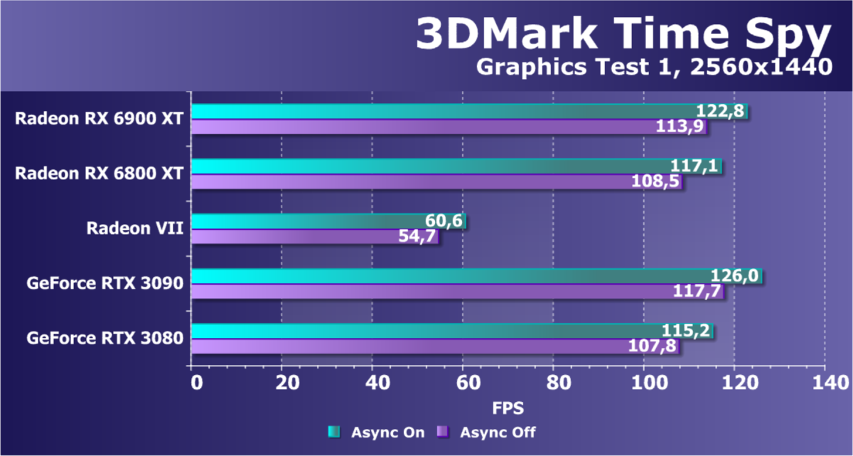 Ведь сейчас игры даже в 4K-разрешении при максимальных настройках и с трассировкой лучей хоть и занимают порой по 9-10 ГБ видеопамяти, но реально не требуют такого объема, так как при увеличении объема VRAM от 8-10 до 16 ГБ приростов производительности не видно. Но консоли нового поколения имеют больший объем памяти и быстрые SSD, поэтому будущие мультиплатформенные или портированные с консолей игры могут начать требовать большего, чем 10 ГБ локальной видеопамяти, и по этому параметру новые видеокарты AMD выглядят более сбалансированными. 16 ГБ вообще кажутся золотой серединой для топового сегмента GPU на данный момент и пару-тройку лет вперед.