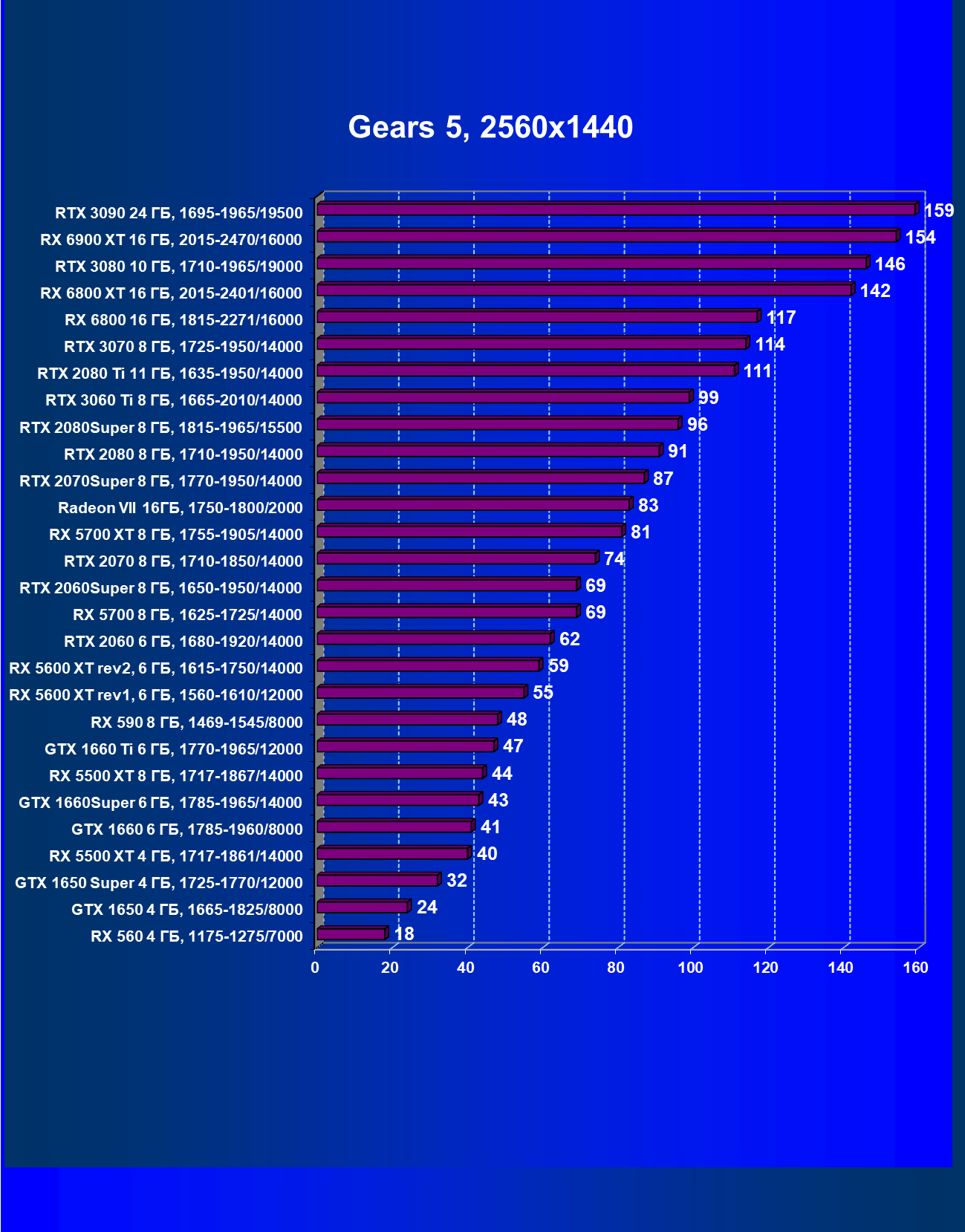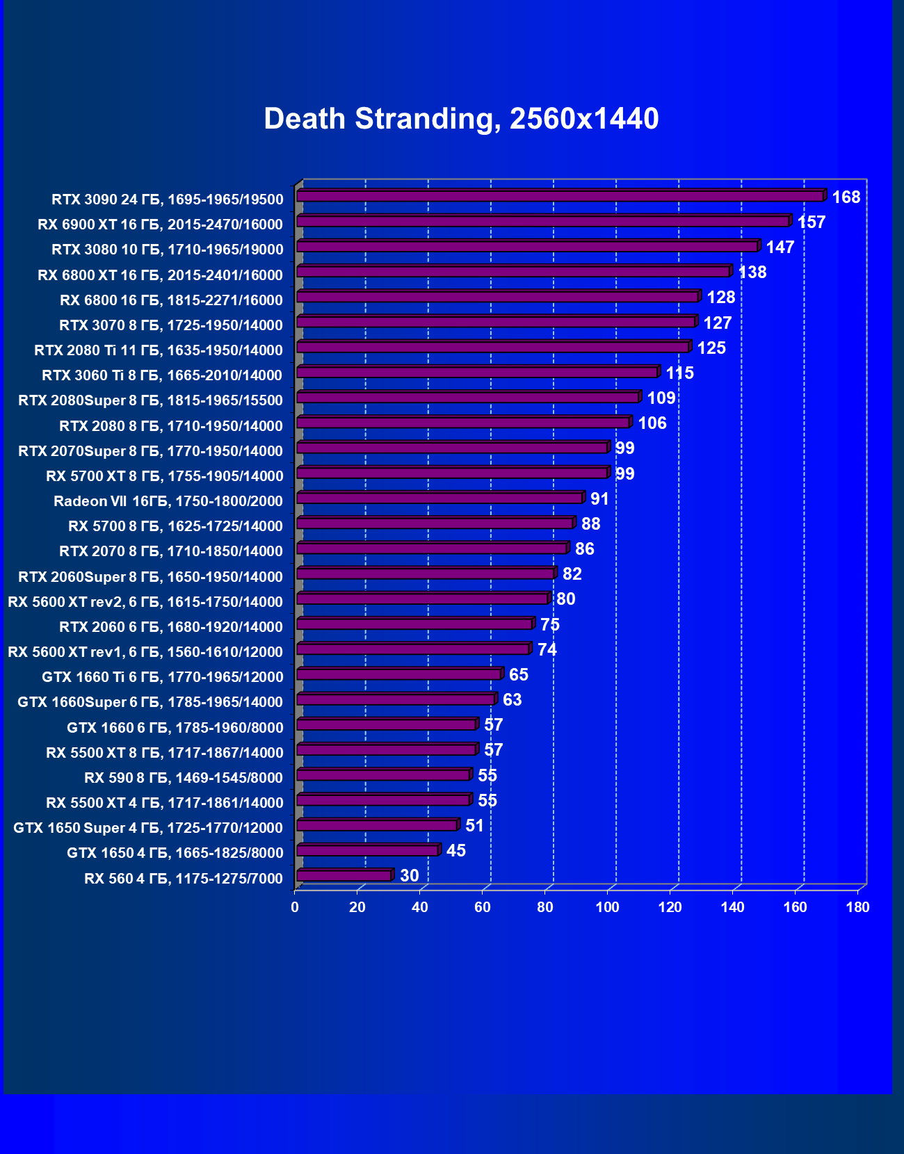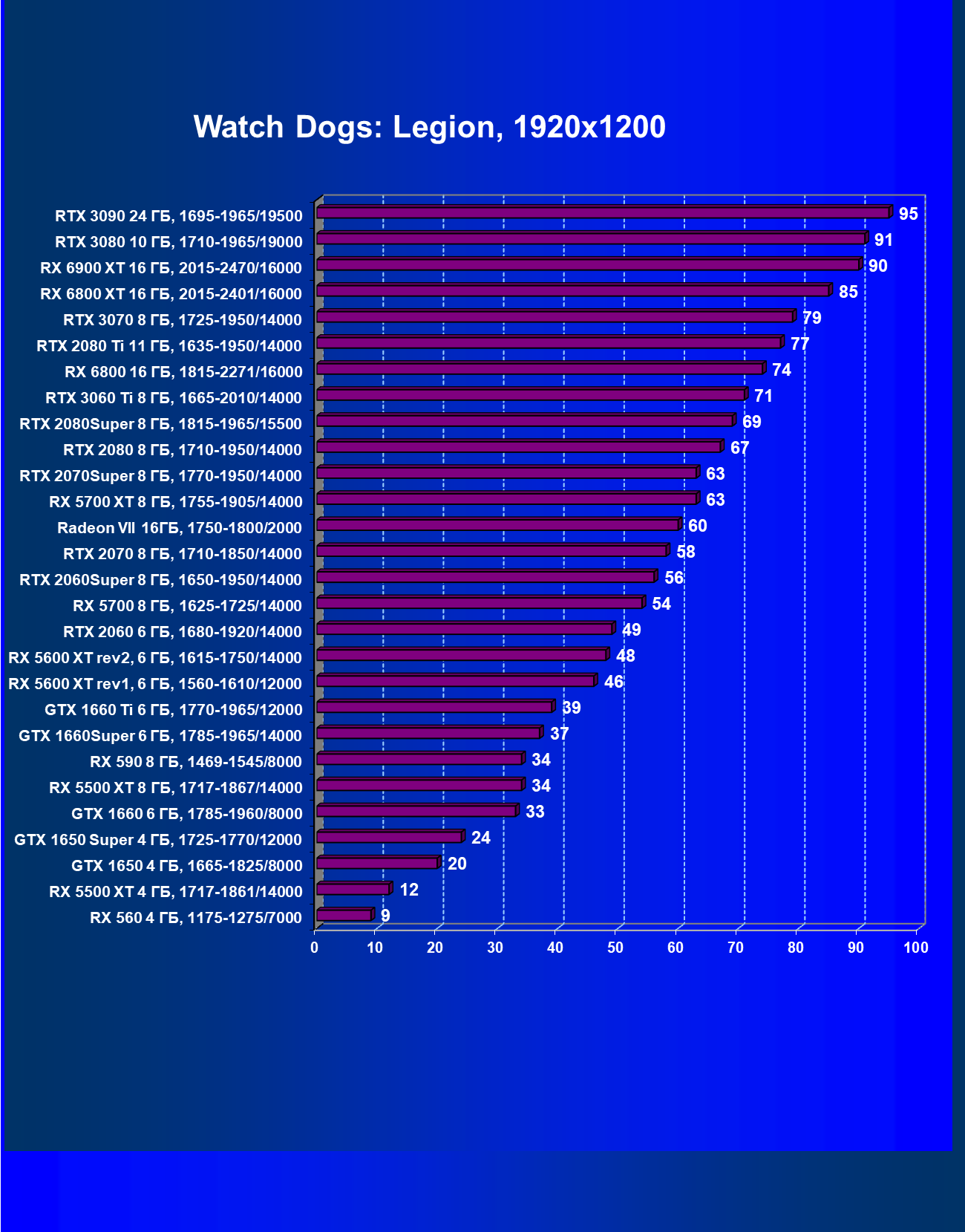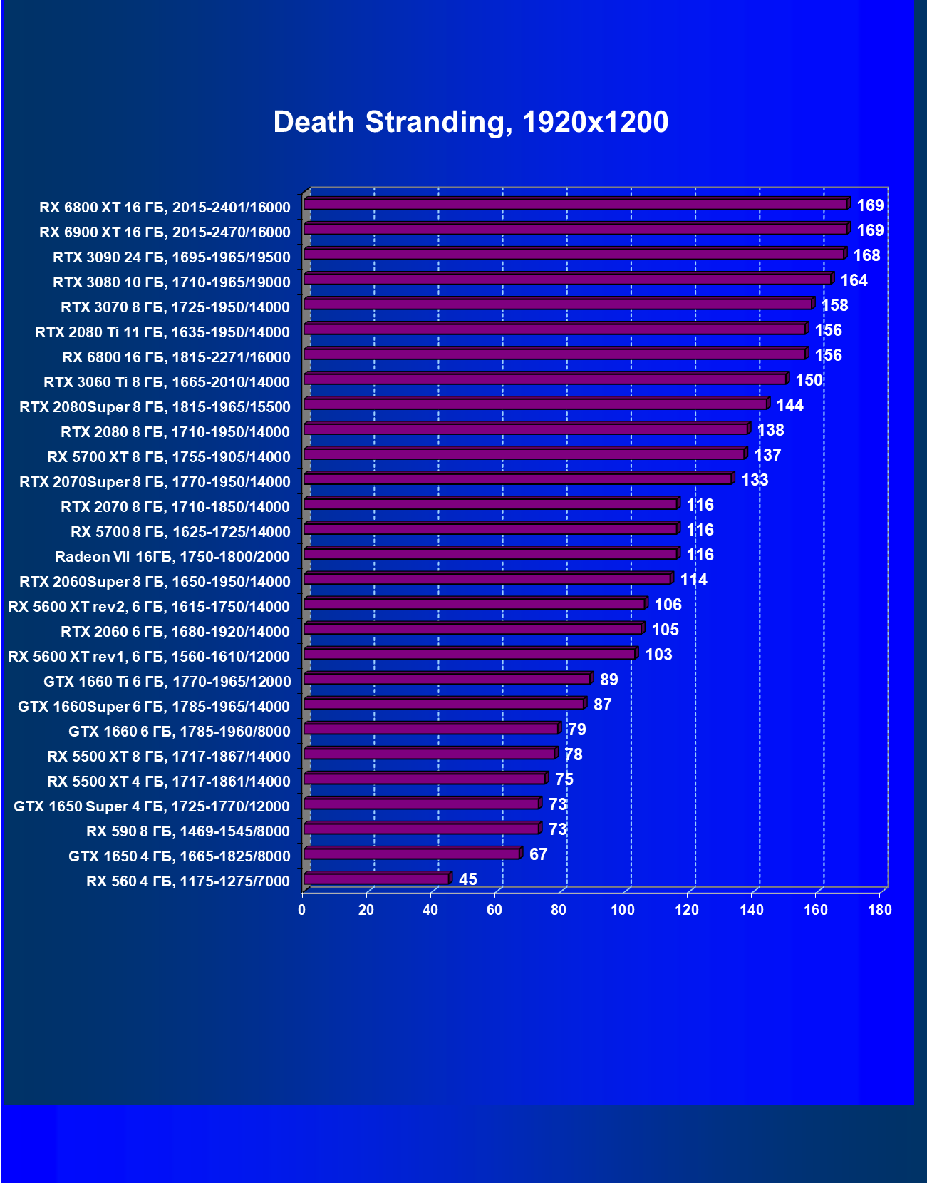 | 13 | RX 6900 XT 16 ГБ, 2015—2470/16000 | 24 | 268 | 110 000 |