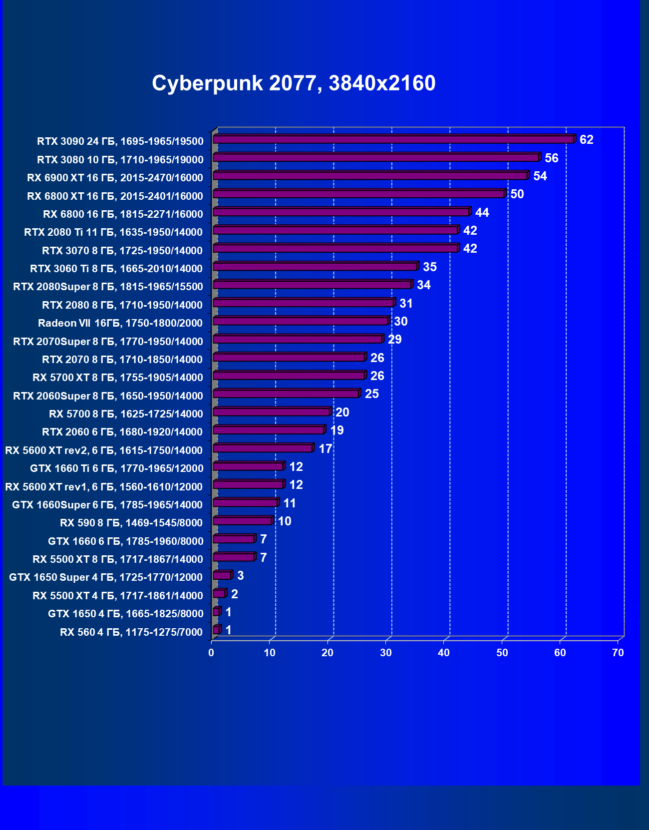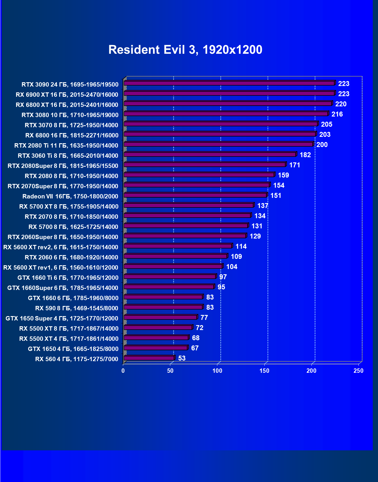 | 07 | RX 6900 XT 16 ГБ, 2015—2470/16000 | 257 | 2829 | 110 000 |