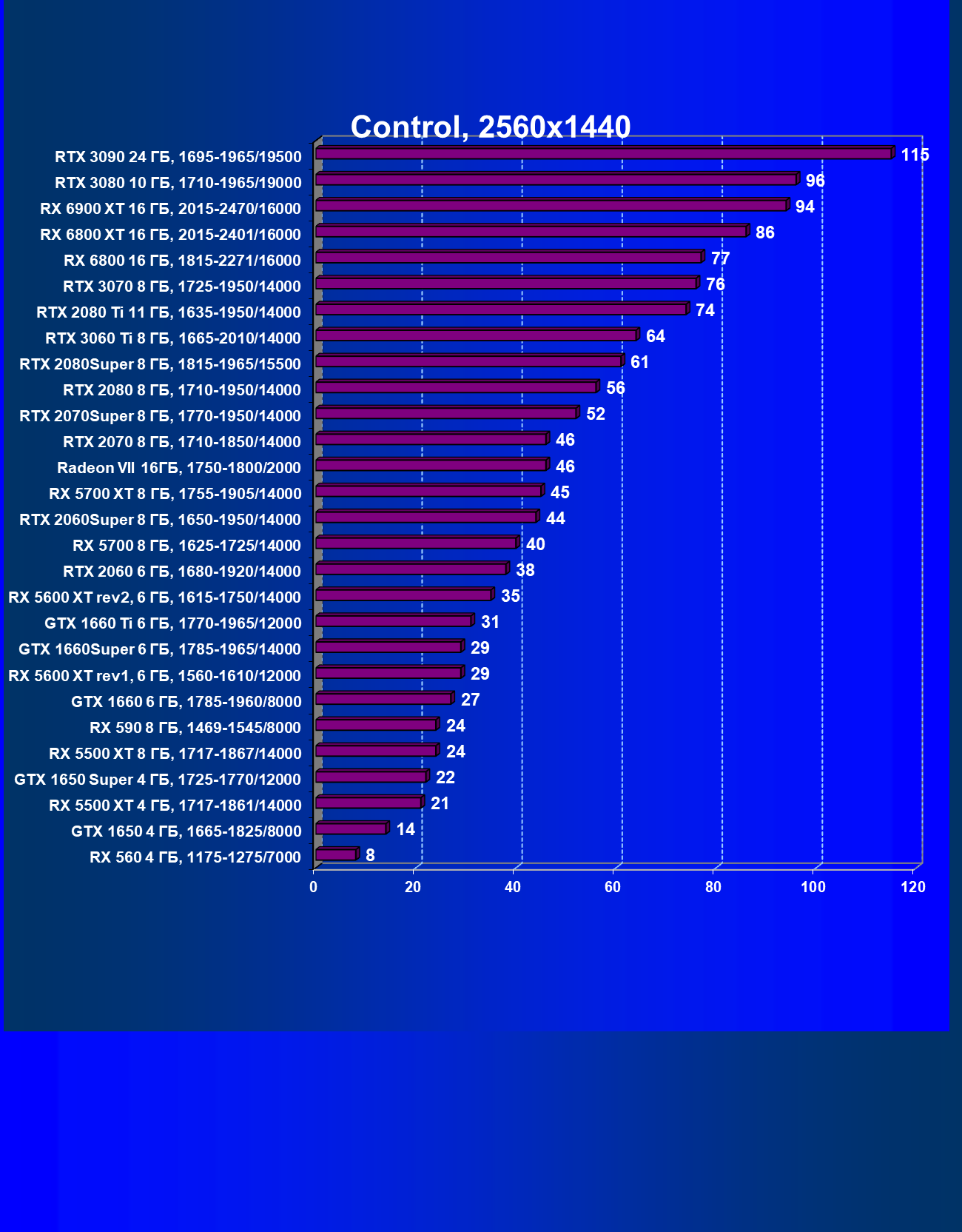 | 02 | RX 6900 XT 16 ГБ, 2015—2470/16000 | 1290 | 117 | 110 000 |