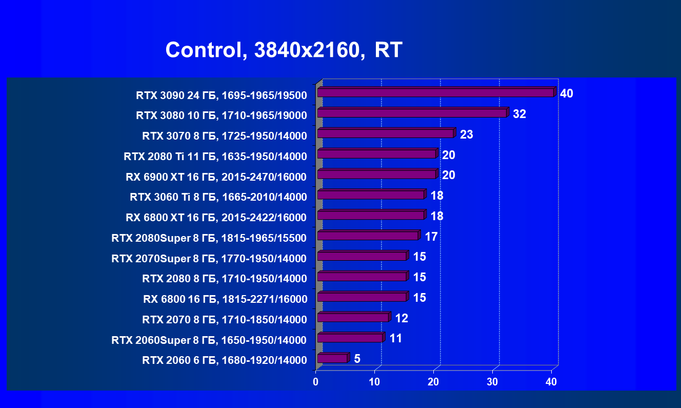 Мы проверим это в синтетических и игровых тестах, но, судя по этим результатам, получается, что Radeon RX 6900 XT должна справиться с обеспечением комфортной игры при средней частоте кадров заметно выше 60 FPS при гибридном рендеринге. При этом настройки качества выбраны максимальные, хотя заметьте — в представленных на диаграмме играх трассировка используется лишь для одного из эффектов, а не сразу нескольких, как в том же Cyberpunk 2077. То есть мощи топового Big Navi действительно может не везде хватать.