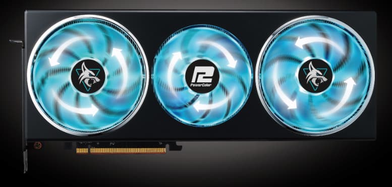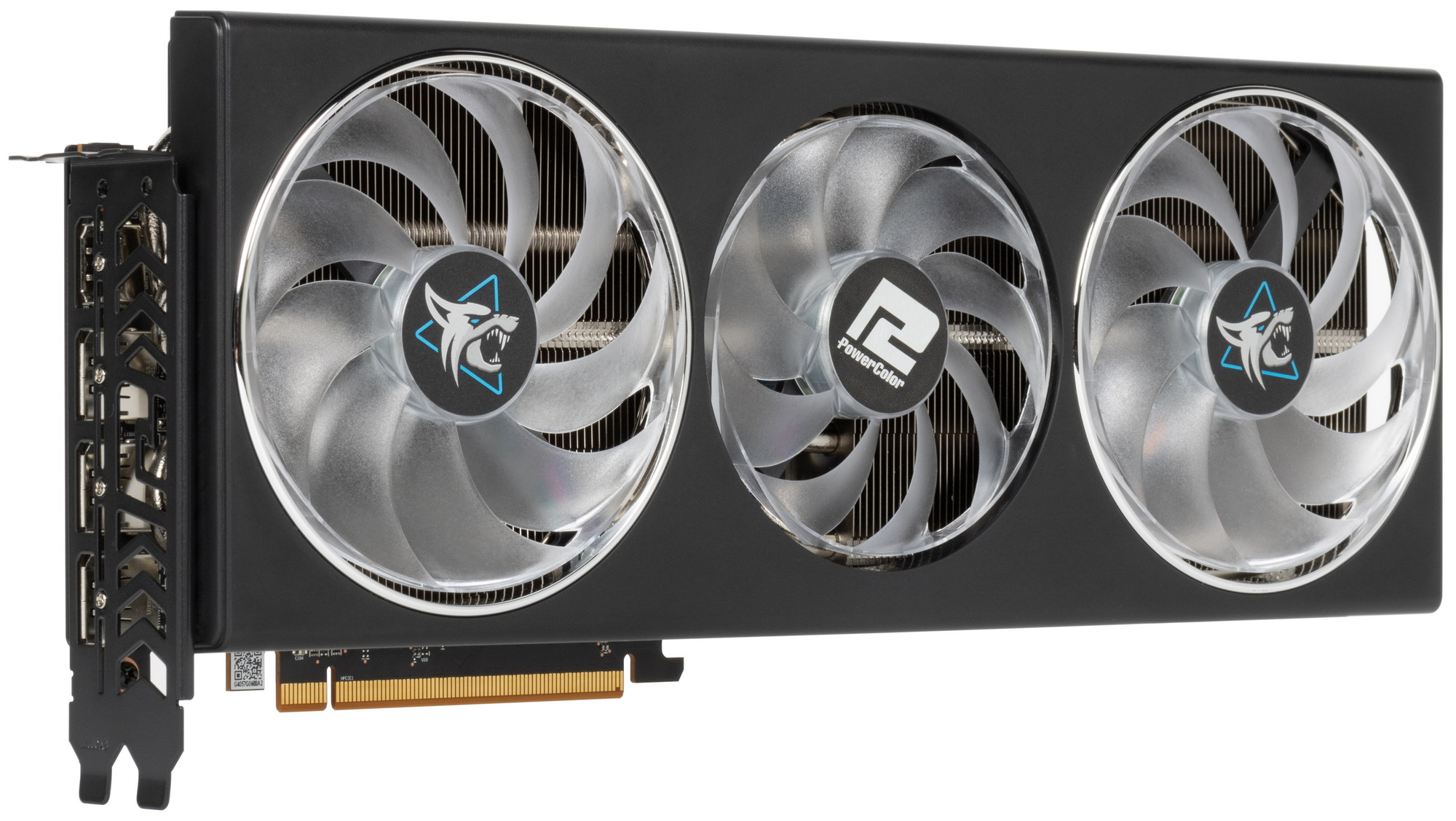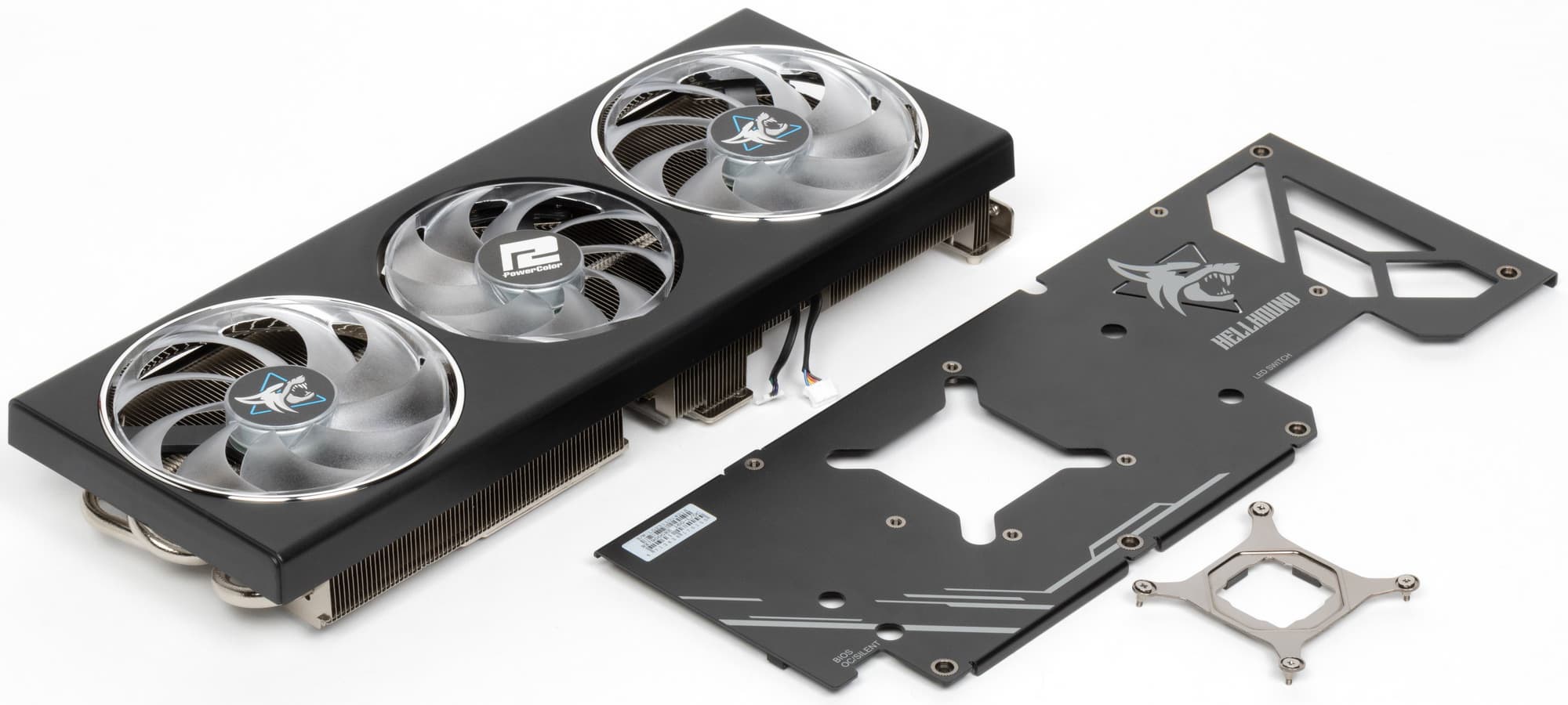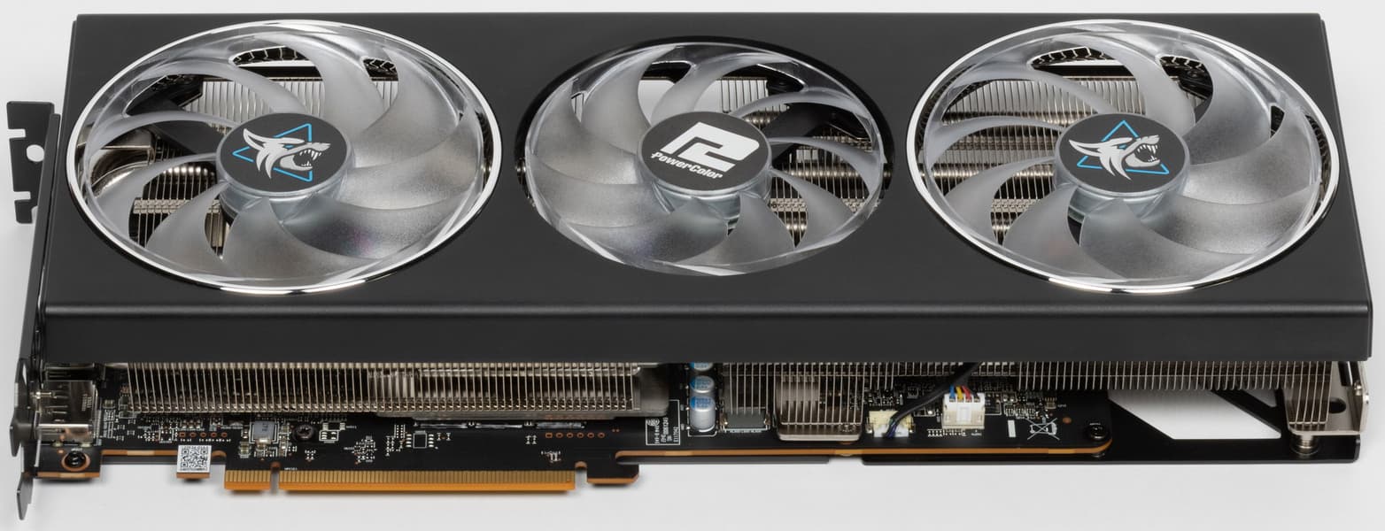 Конкретная протестированная карта PowerColor Radeon RX 7900 GRE Hellhound (16 ГБ) имеет стандартные размеры, занимает три слота в системном блоке. Использованный кулер эффективный и очень тихий, карта может потреблять до 290 Вт и имеет два стандартных 8-контактных разъема питания.