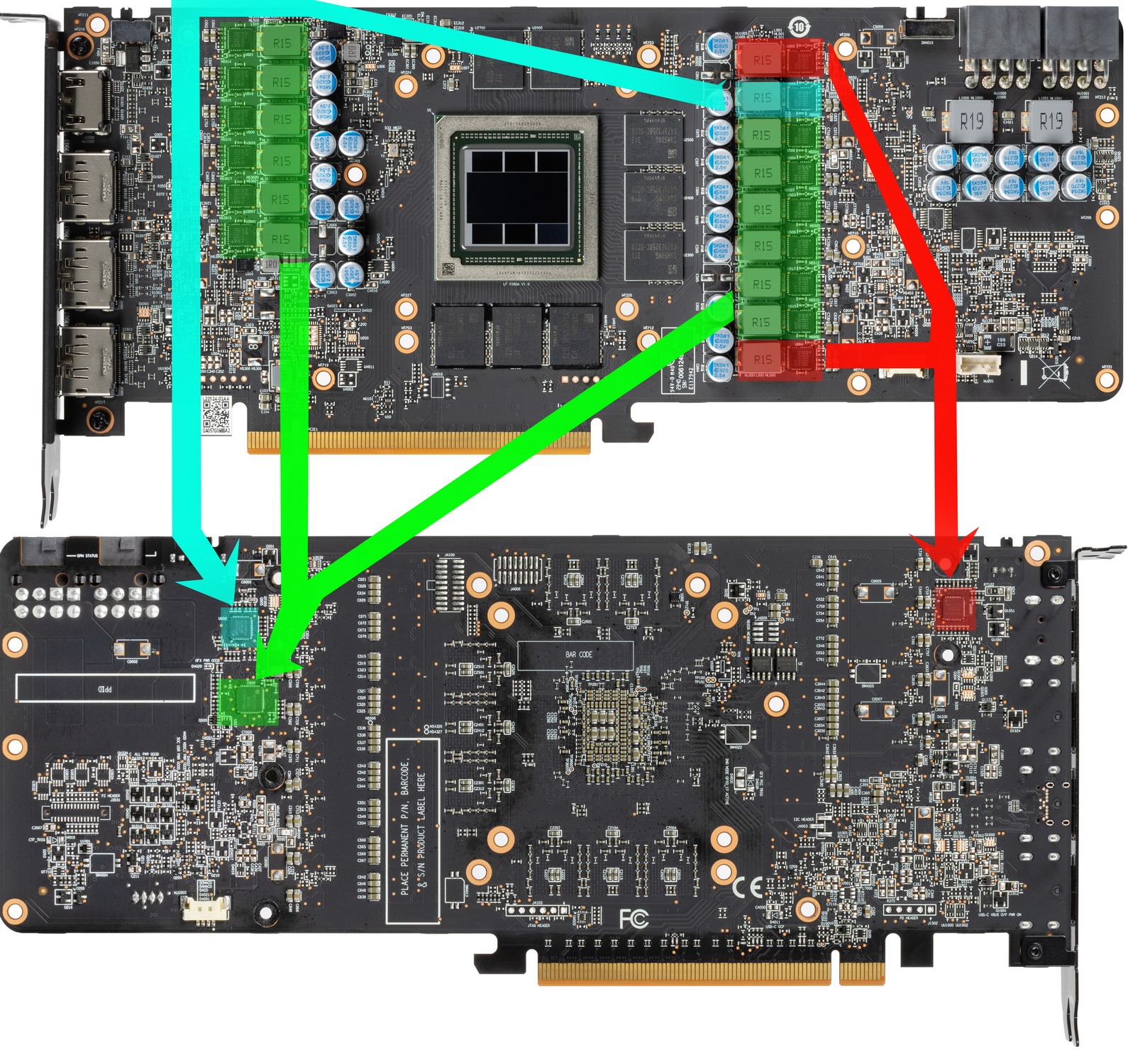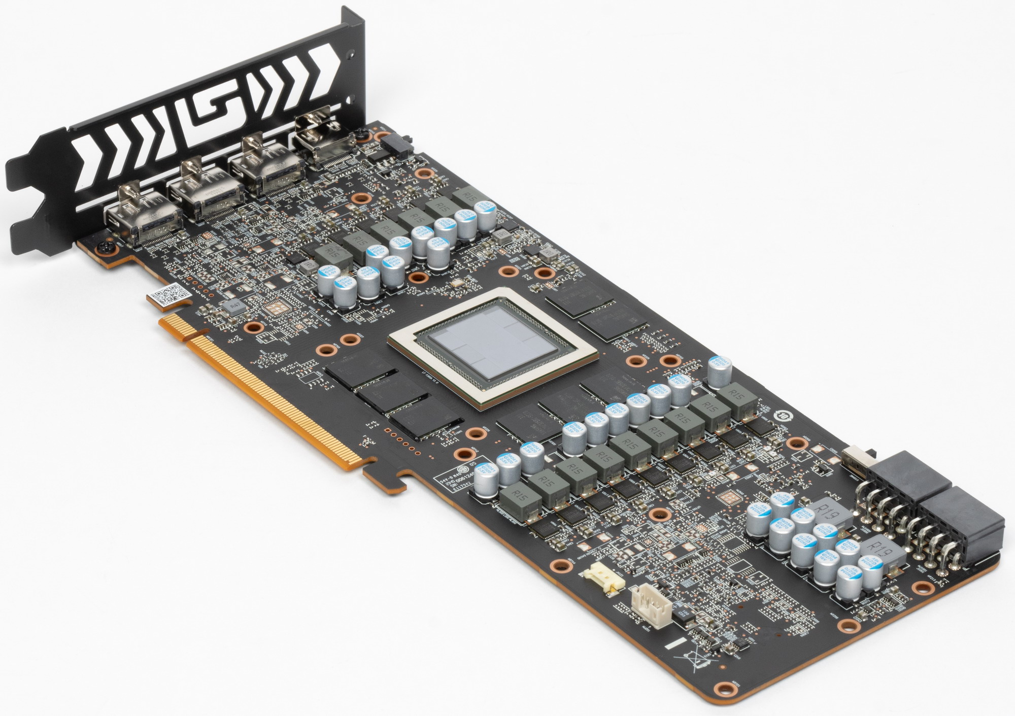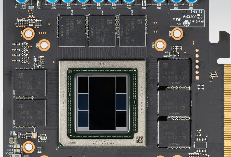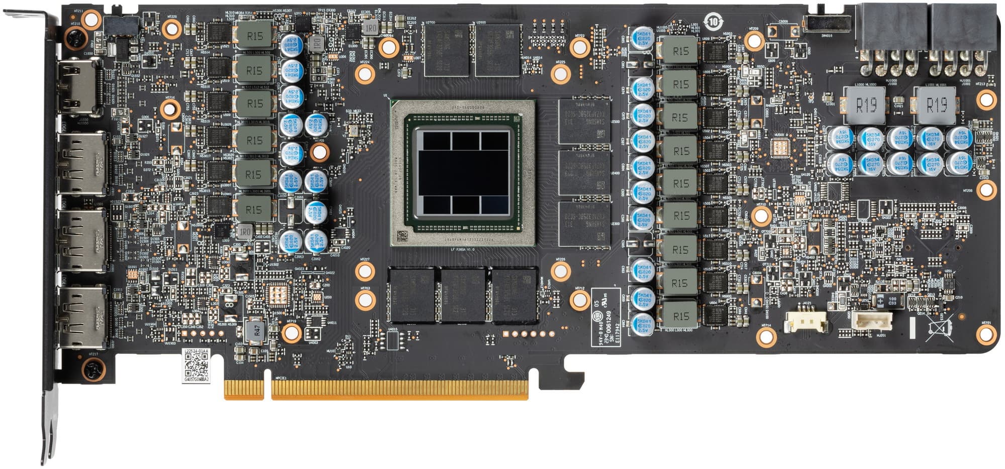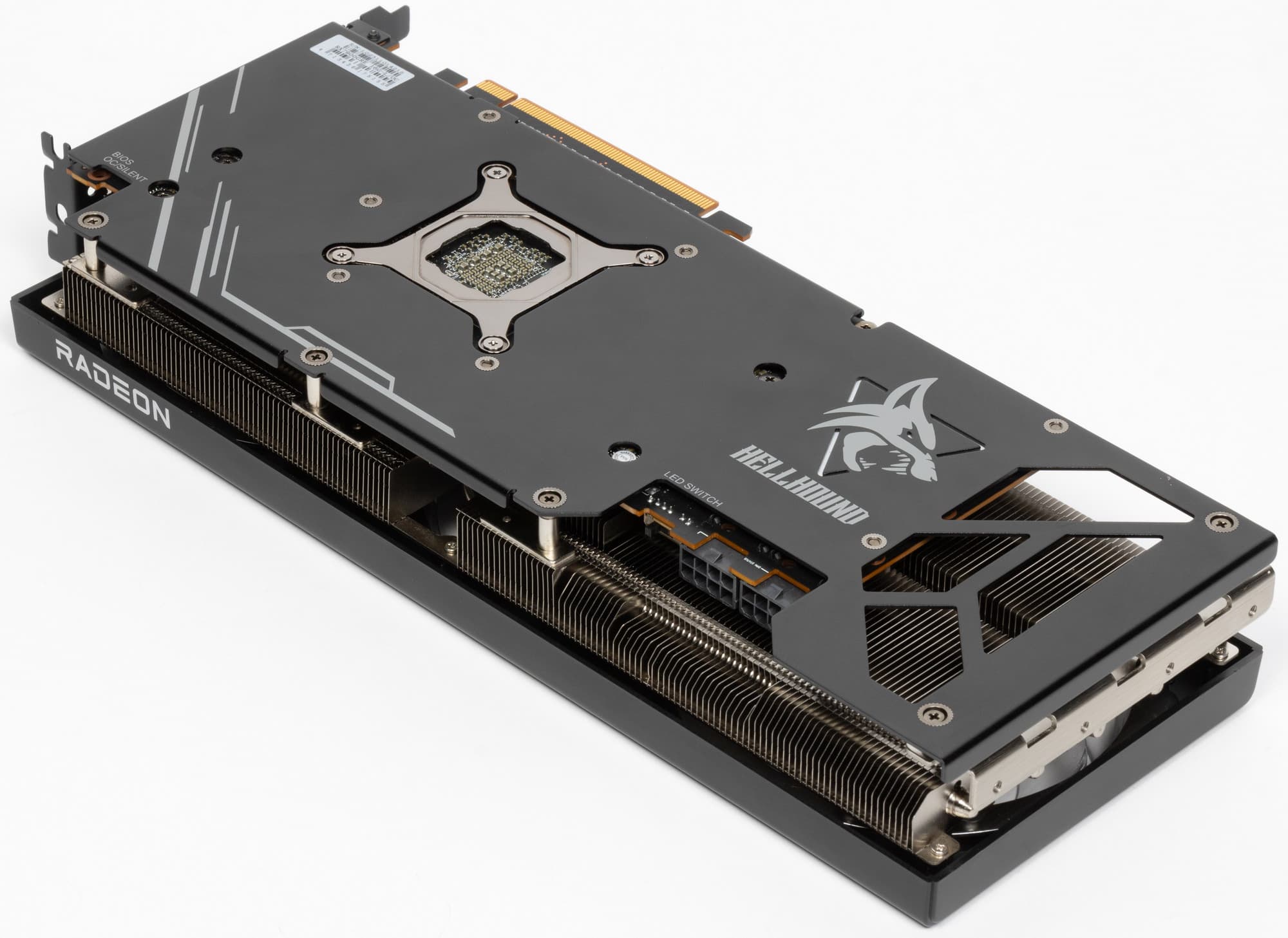 Для Radeon RX 7900 GRE была разработана новая печатная плата, отличающаяся от платы старших моделей линейки: на ней есть только восемь площадок для чипов памяти, и все они заняты микросхемами GDDR6.