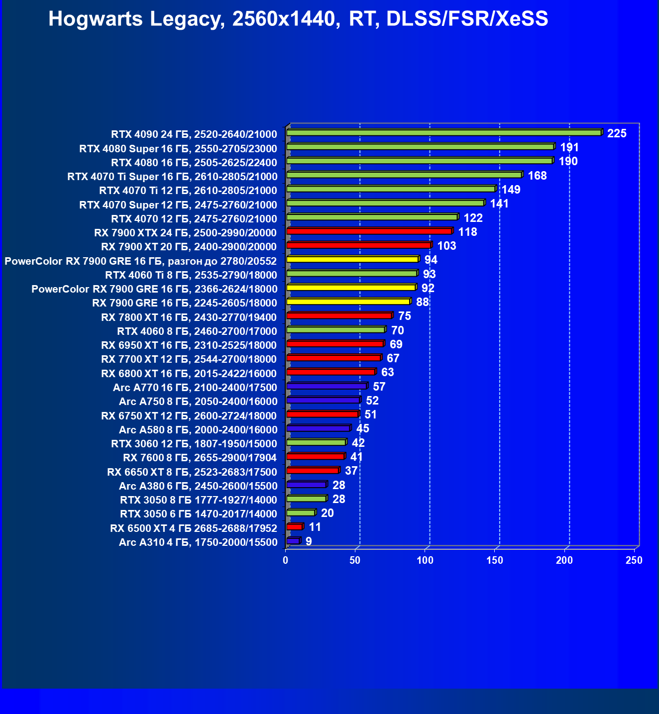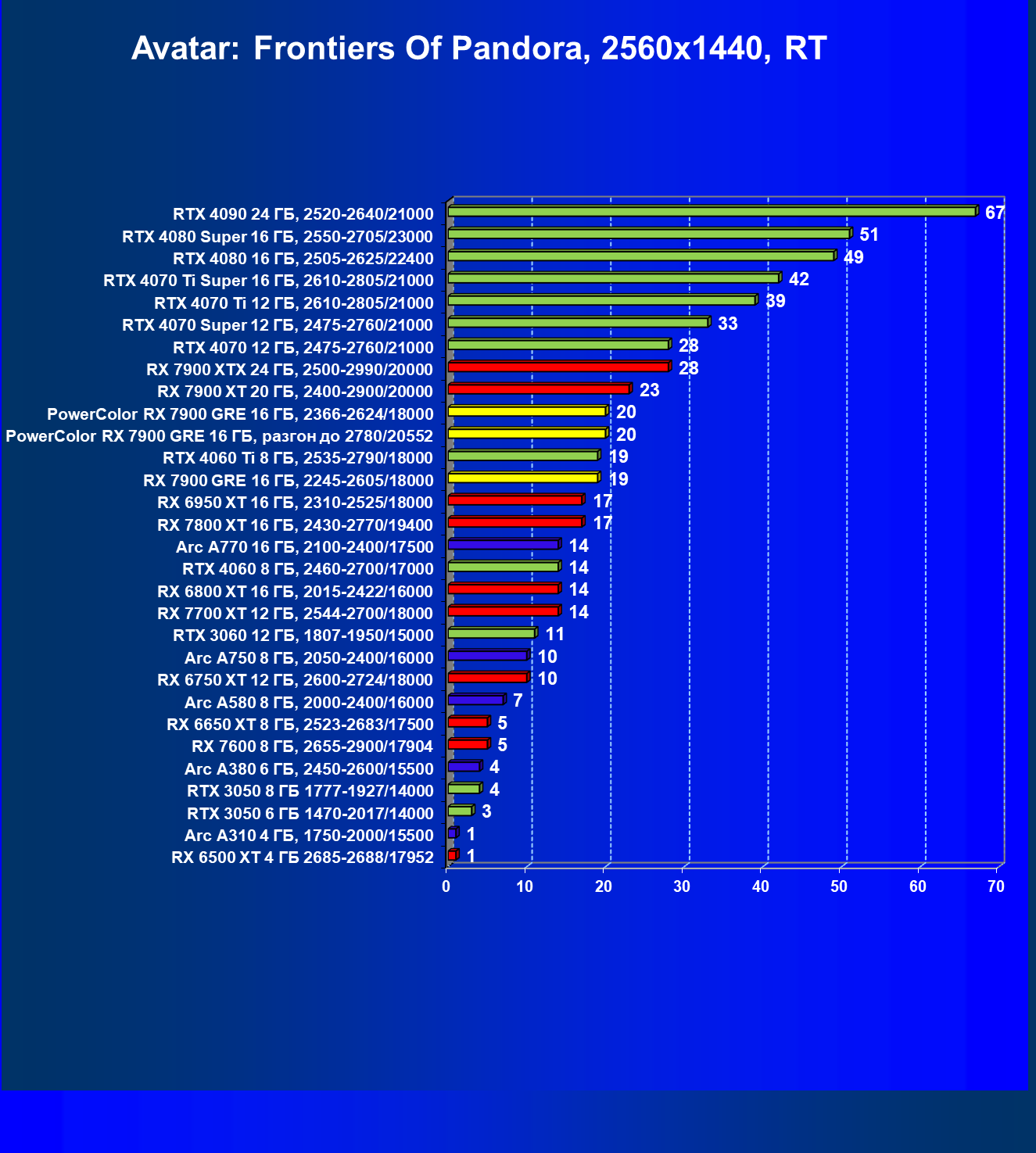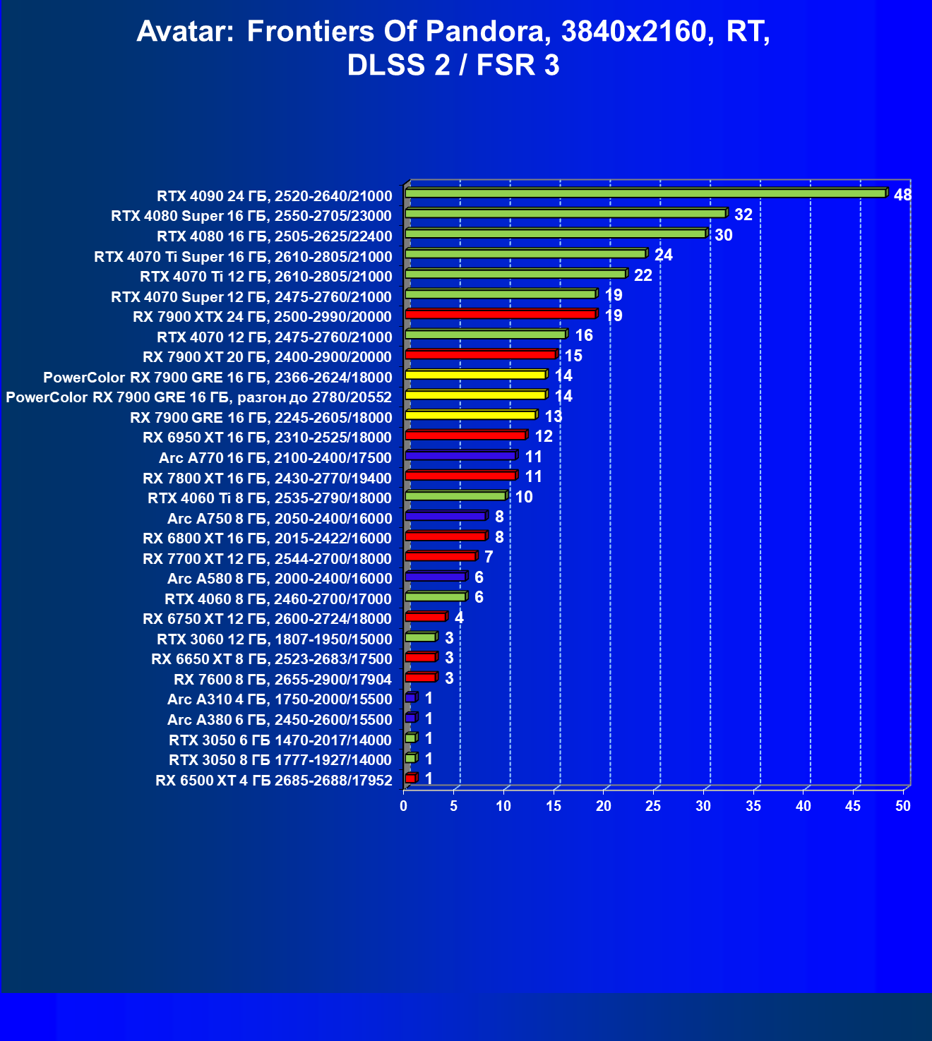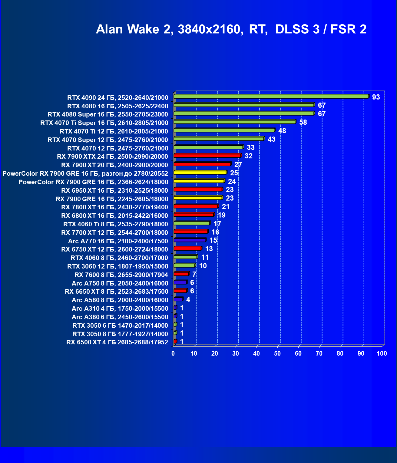 | 13 | PowerColor RX 7900 GRE 16 ГБ, разгон до 2780/20552 | 247 | 1654 | 67 000 |