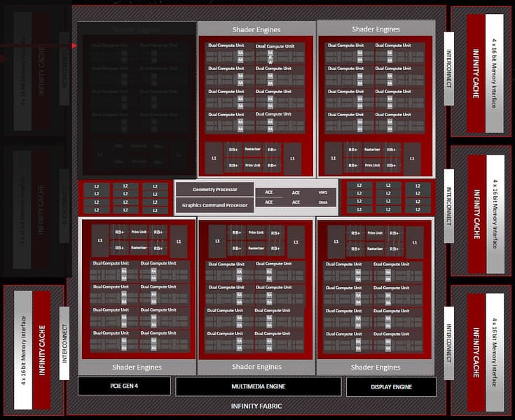 | Модель графического процессора | Navi 31 XT | Navi 31 XL | Navi 32 XT | Navi 21 XT |