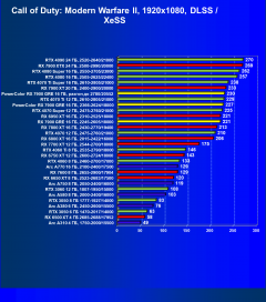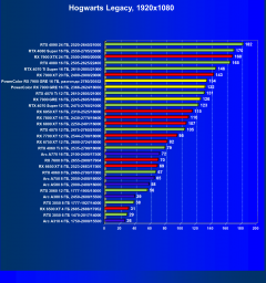 | 15 | RX 7800 XT 16 ГБ, 2430—2770/19400 | 1379 | 234 | 59 000 |